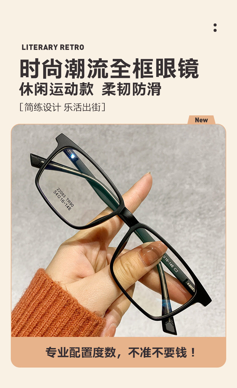 22093 Korean style box half pin core TR fashion big face glasses frame high sense with myopia optical glasses frame