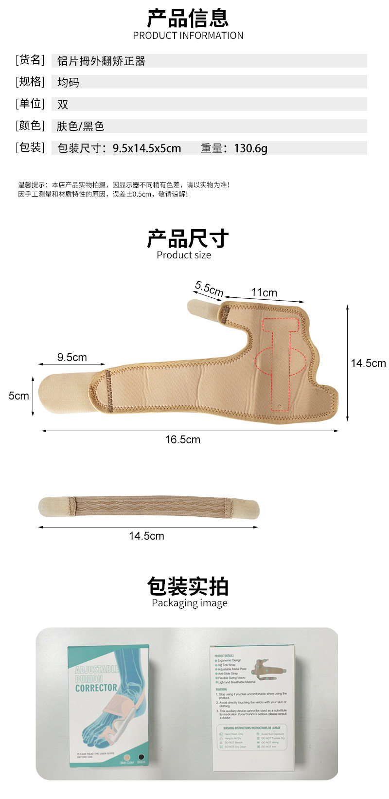 | Style | Aluminum big toe immobilizer |