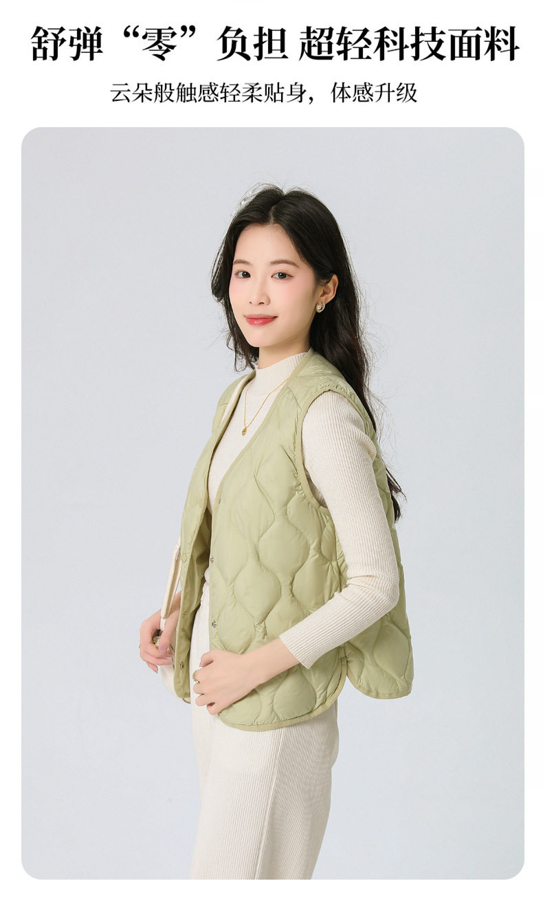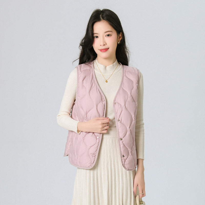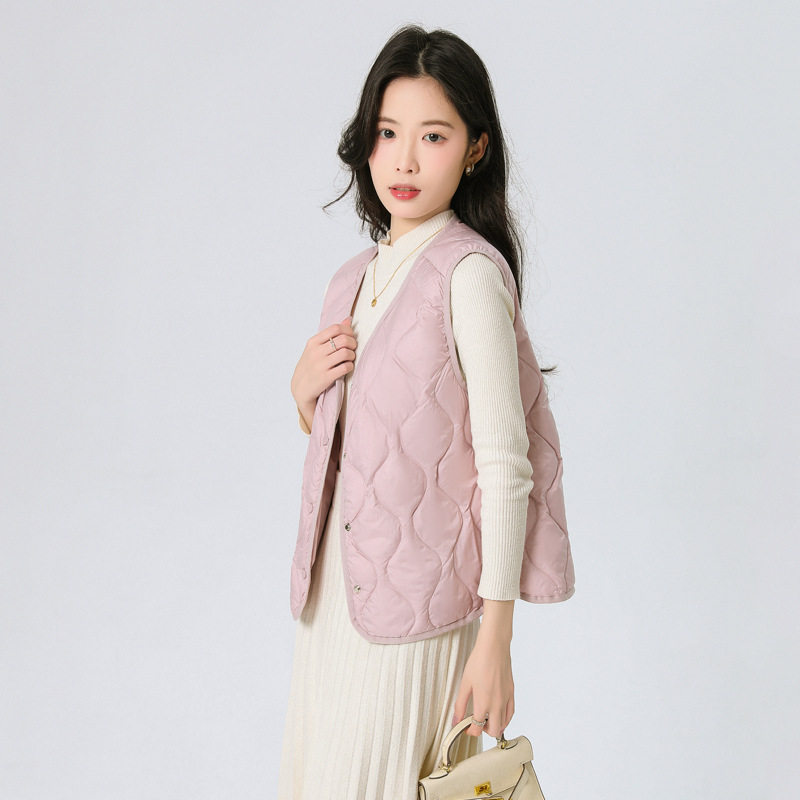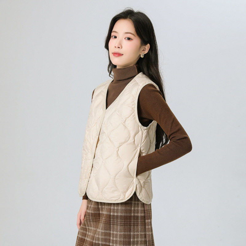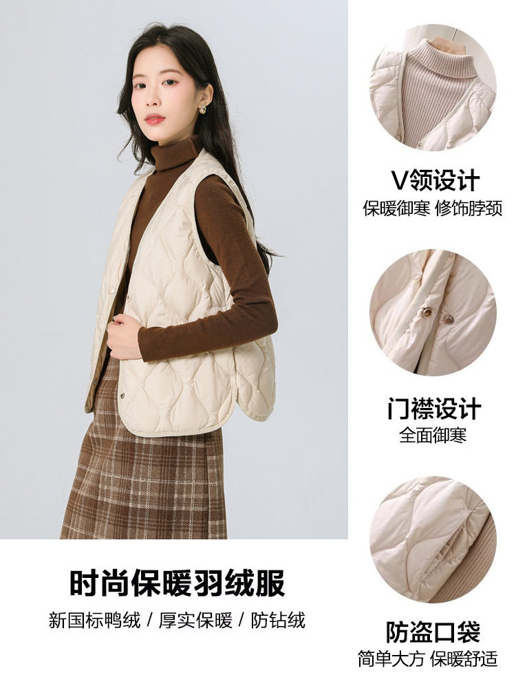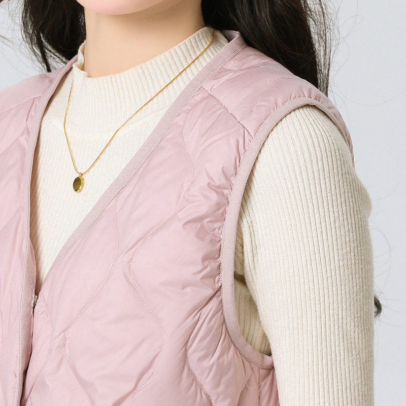 New Standard 90 Fleece V-neck Inner Ware Shoulder Lightweight Down Vest Women's Winter New Gourd Pattern Collarless Cloud Inner Ware