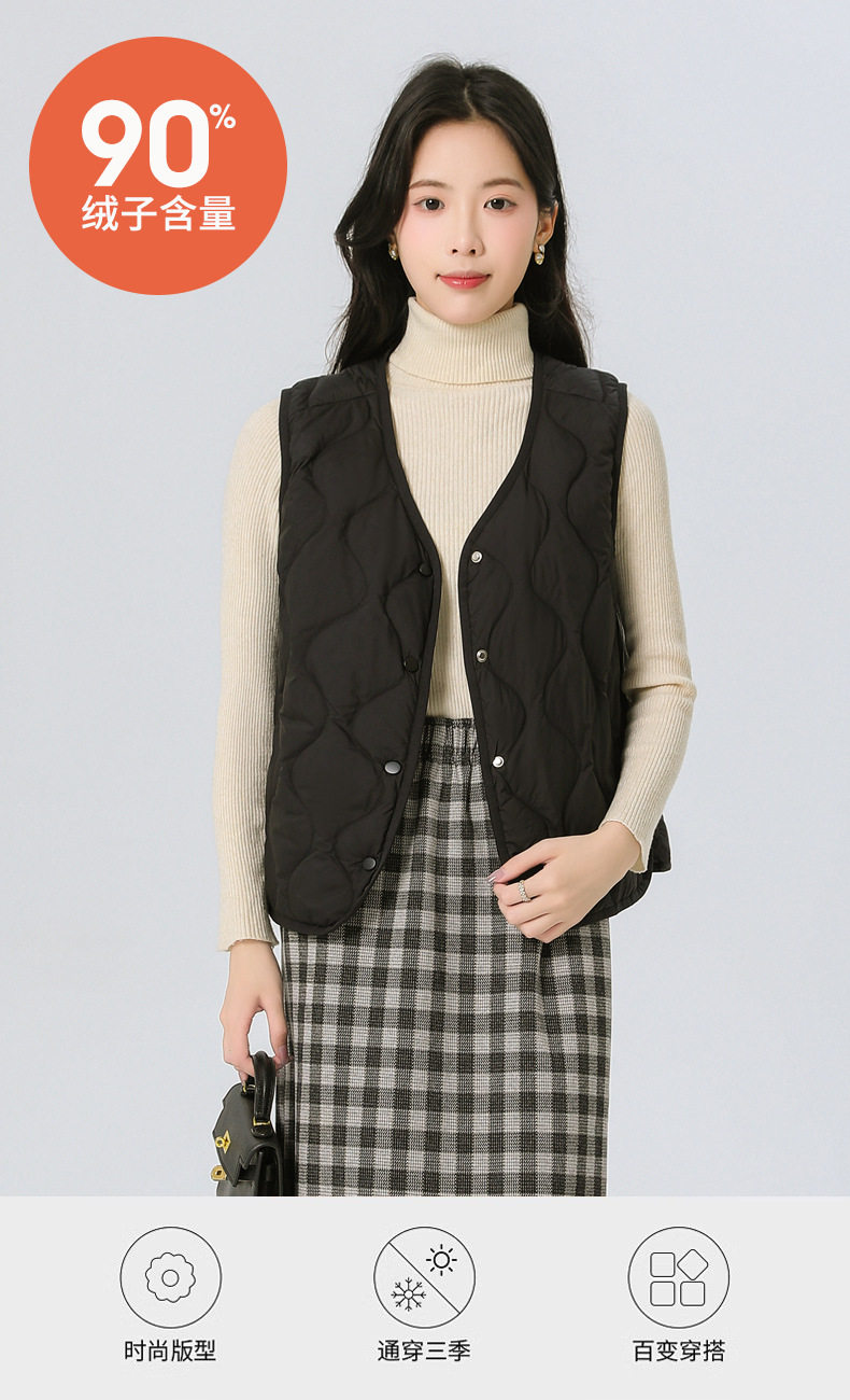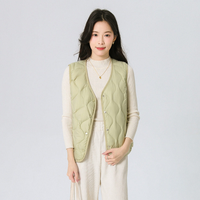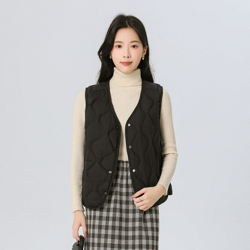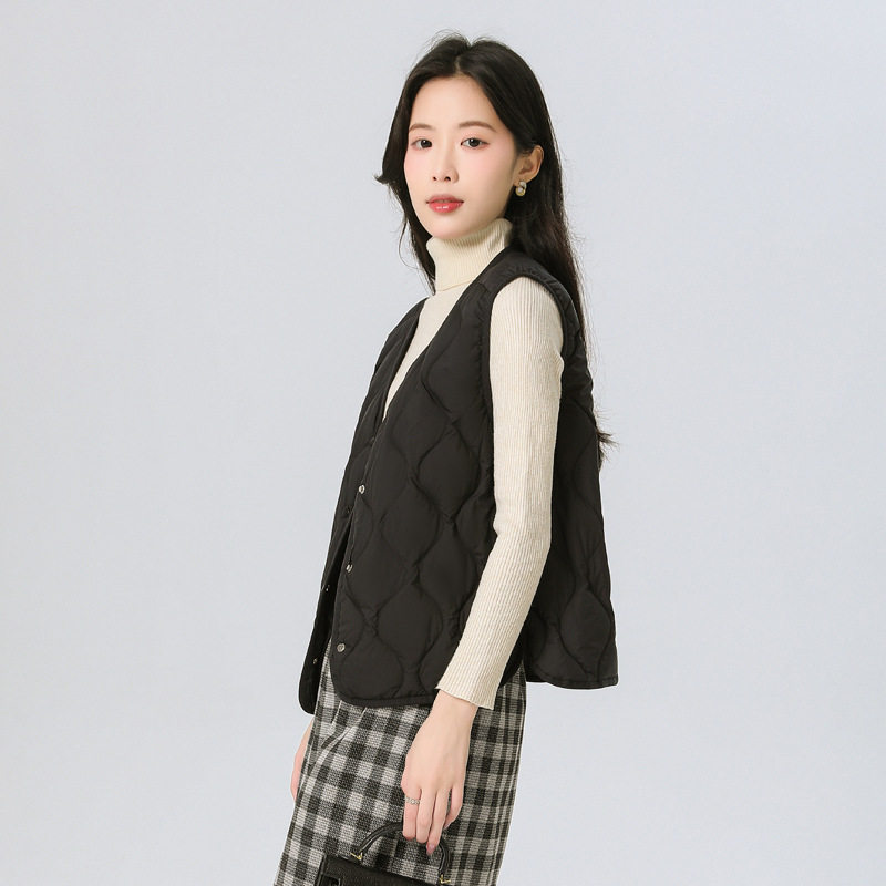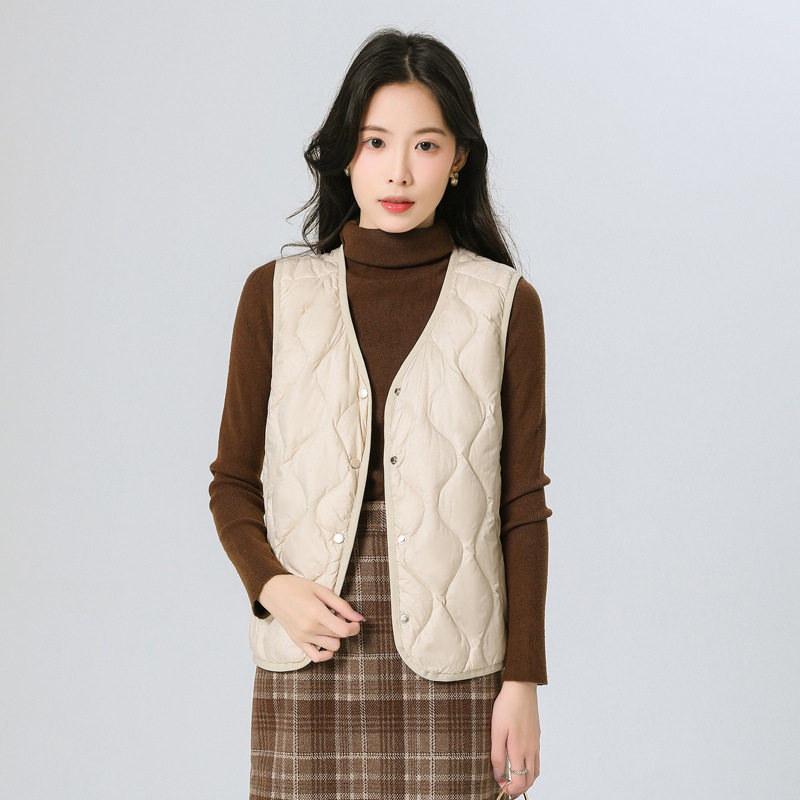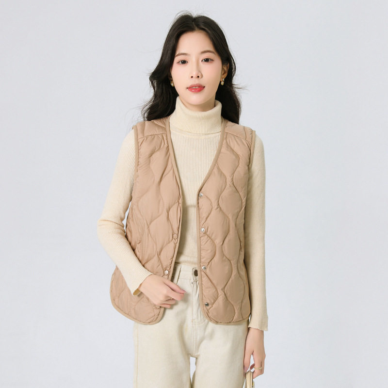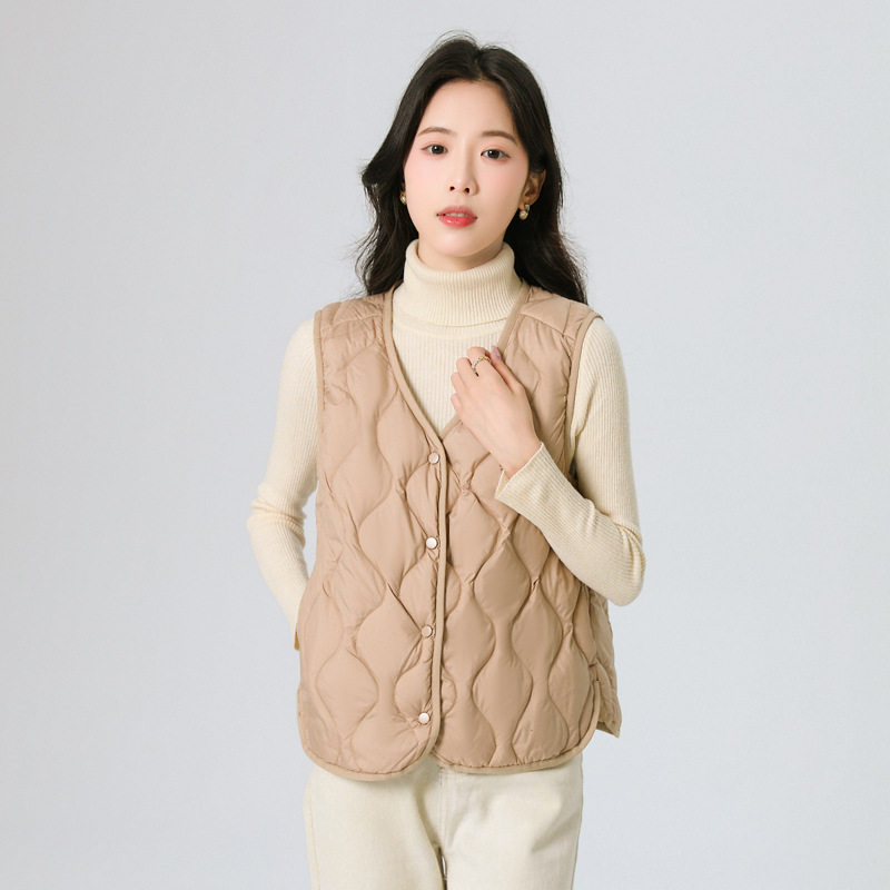 New Standard 90 Fleece V-neck Inner Ware Shoulder Lightweight Down Vest Women's Winter New Gourd Pattern Collarless Cloud Inner Ware