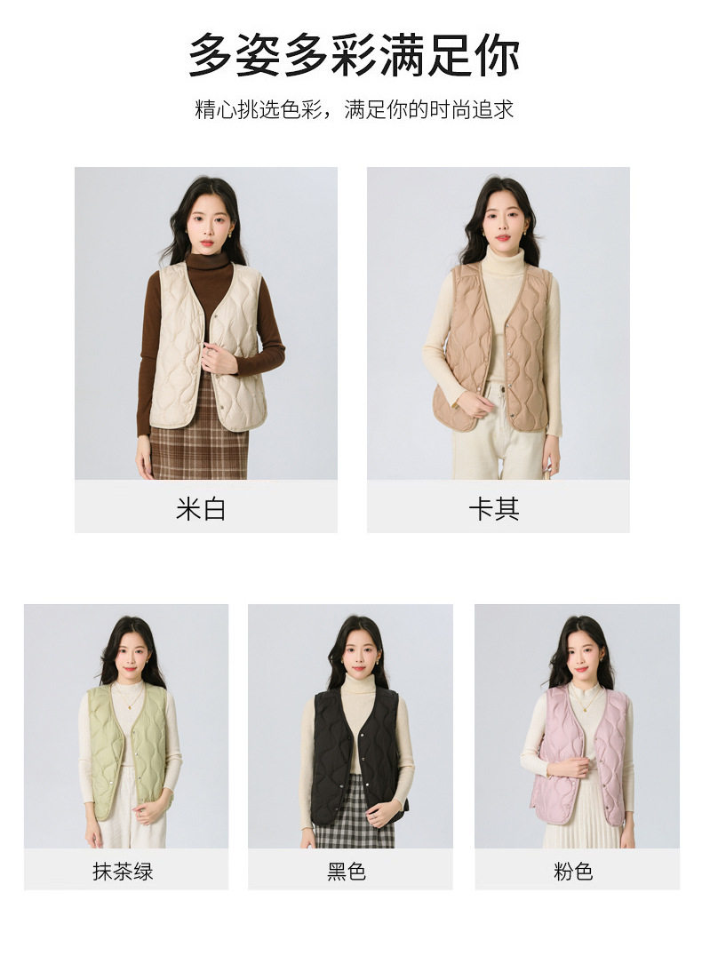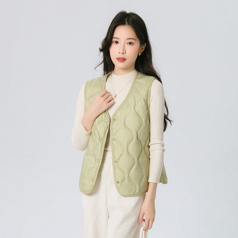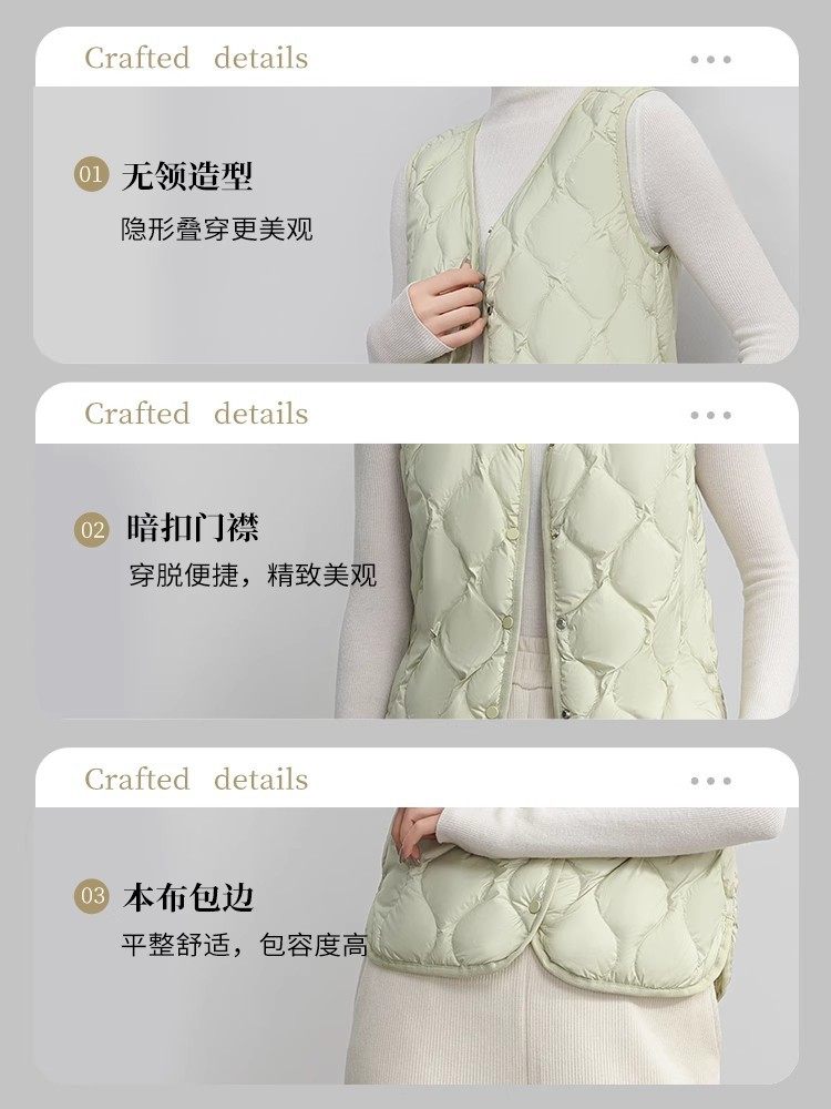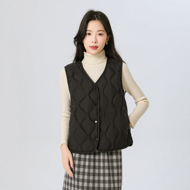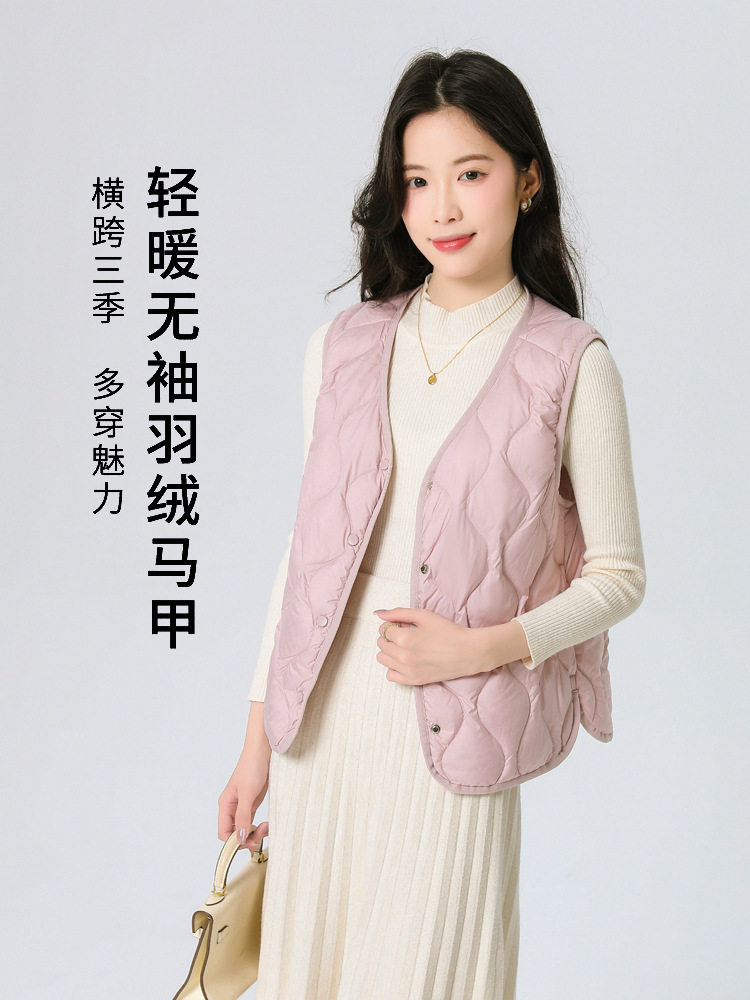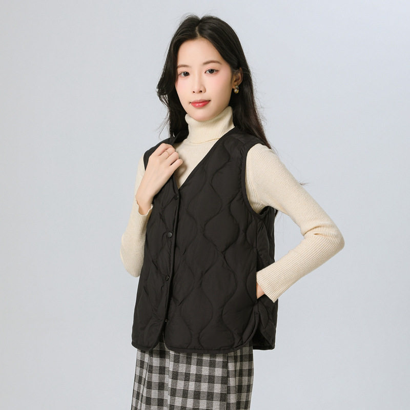 New Standard 90 Fleece V-neck Inner Ware Shoulder Lightweight Down Vest Women's Winter New Gourd Pattern Collarless Cloud Inner Ware