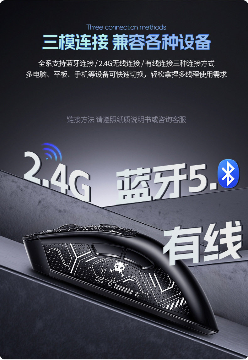 | Connection with computer | 2.4G Bluetooth |