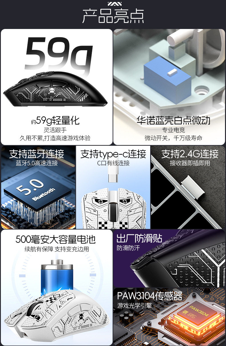 | Color | Black-Wireless Three-Mode High Edition,White-Wireless Three-Mode High Edition |