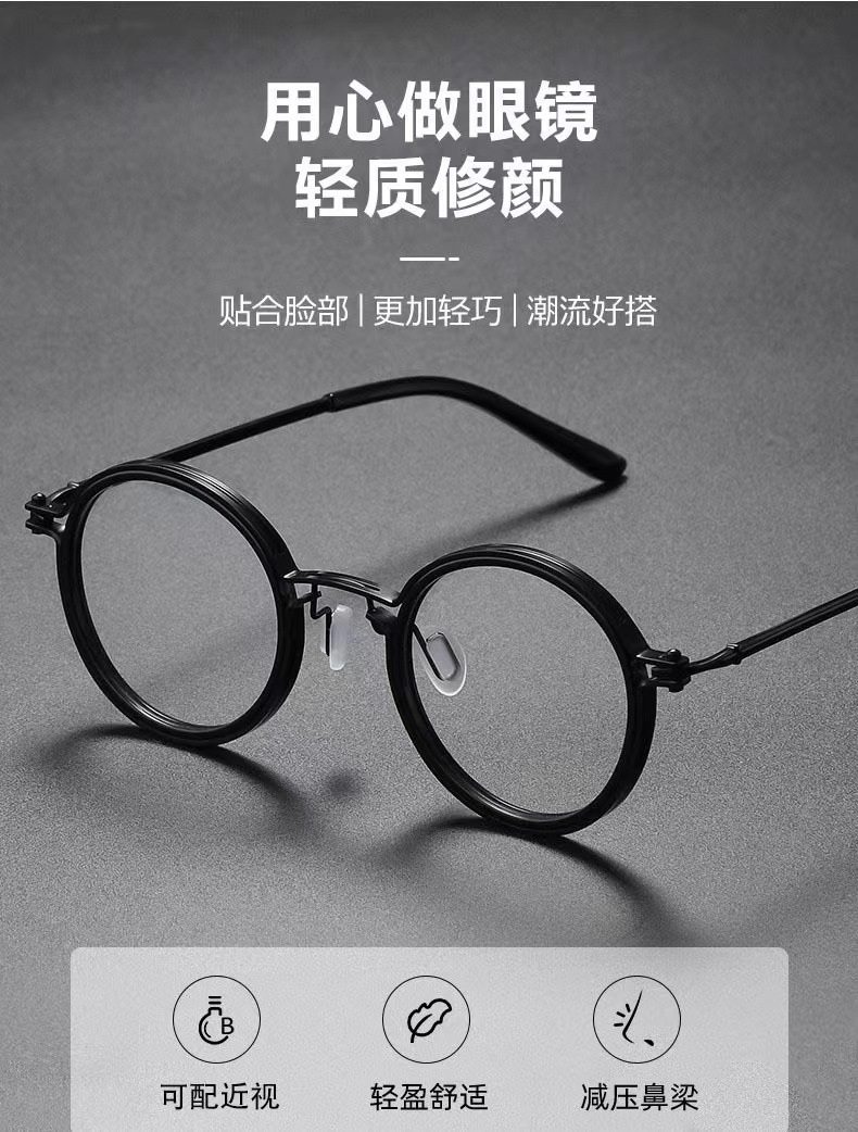 Cross-Border New Style Sweep Thunder Storm Same Style Round Frame Glasses Frame with High Myopia Anti-Blue Light Flat Mirror Fashion Glasses