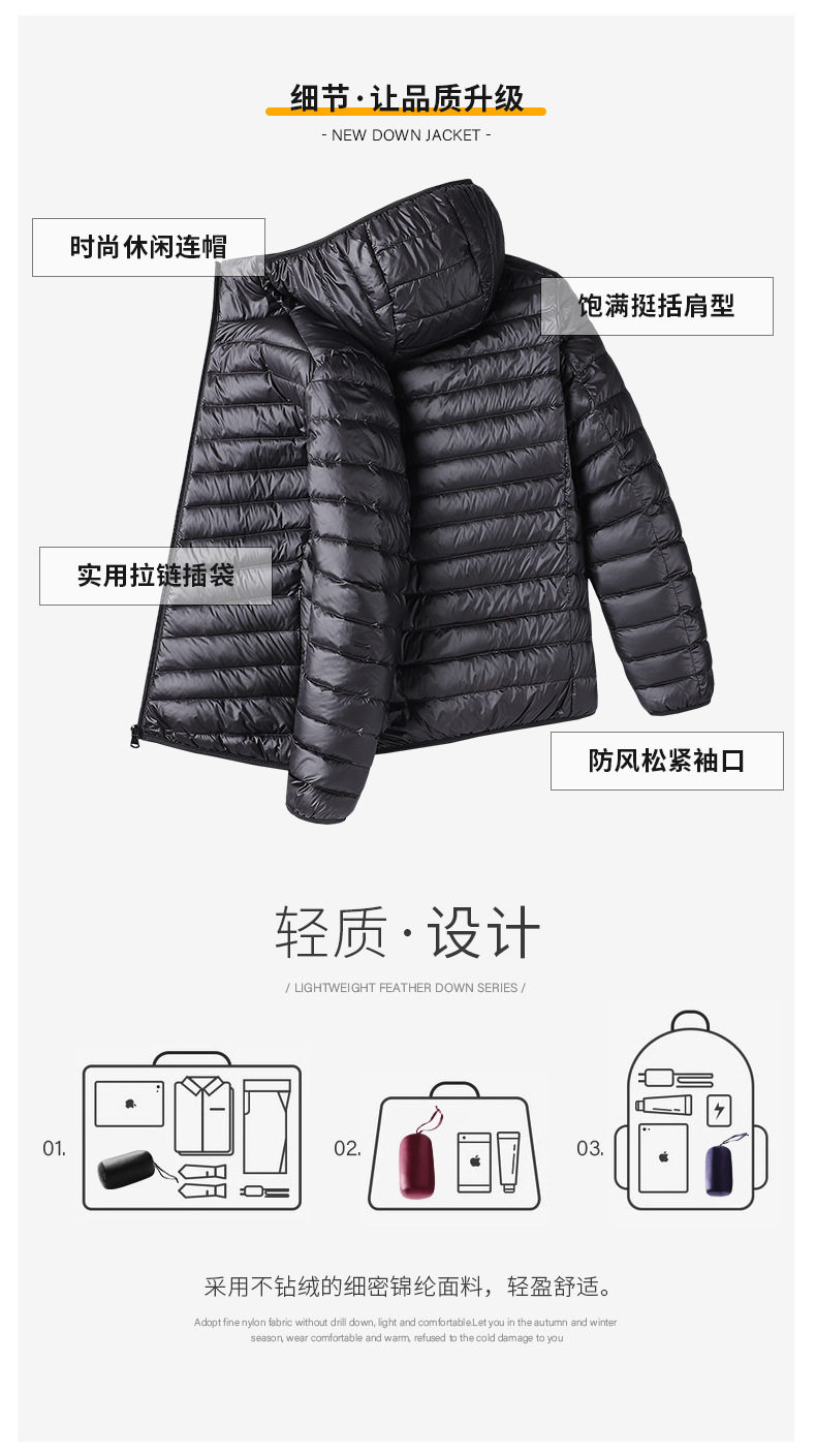 High-End White Duck down Hooded down Jacket for Men, Lightweight 2025 Trendy Brand Winter Trendy Brand Young and Middle-Aged Dad Jacket for Men