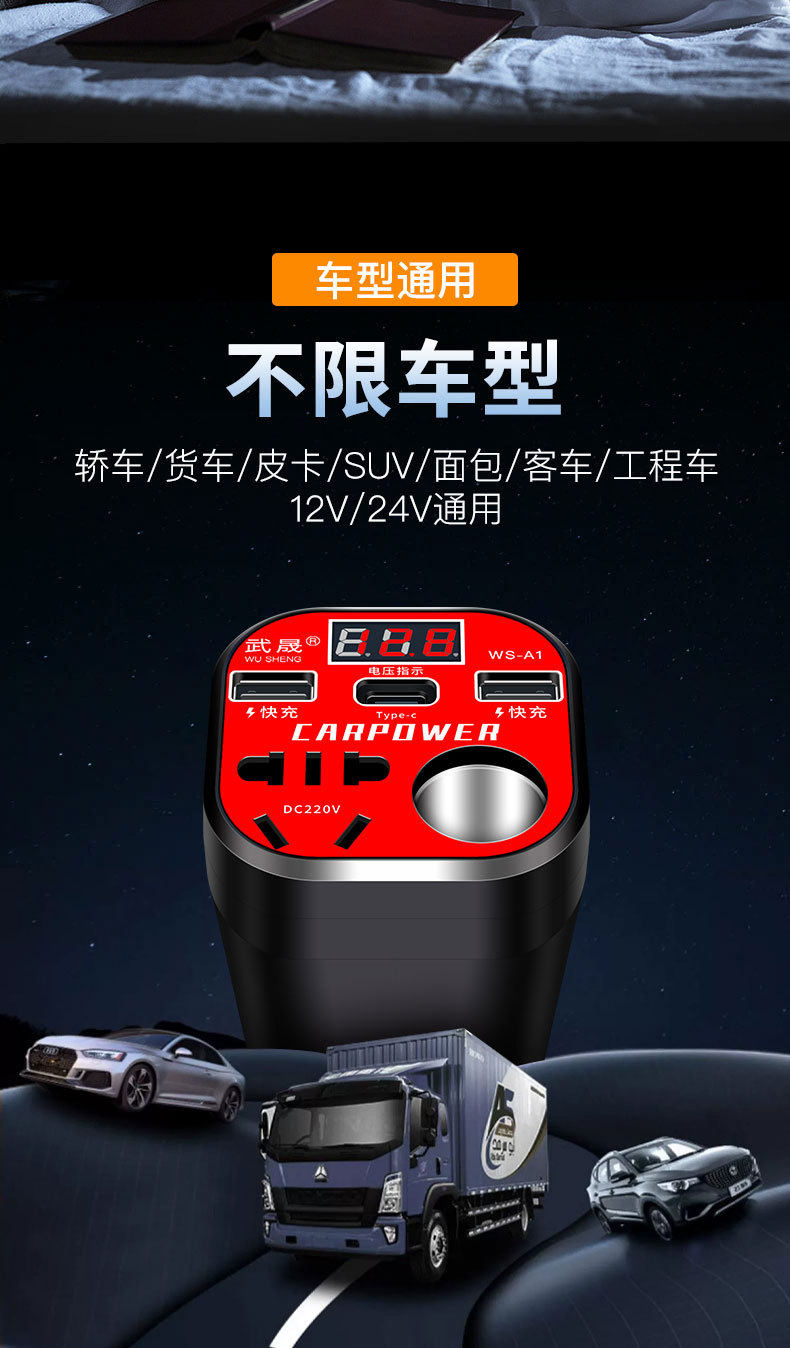 12V24V to 220V multifunctional car inverter multifunctional converter charger for cars and trucks