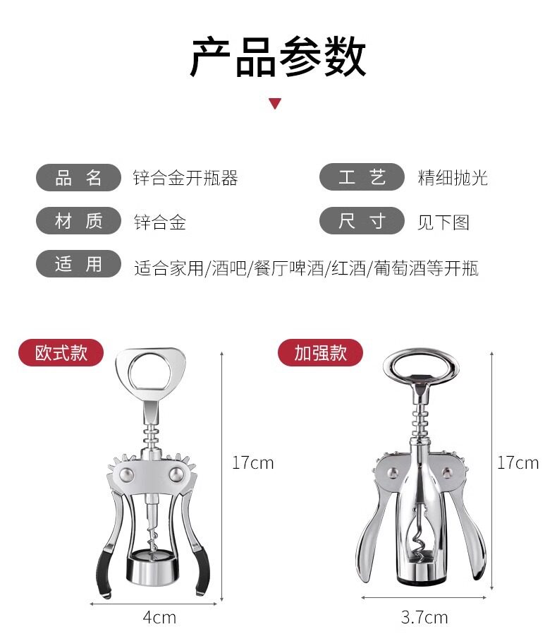 | Specification size | Plastic wine opener,Ordinary style,Stainless steel color,European style,Seahorse knife,Ordinary model + vacuum wine stopper + paper cutter + bottle opener certificate,Stainless steel color + vacuum wine stopper + bottle opener certificate,European style + vacuum wine stopper + paper cutter + bottle opener certificate,Ordinary model + vacuum wine stopper + wine pourer + paper cutter + bottle opener certificate,Stainless steel color + vacuum wine stopper + wine pourer + paper cutter + bottle opener certificate,European style + vacuum wine stopper + wine pourer + paper cutter + bottle opener certificate,Haima g + vacuum wine stopper + bottle opener certificate,Haima g + vacuum wine stopper + wine pourer + bottle opener certificate,Ordinary model + paper cutter + bottle opener certificate,European style + paper cutter + bottle opener certificate,Stainless steel color + paper cutter + bottle opener certificate,Stainless steel color + vacuum wine stopper + paper cutter + bottle opener certificate |