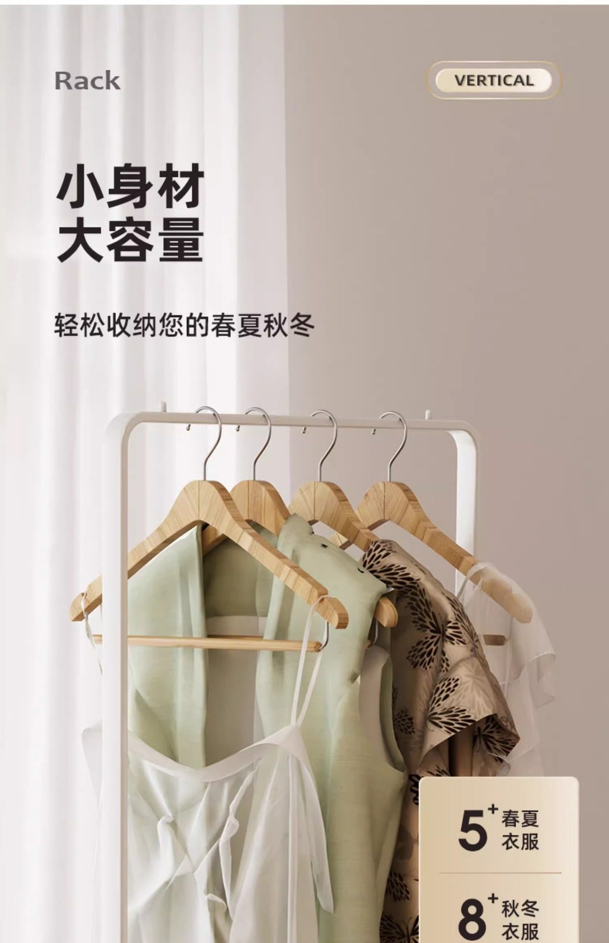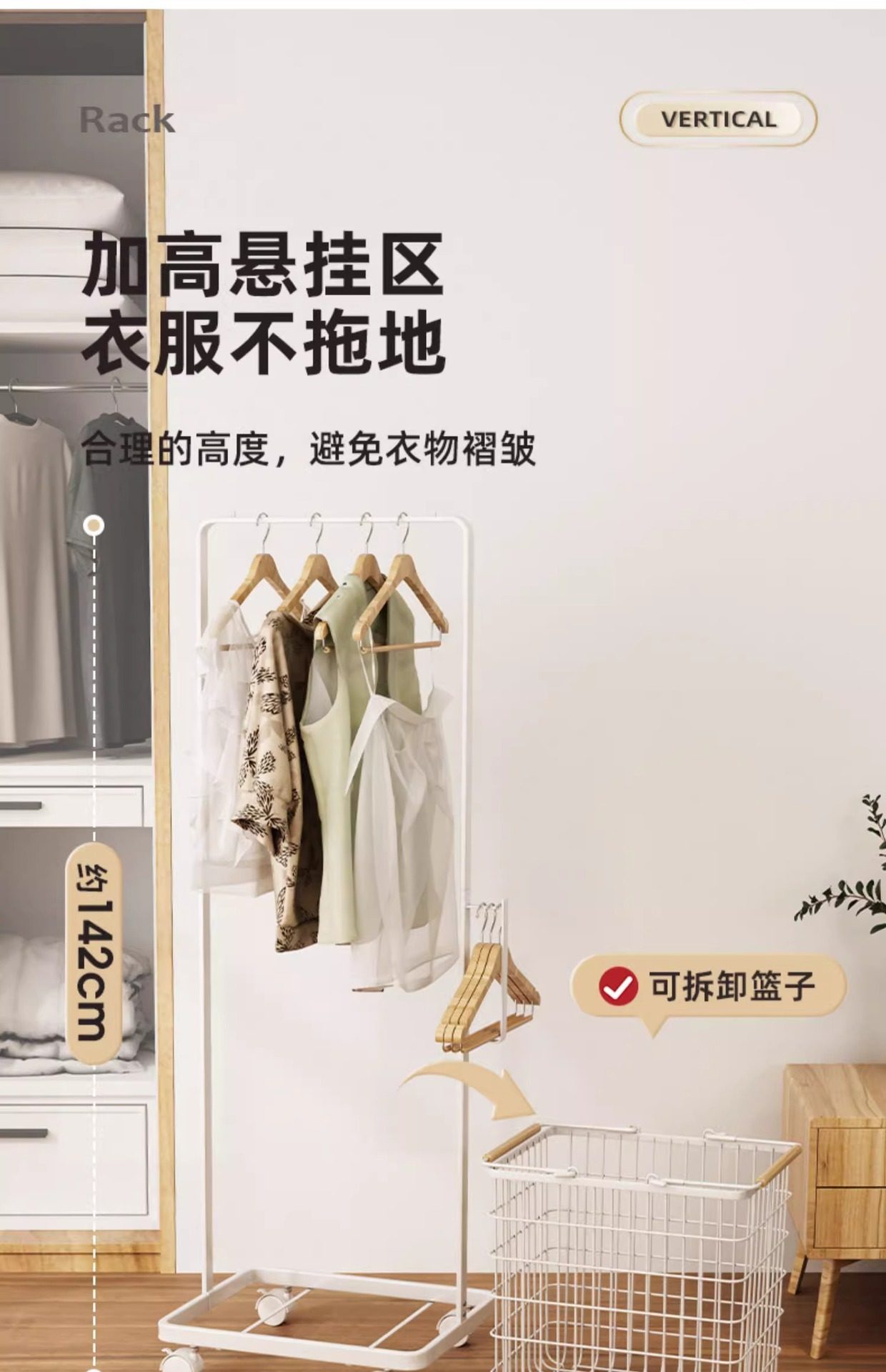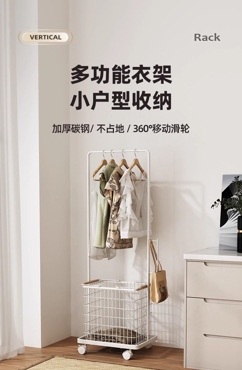 Household Bedroom Floor-Standing Clothes Rack, Mobile Simple Coat Rack, Room Entrance Pole-Type Clothes Hanging Storage Rack