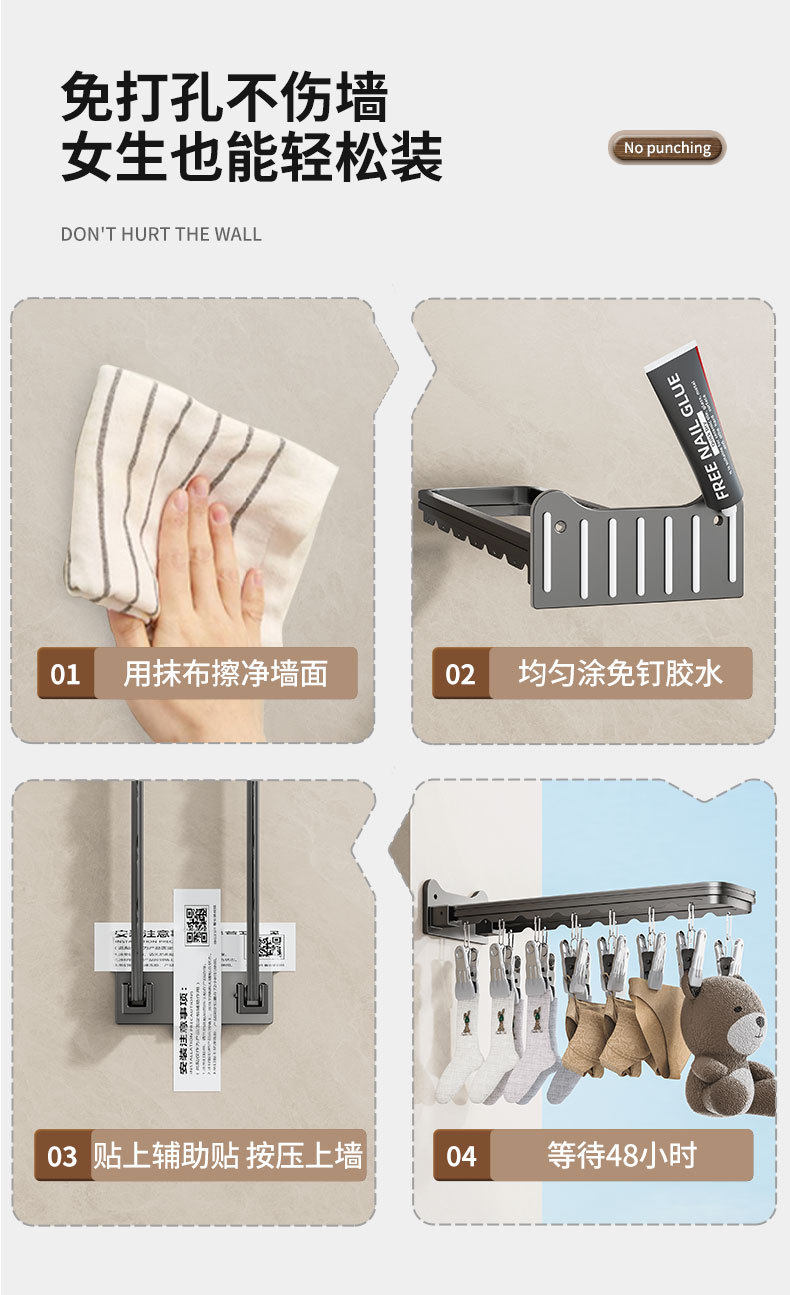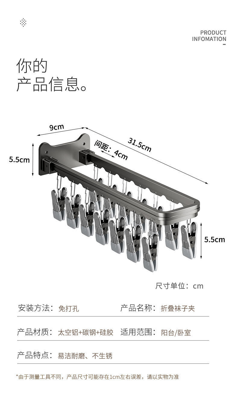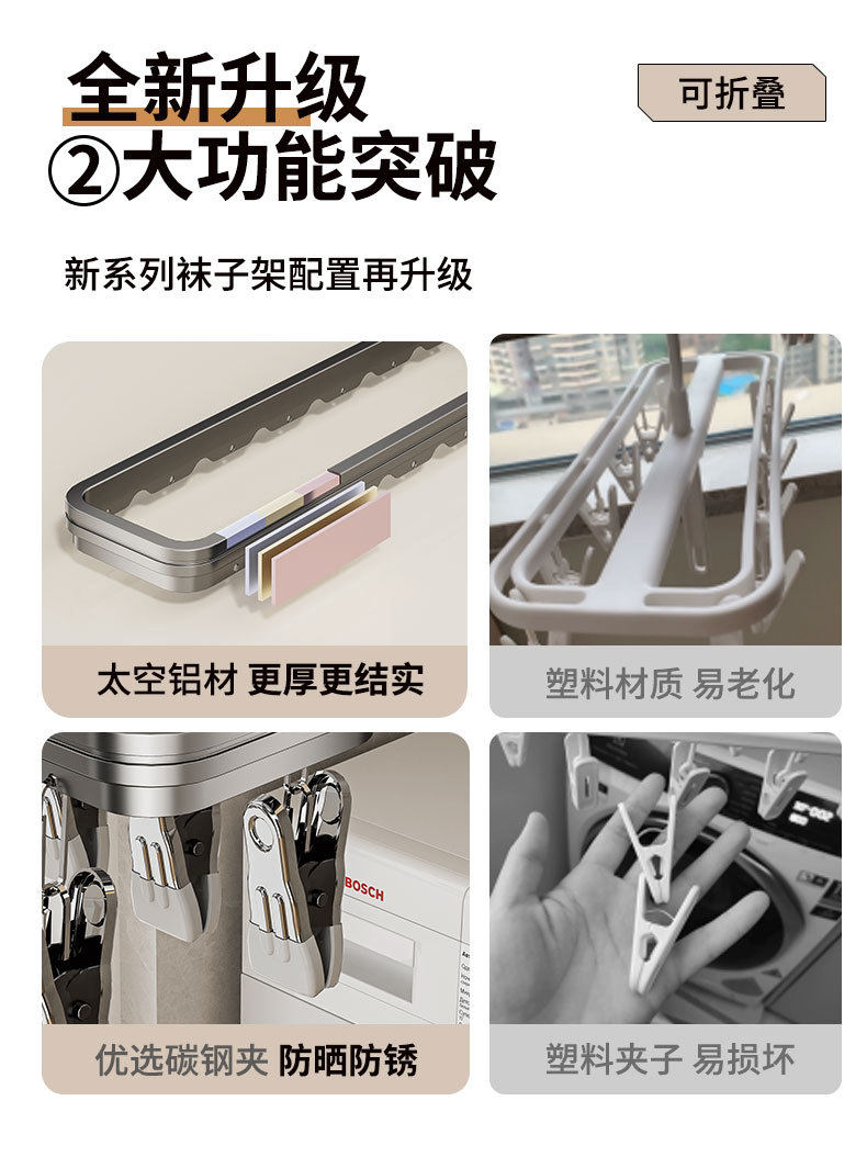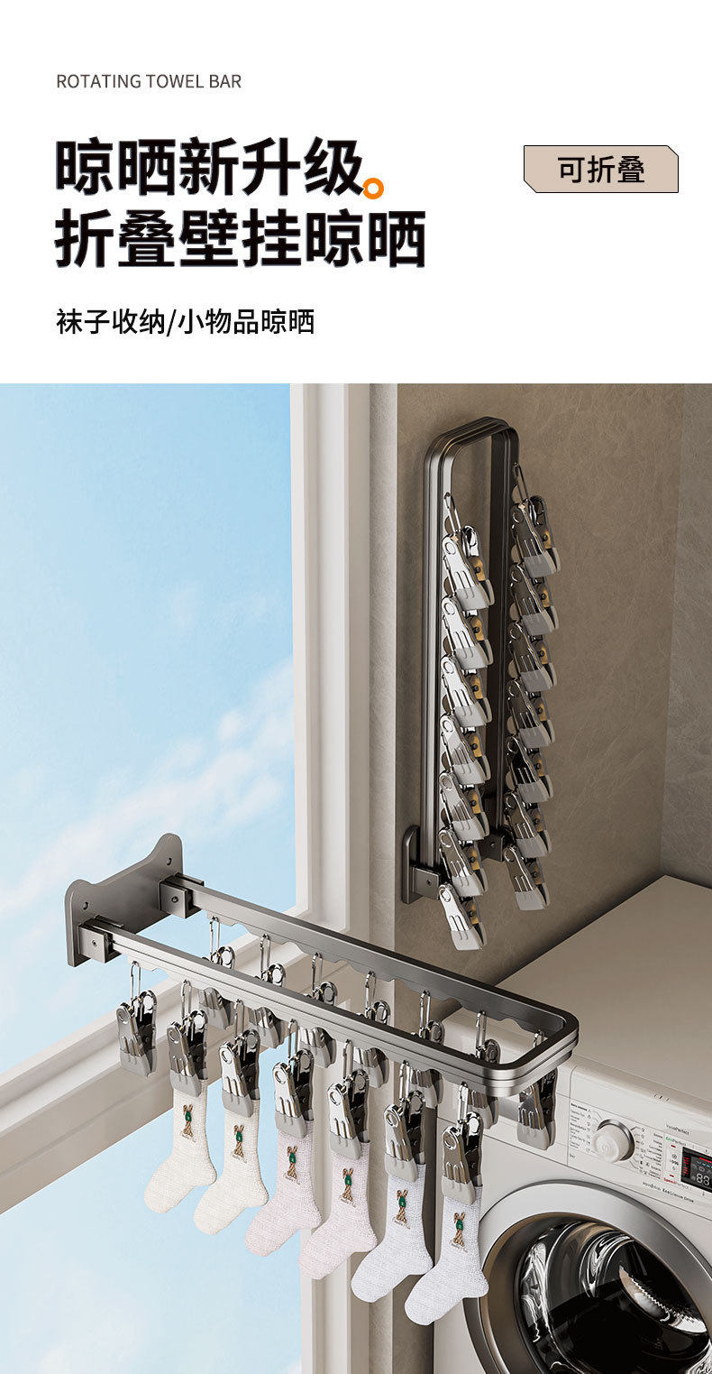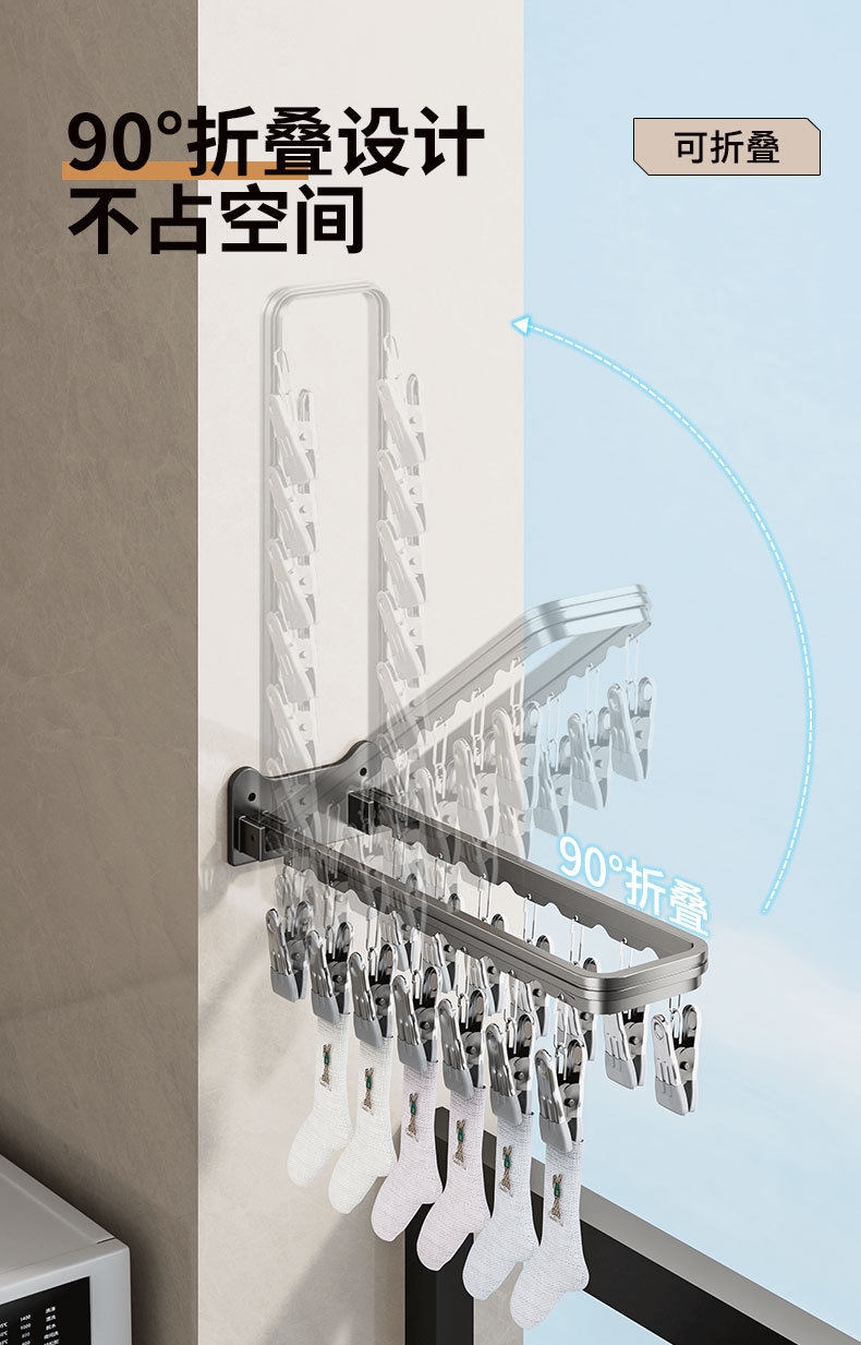Folding Socks Clip Artifact Punch-free Wall Hanging Drying Rack Household Multi-clip Multi-function Balcony Drying Rack Socks Clip