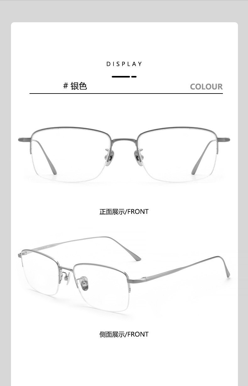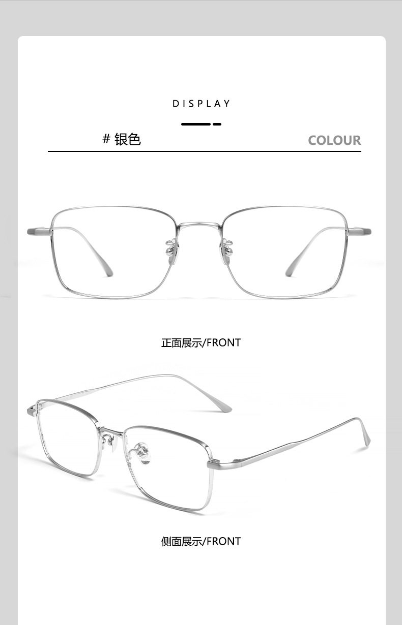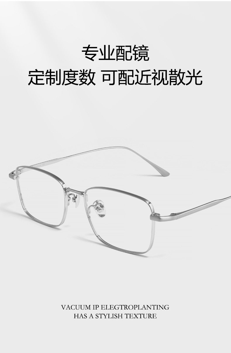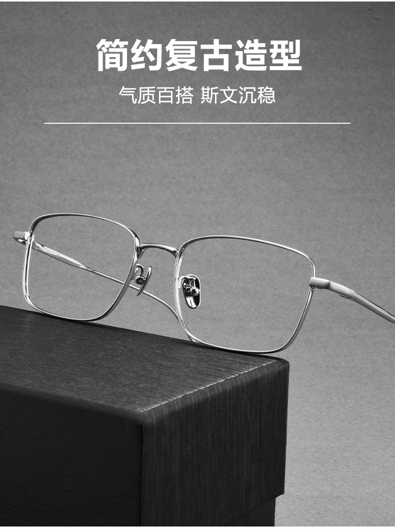 Ultra-Light Pure Titanium Myopia Glasses Lex Business Ultra-Light Silver Wire Frame Titanium Frame Retro Square Frame Glasses Frame for Men