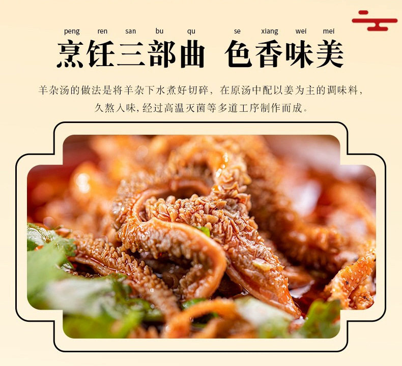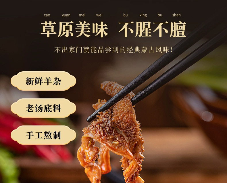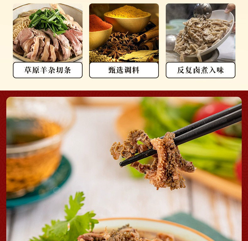 | Raw materials and ingredients | Sheep liver, sheep lungs, sheep heart, sheep tripe, sheep fat intestines, etc |
