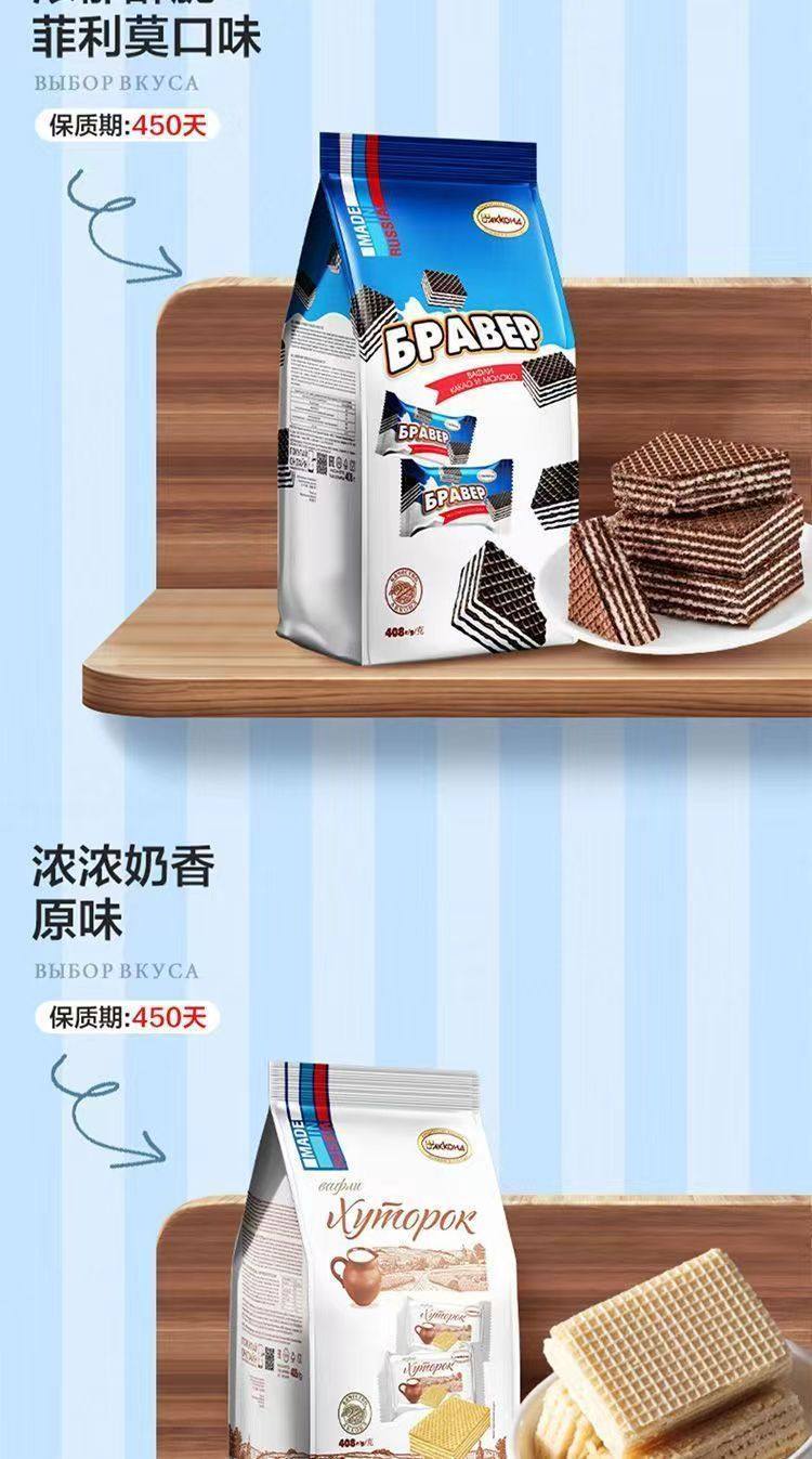 Akonte Brand Russian Wafer Biscuits Imported 408g Filimo Ice Cream Flavor Internet Celebrity Casual Snacks