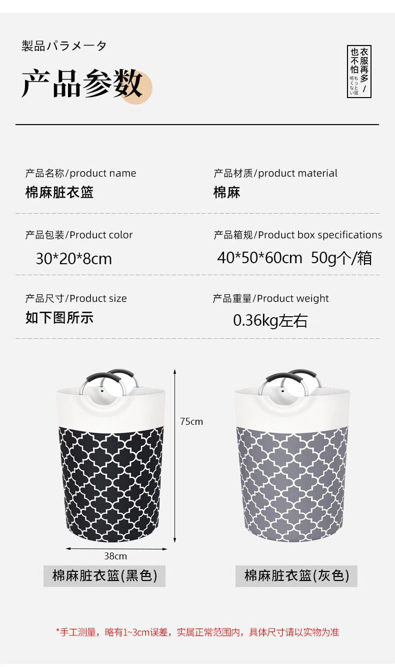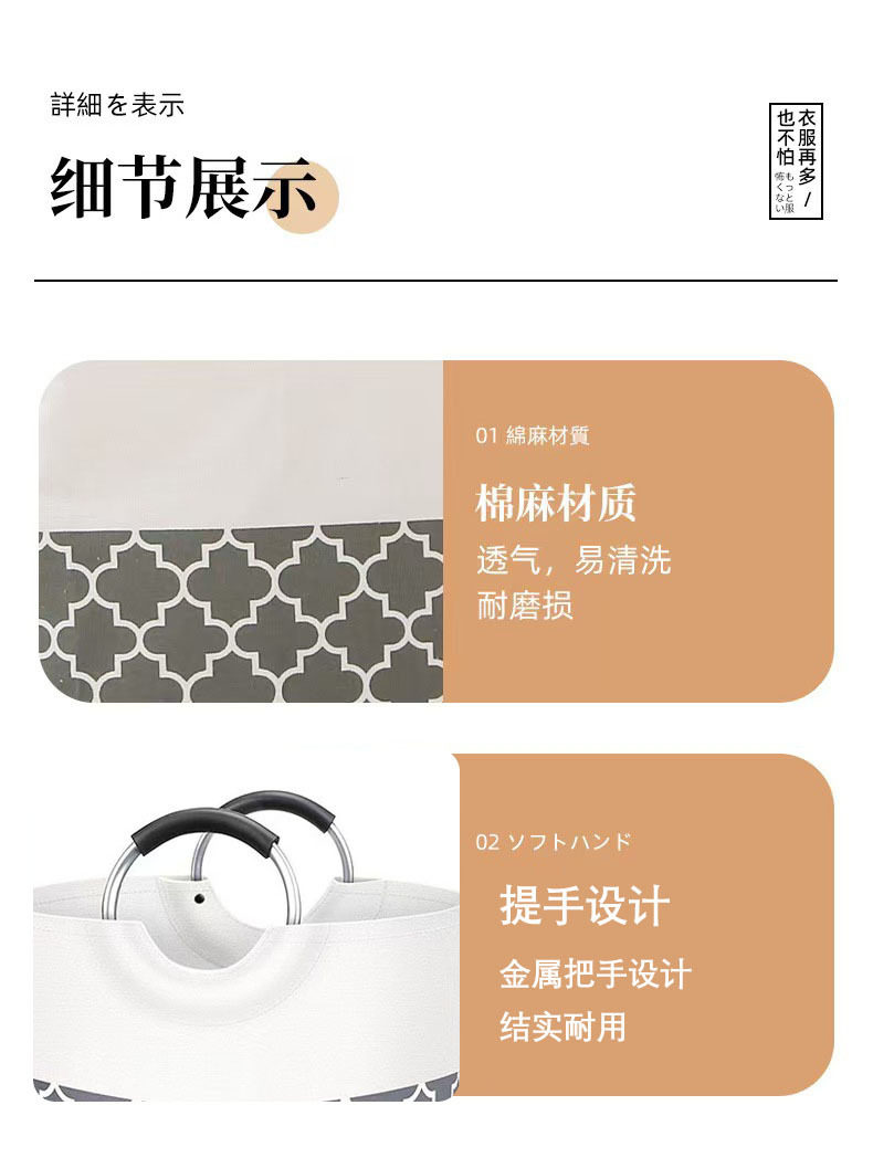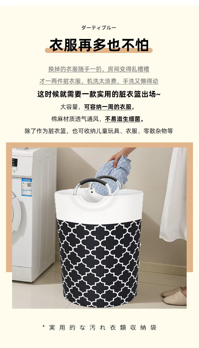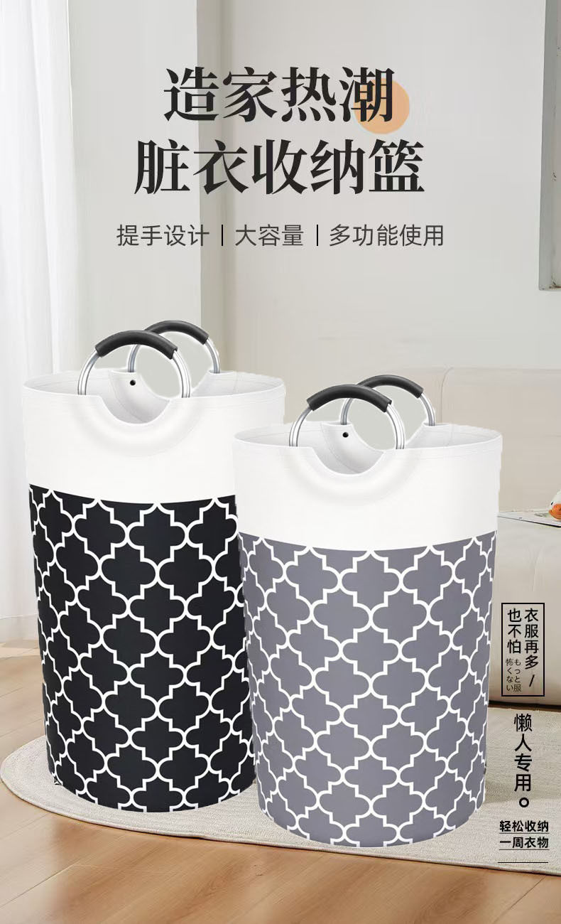 Cross-Border Large-Capacity Laundry Basket Aluminum Handle Bathroom Dirty Clothes Basket Toy Storage Basket Foldableable Household Dirty Clothes Basket
