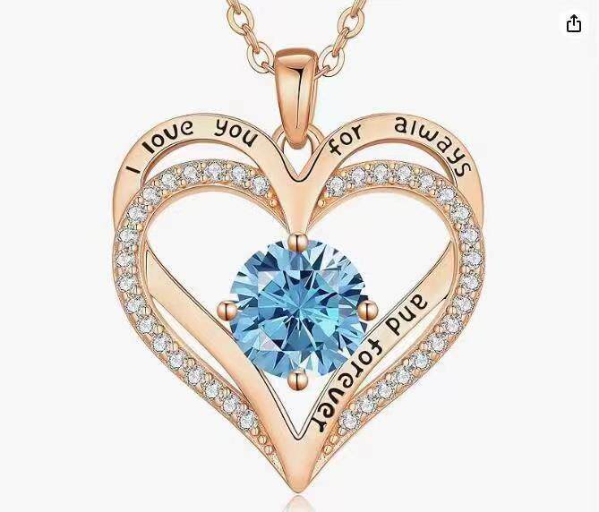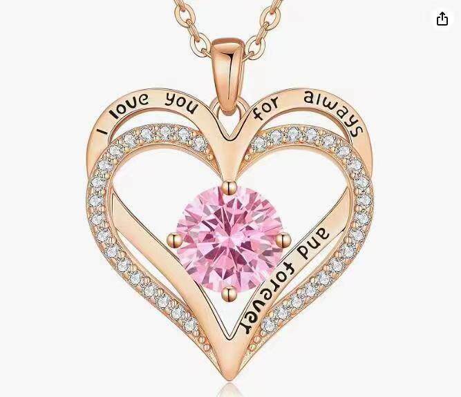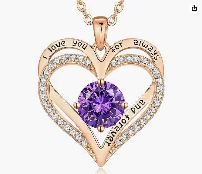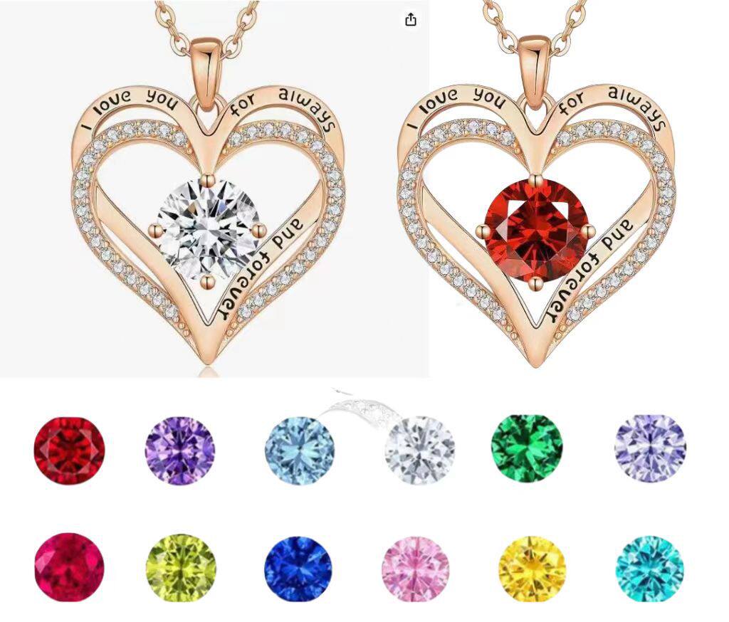 Cross-border Europe and the United States hot selling rose gold double heart necklace twelve birthday diamond high-grade jewelry factory direct sales