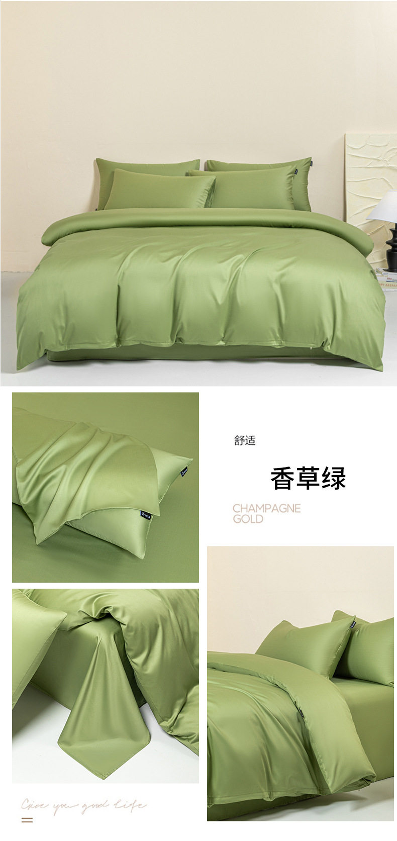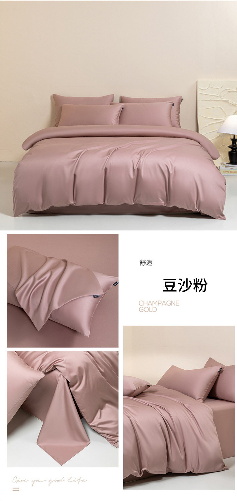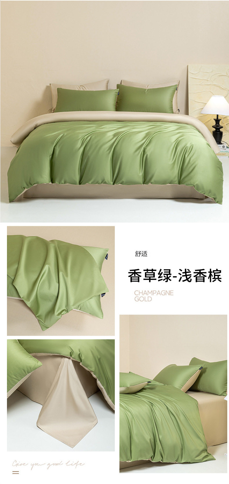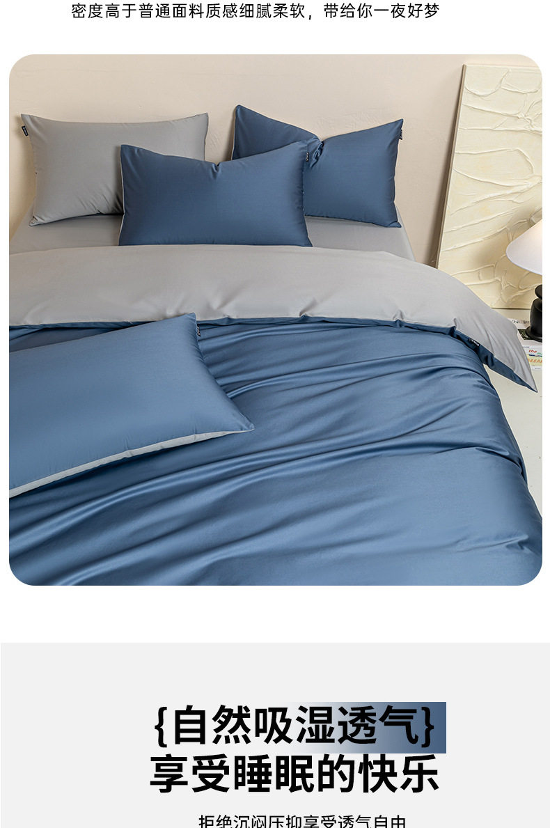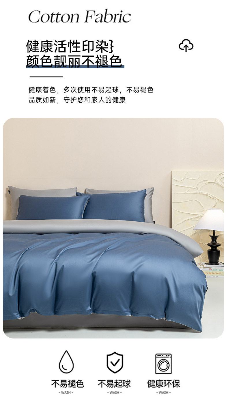 100-Count Long-Staple Cotton Four-Piece Set, 100% Pure Cotton Single Duvet Cover, Bed Sheet, Simple Solid Color Student Bedding Three-Piece Set