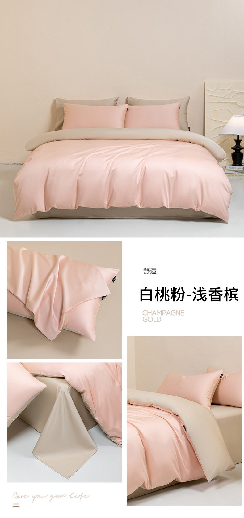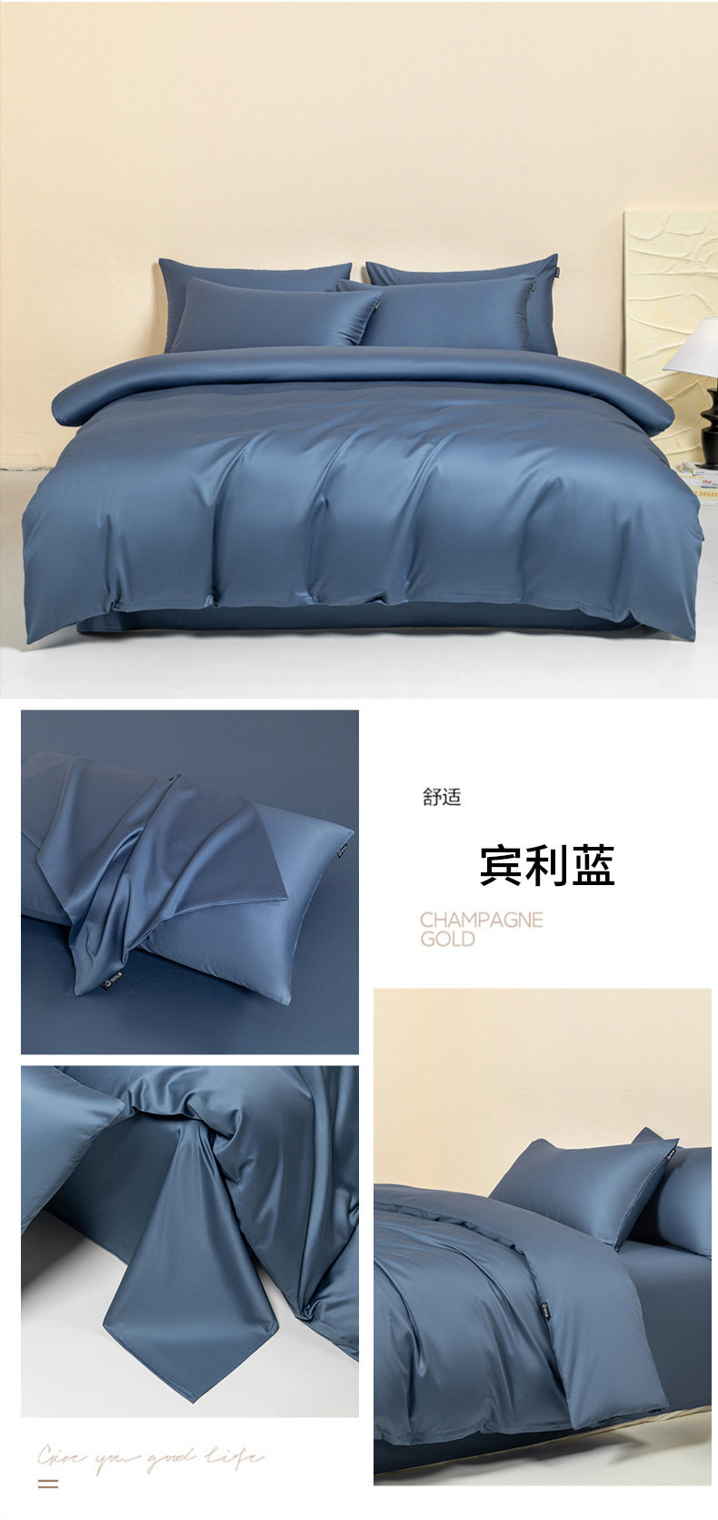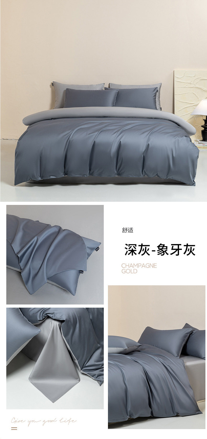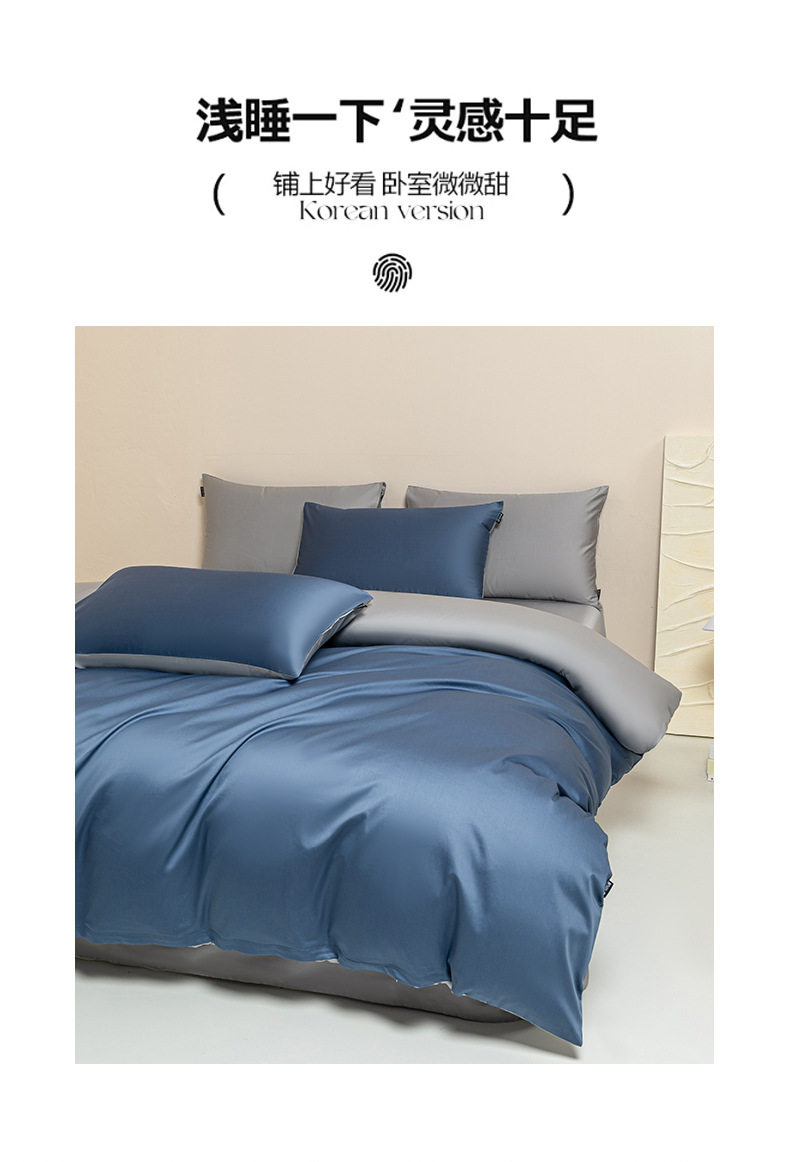 100-Count Long-Staple Cotton Four-Piece Set, 100% Pure Cotton Single Duvet Cover, Bed Sheet, Simple Solid Color Student Bedding Three-Piece Set