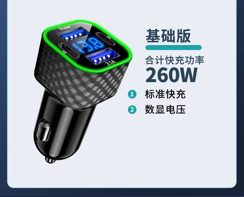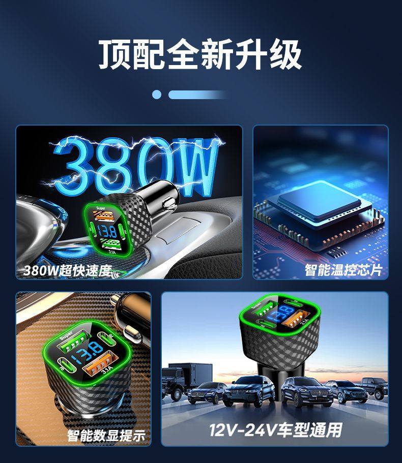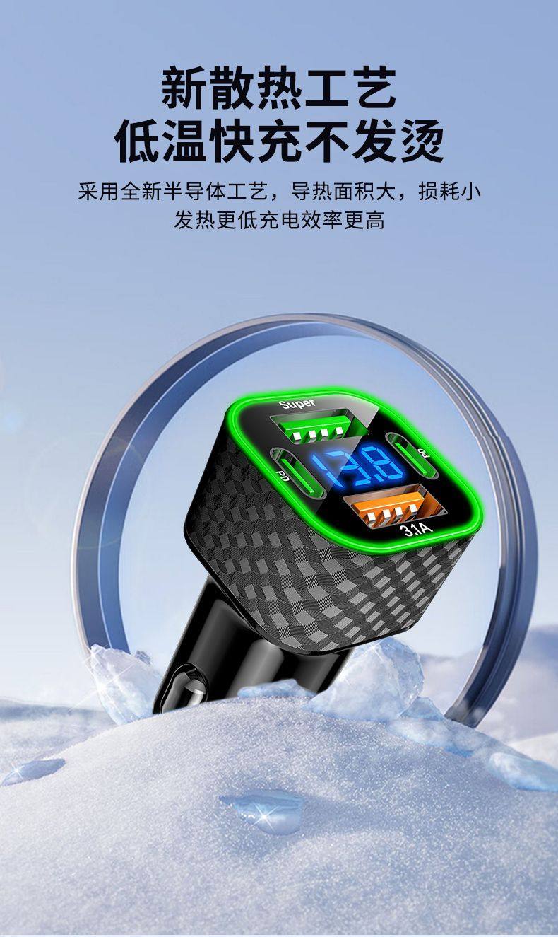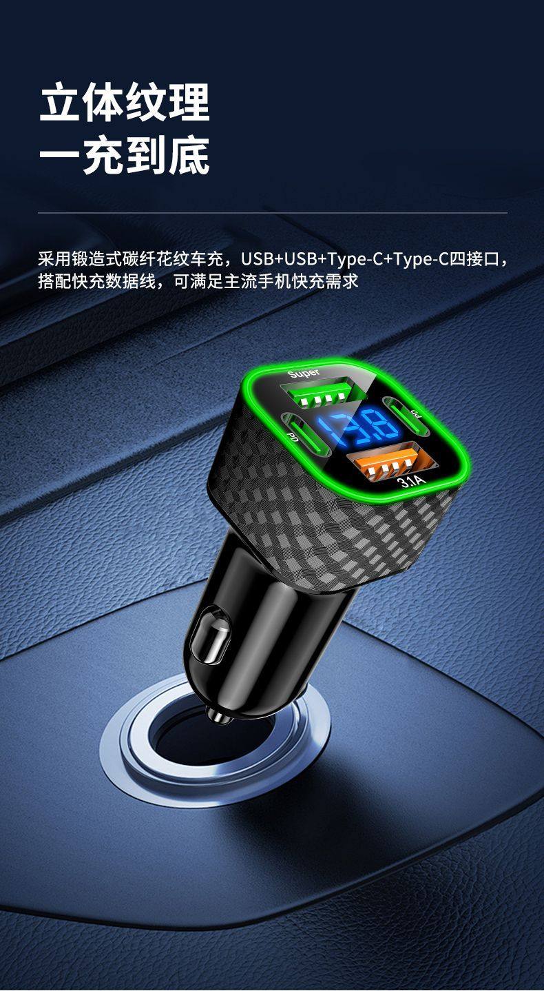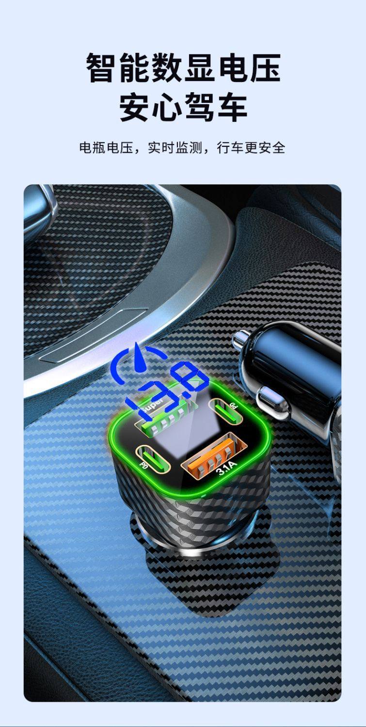 Texture car charger super fast charging multi-port one-on-four flash charging with digital display car cigarette lighter hole converter