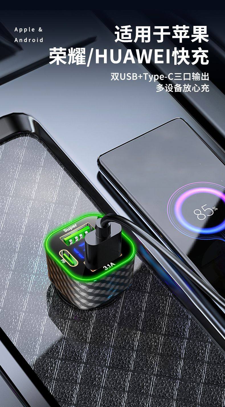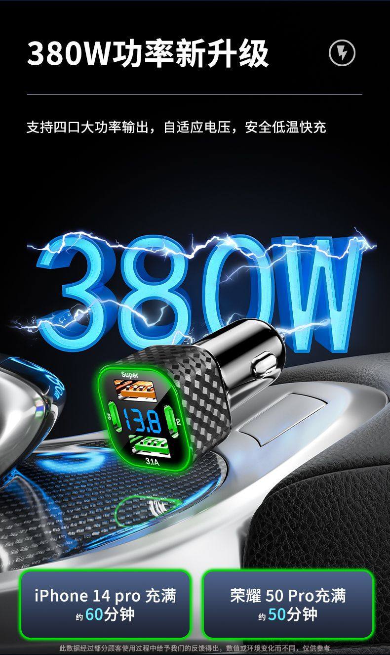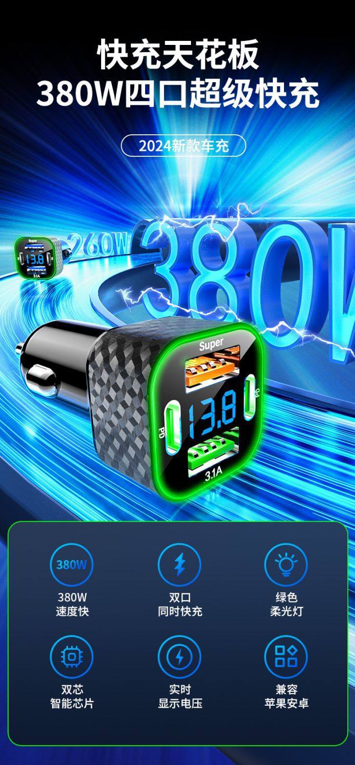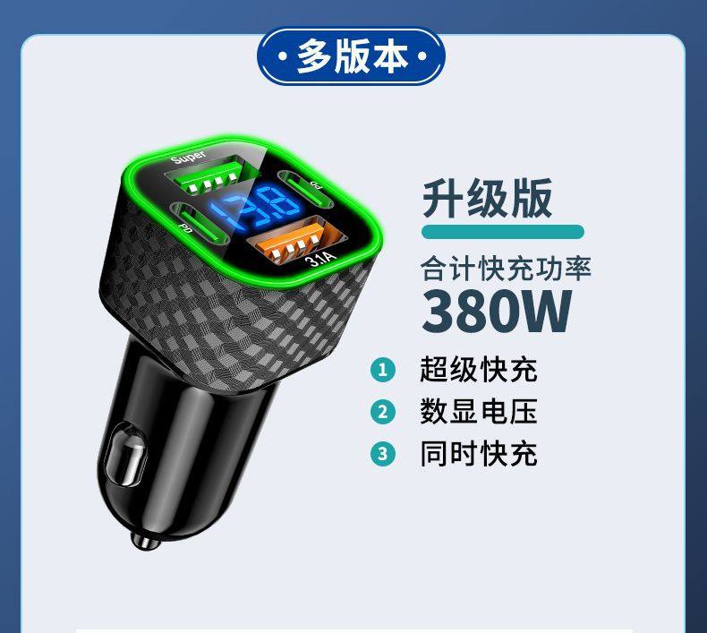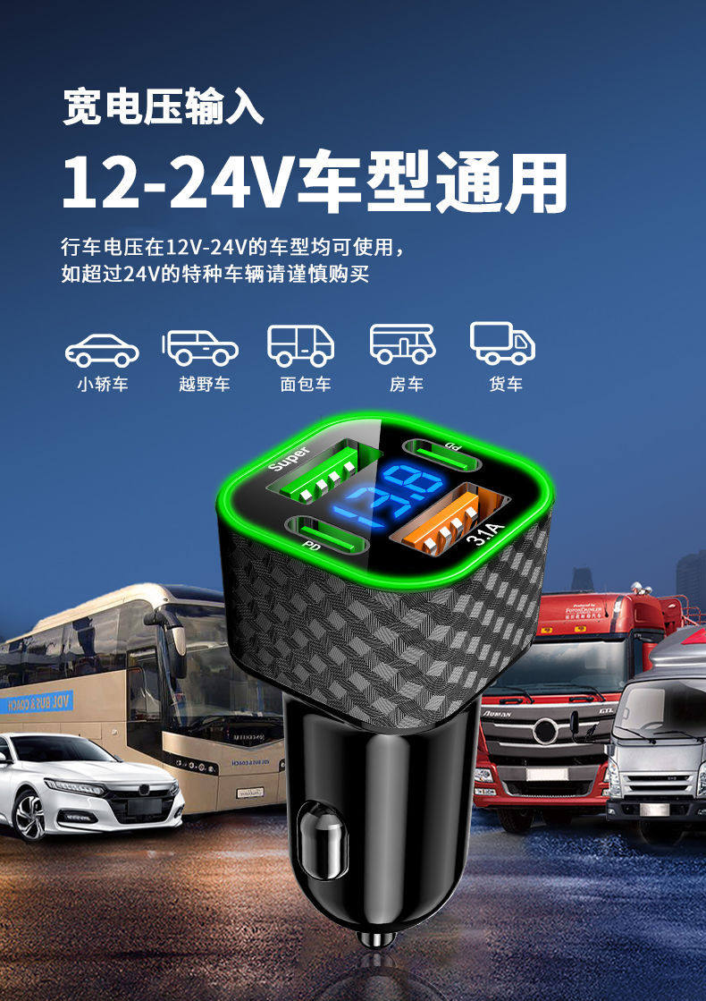 Texture car charger super fast charging multi-port one-on-four flash charging with digital display car cigarette lighter hole converter
