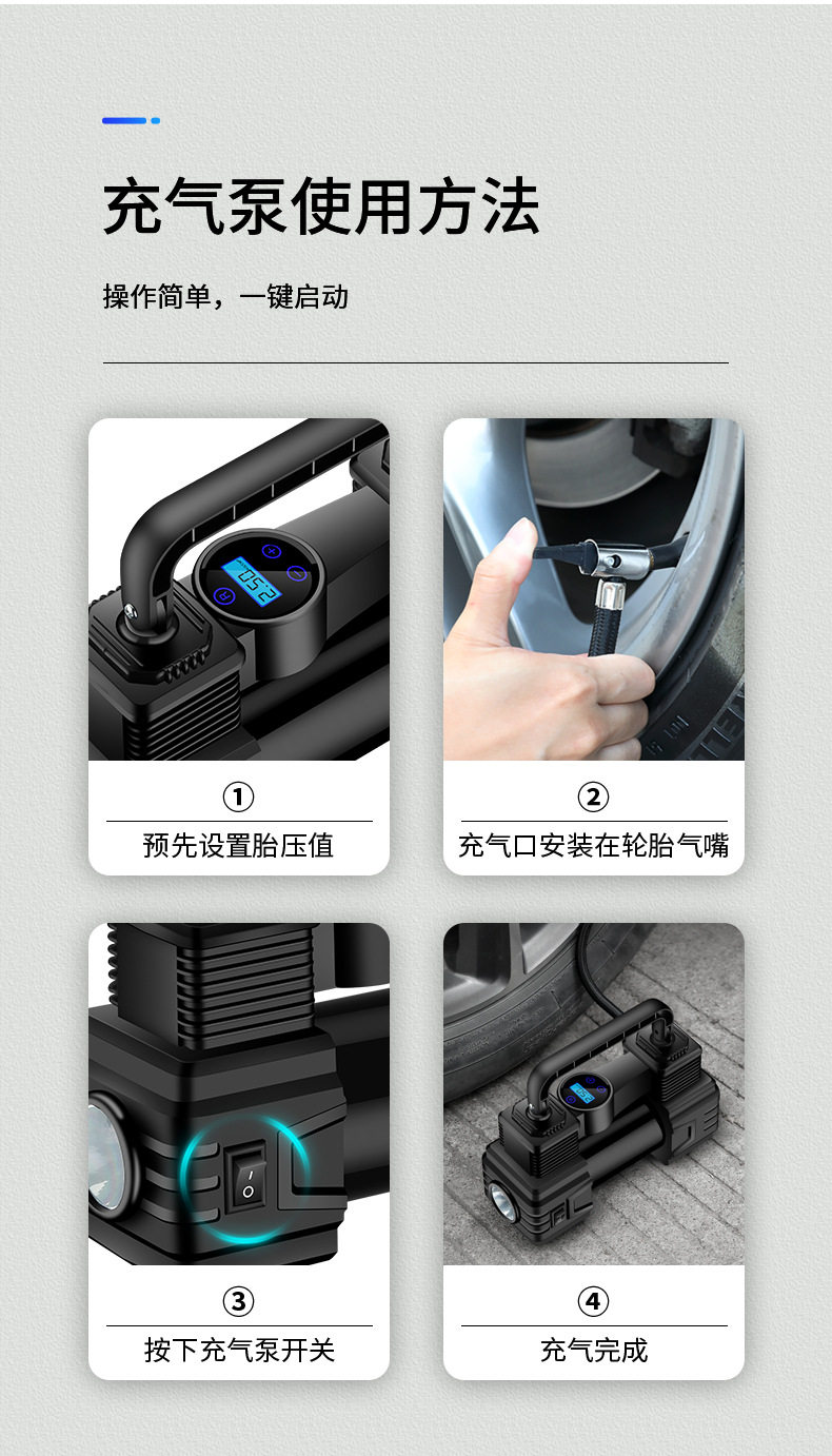 Intelligent car air pump car air pump digital display 12v portable tire pump intelligent emergency tire repair