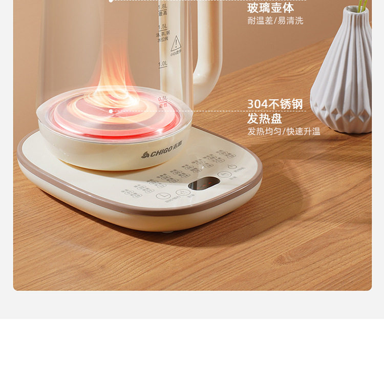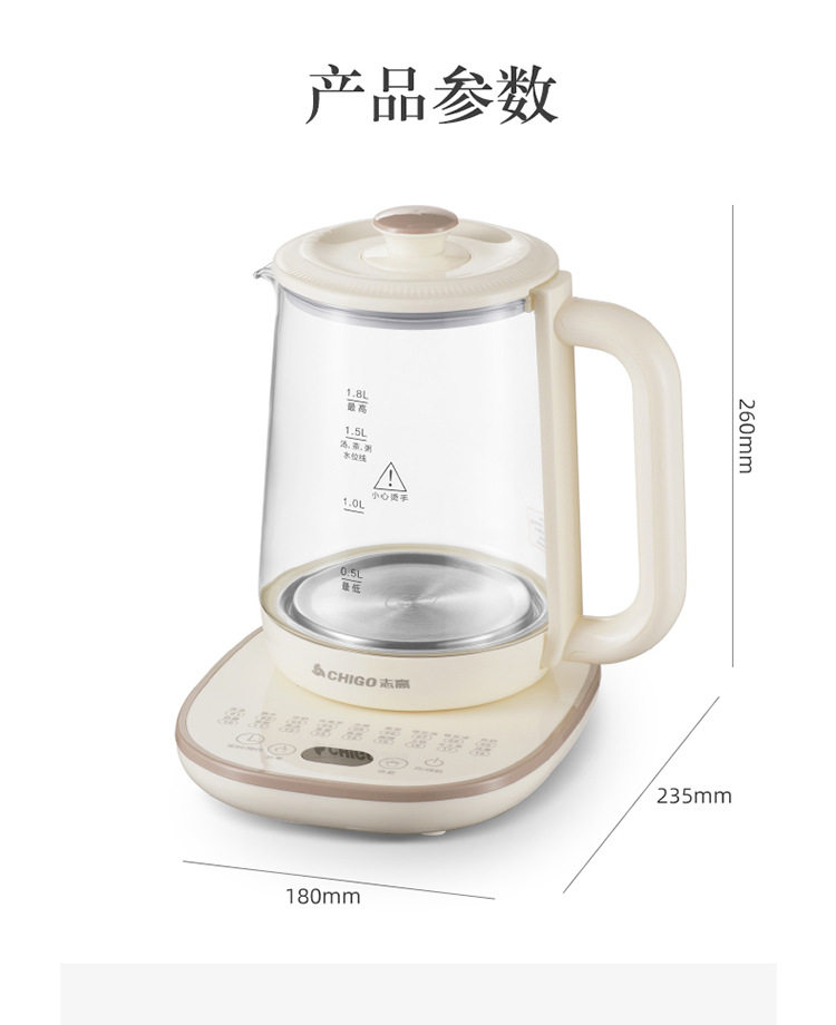 Chigo Health Pot Multifunctional Black Tea Brewing Device Thickened Glass Electric Kettle Flower Tea Pot for Brewing Pu'Er Tea