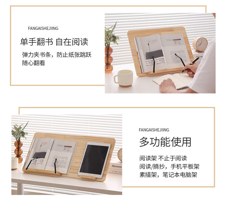 Wooden Reading Stand, Bookshelf, Children's Reading Book Holder, Multifunctional Reading Stand for Mobile Phones and Tablets, Desk