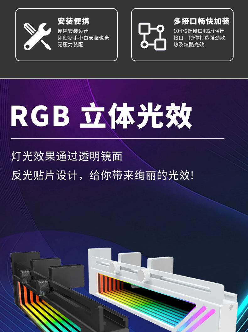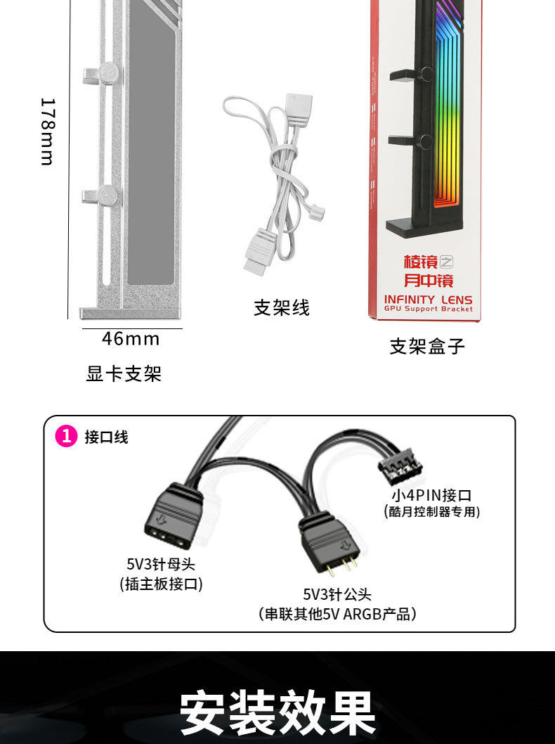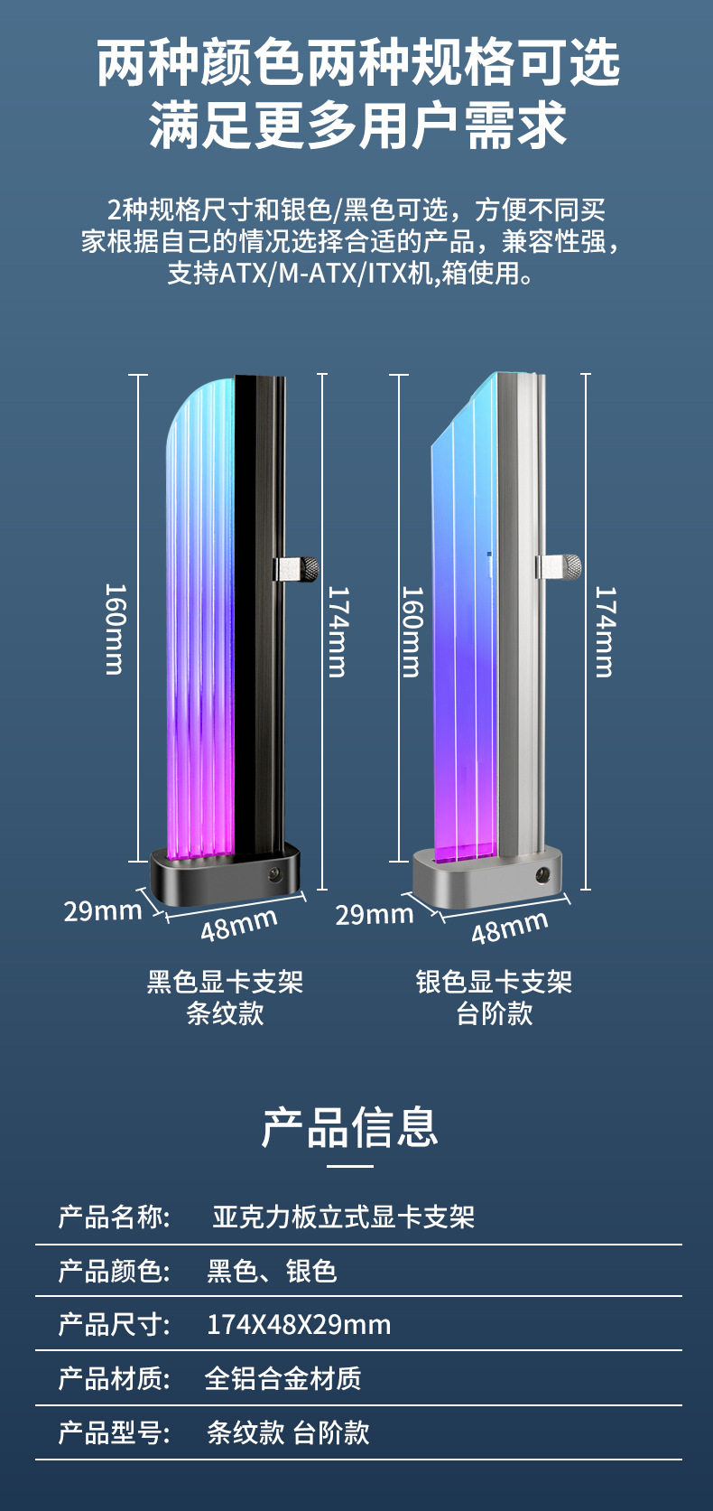 | Color | Black argb graphics card bracket,Silver argb graphics card bracket,Black argb graphics card bracket +5v3 pin controller,White argb graphics card bracket +5v3 pin controller,Black argb graphics card bracket [premium edition],Silver argb graphics card bracket [premium edition],Black argb graphics card bracket [ultimate edition],Silver argb graphics card bracket [ultimate edition] |