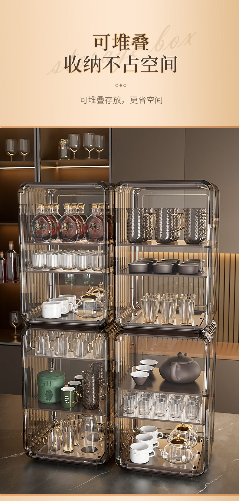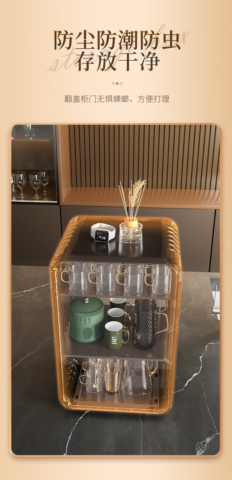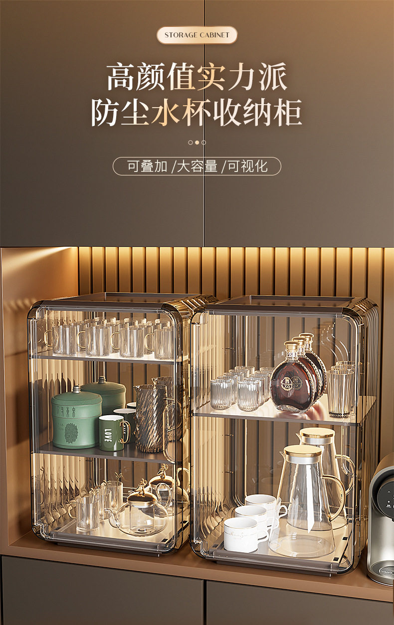 Desktop Acrylic Cup Storage Rack Dustproof Household Living Room Kitchen Countertop Layered Storage Rack Snack Storage Rack