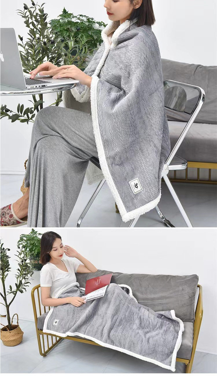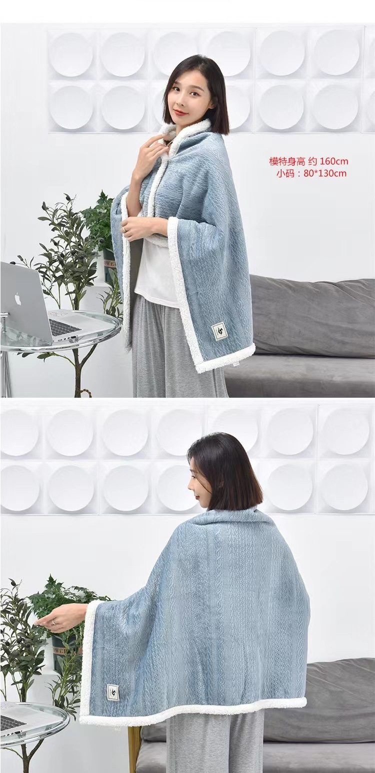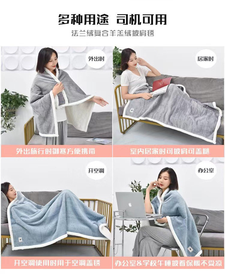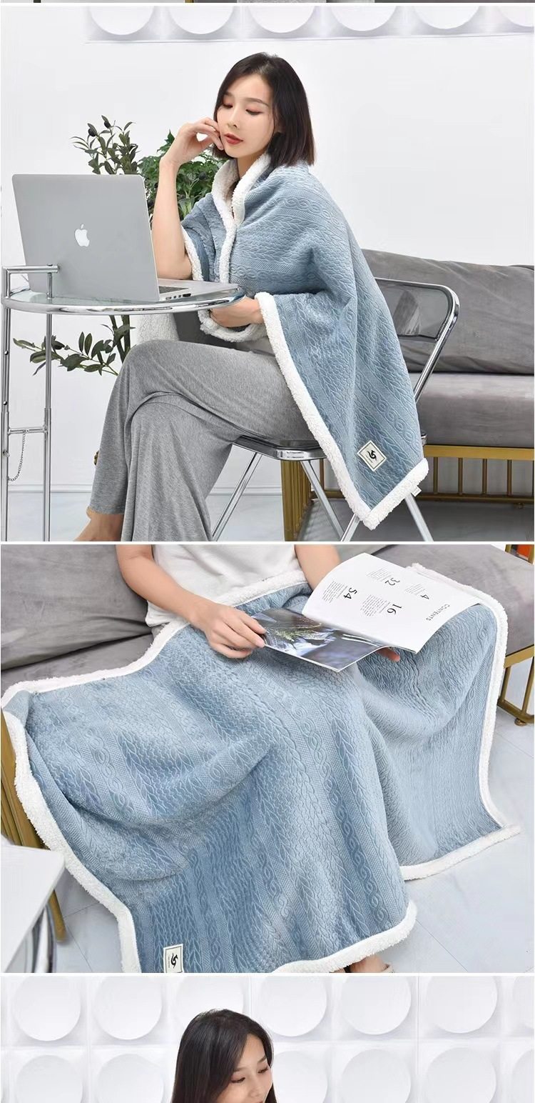 Casual Flannel Composite Lamb Velvet Shawl Blanket Office Lunch Break Blanket Thickeneded Warm Blanket Towel Quilt