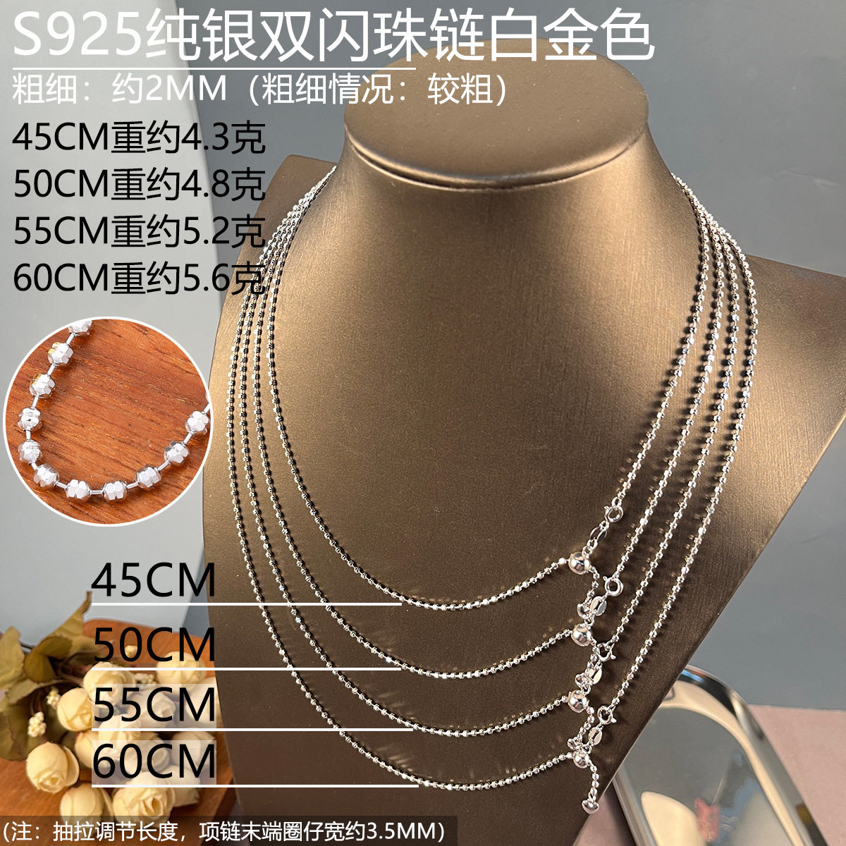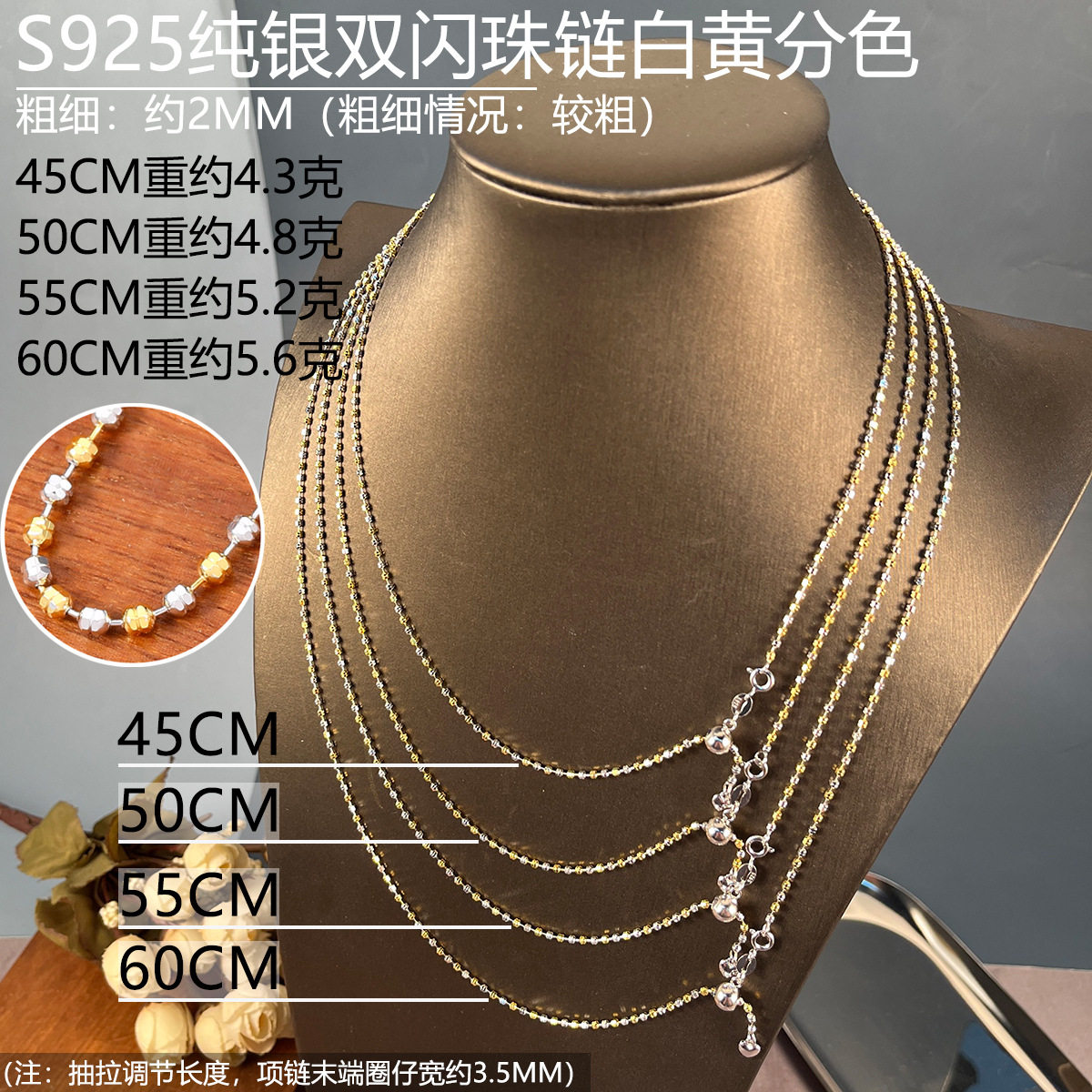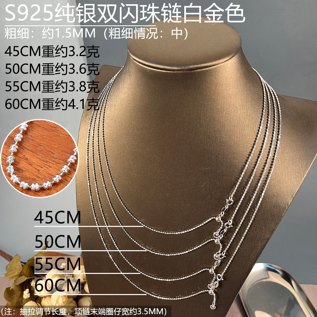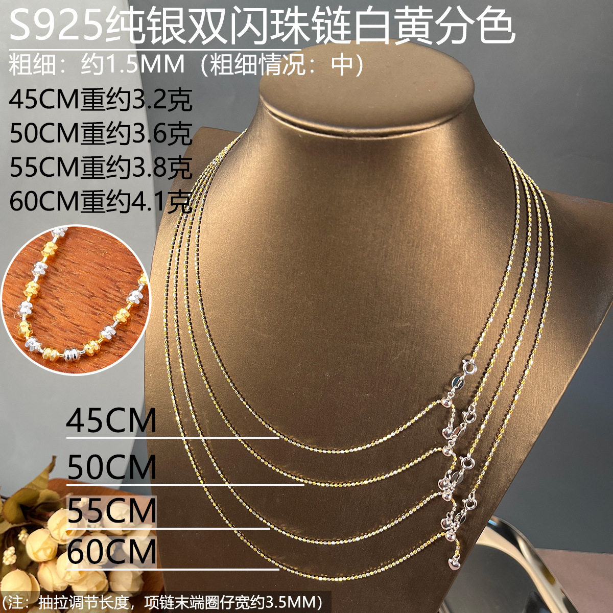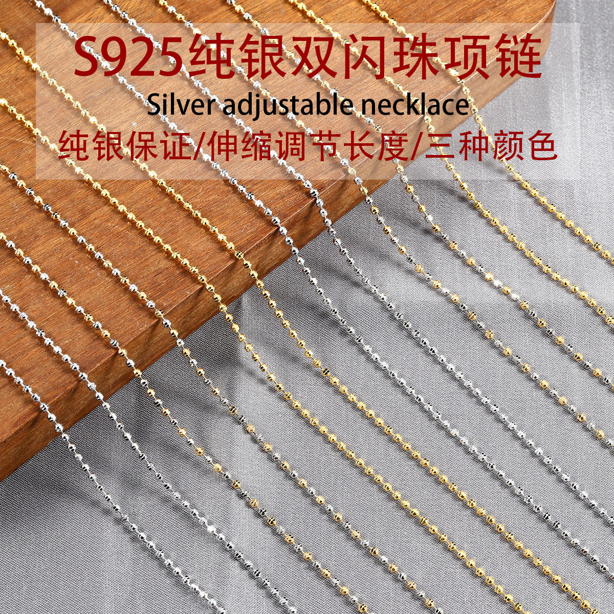 Sterling Silver Necklace S925 Double Flash Bead Chain Starlight Women's Adjustable Necklace Clavicle Chain Diamond Chain Gold-Plated Necklace Jewelry