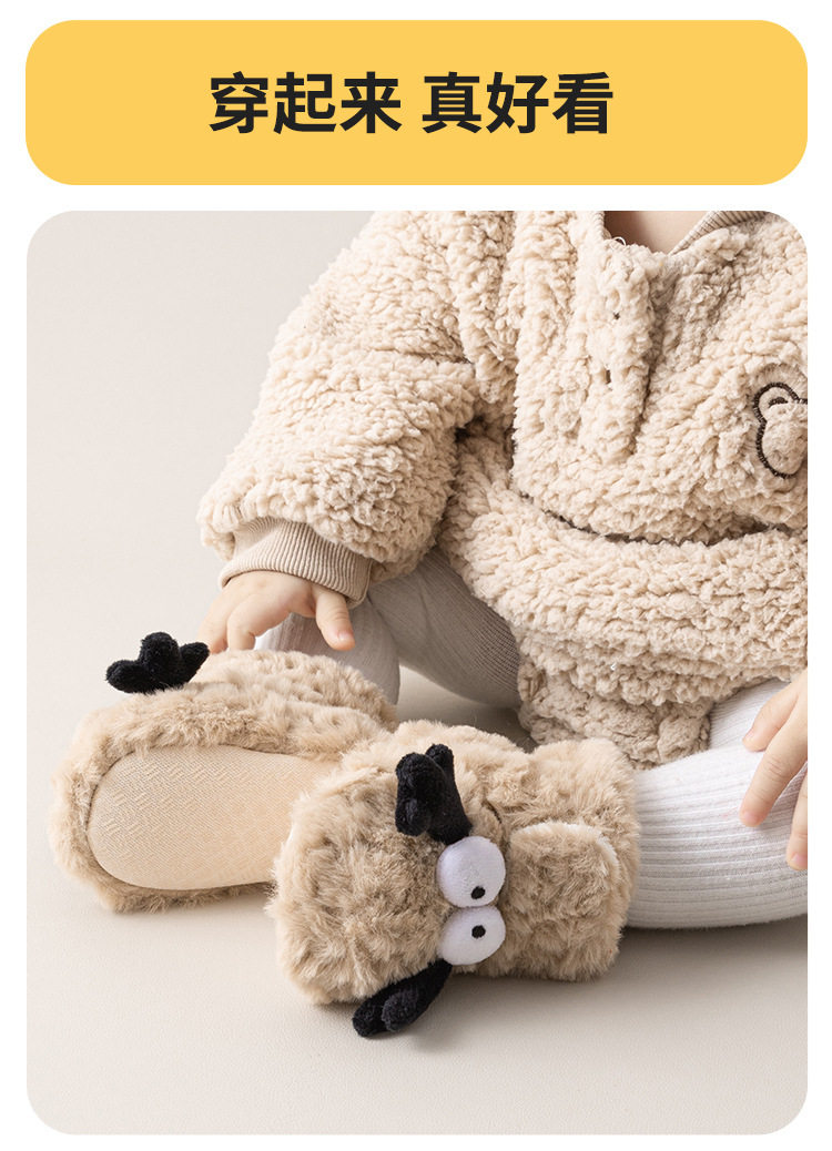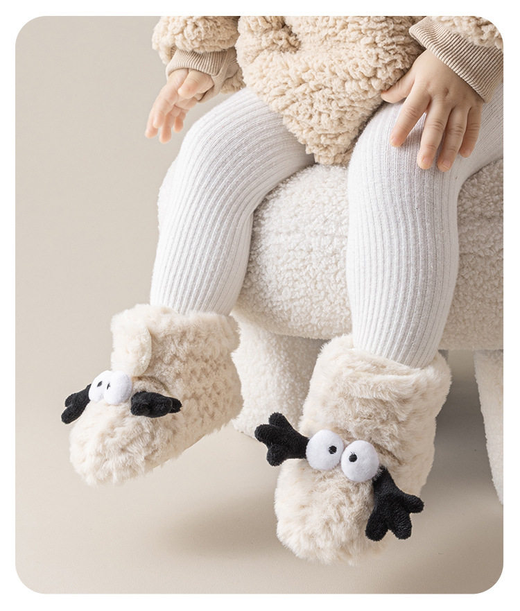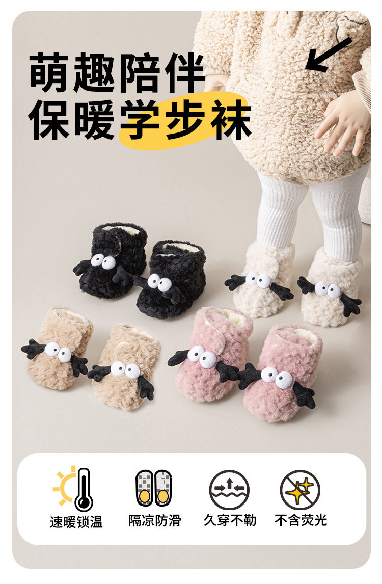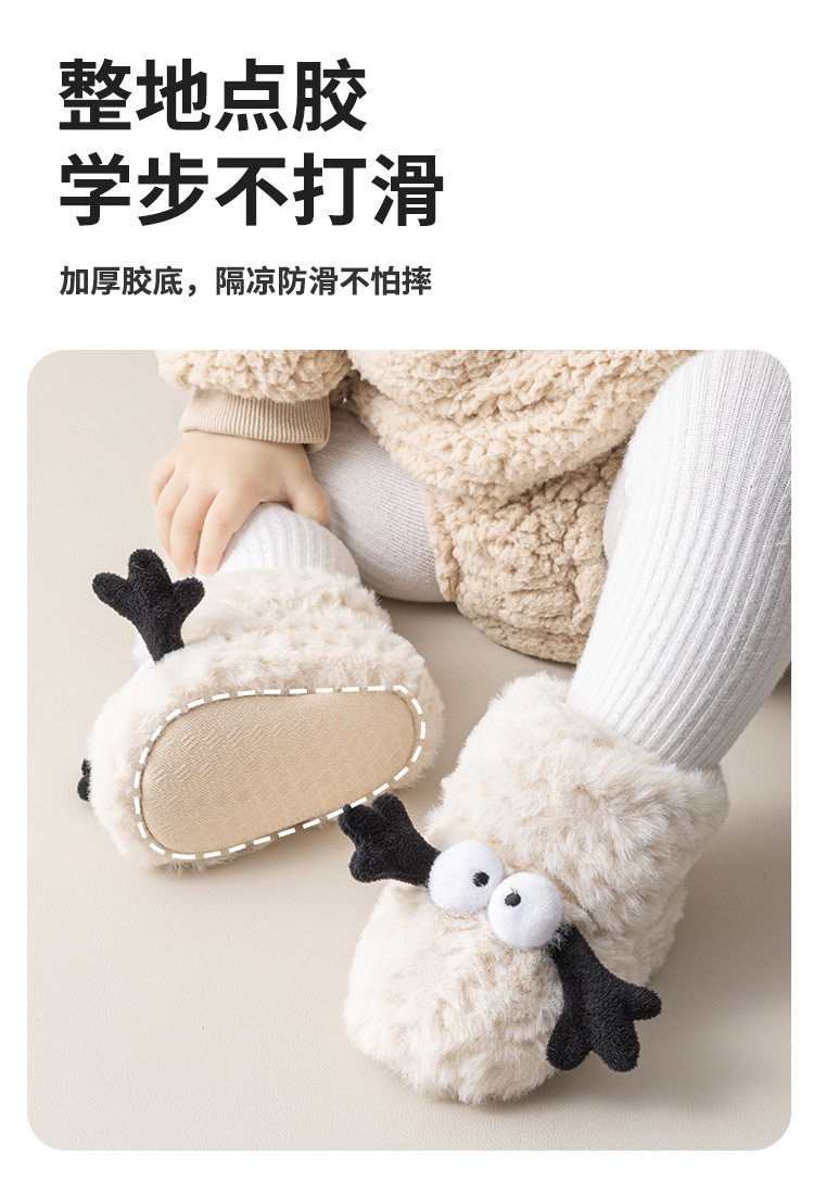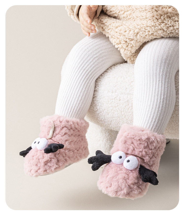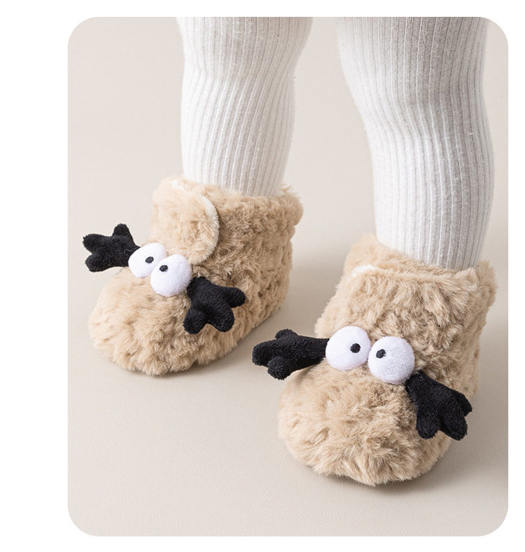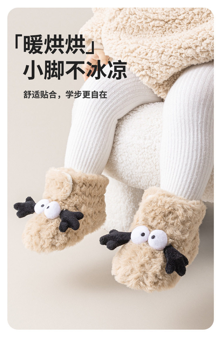 Winter Thickened Warm Baby Step Shoes Newborn Shoes Baby Soft Bottom Toddler Shoes Non-slip Cartoon Shoes and Socks
