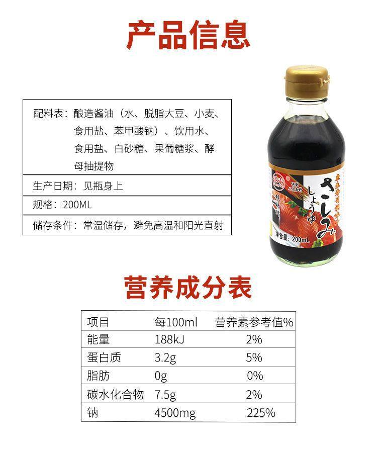 Gangtai Seafood Sushi Fish Soy Sauce Original Flavor Fresh Soy Sauce Soy Sauce Ingredients Ingredients Seasoning Sauce 200ml Commercial Use