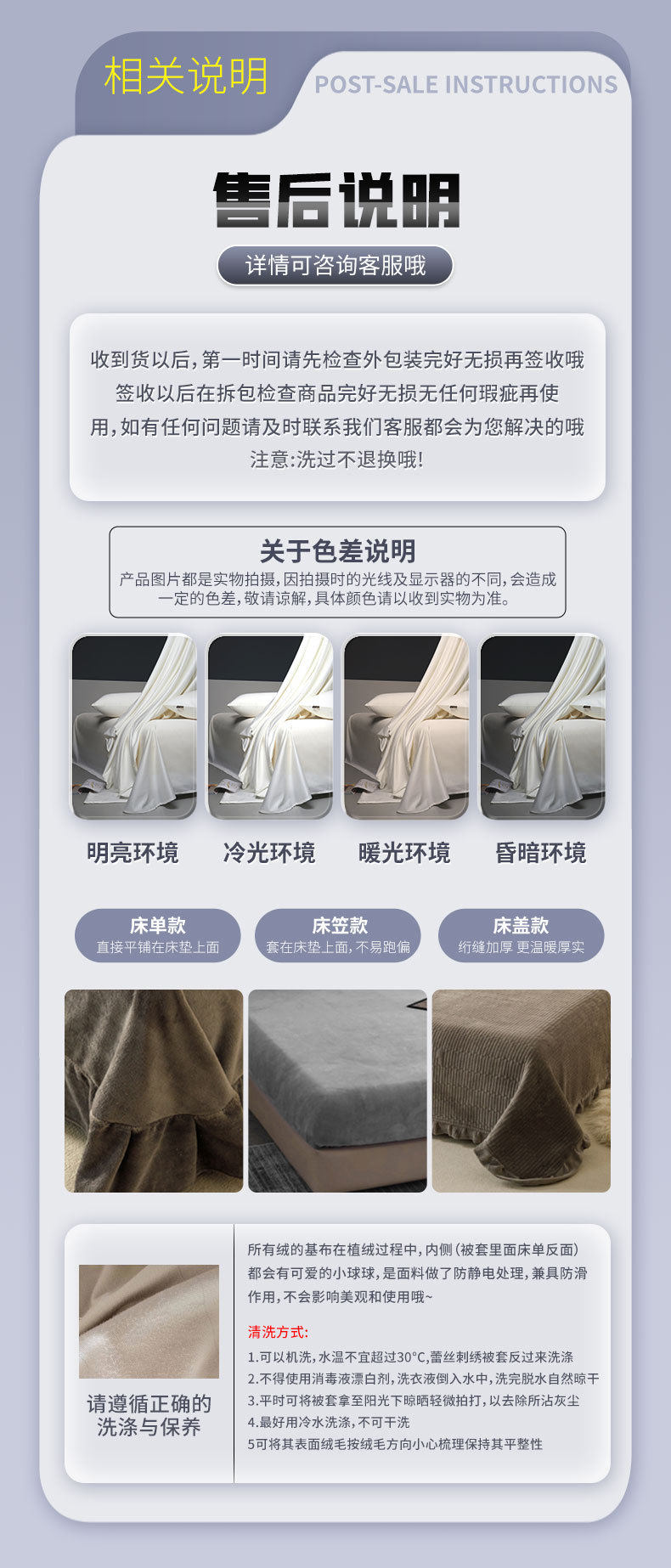 | Size specifications | 1.5m piece set (quilt cover 150*200, bed sheets 160*230, pillowcase 48*74*1),1.5m bed sheet four-piece set (quilt cover 200*230, sheets 230*245, pillowcase 48*74*2),1.8m bed sheet four-piece set (quilt cover 200*230, sheets 230*245, pillowcase 48*74*2),2.0m bed sheet four-piece set (quilt cover 220*240, sheets 230*245, pillowcase 48*74*2),1.5m fitted sheet set of four (quilt cover 200*230, fitted sheet 150*200*25cm, pillowcase 48*74*2),1.8m fitted sheet set of four (quilt cover 200*230, fitted sheet 180*200*25cm, pillowcase 48*74*2) |