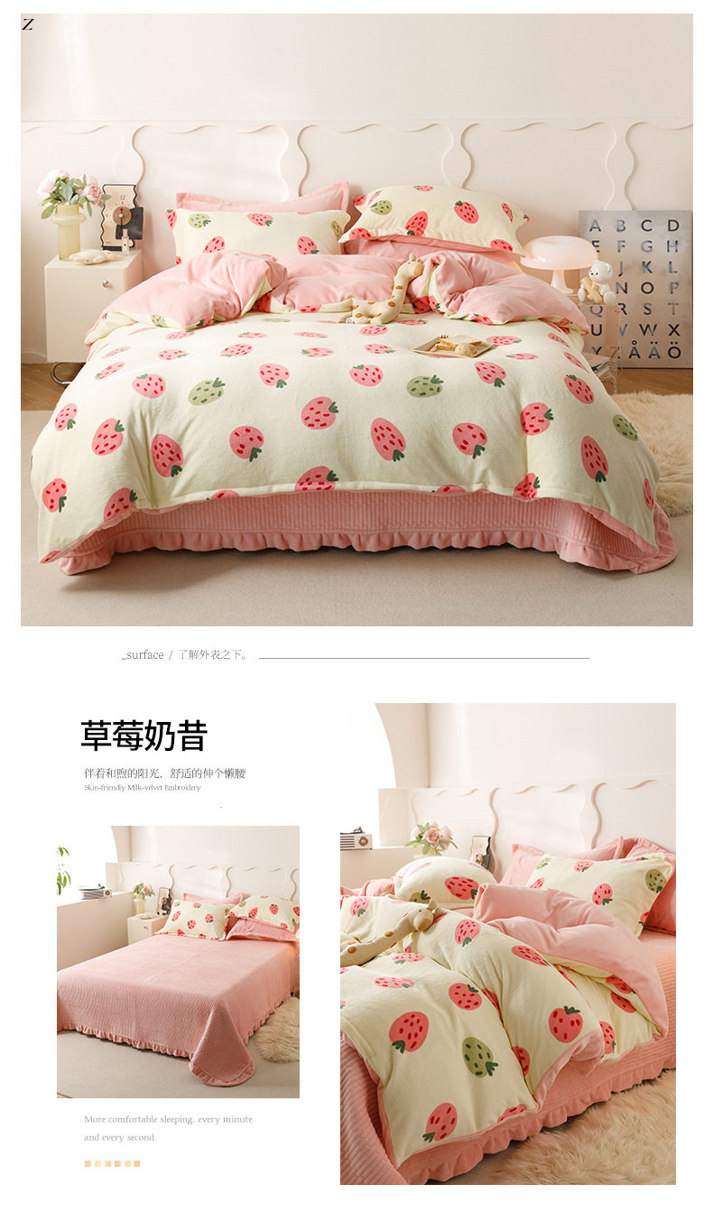 Thickened Winter Milk Velvet Four-piece Bed Cover Bed Sheet Bed Hat Kit Fresh Style Nantong Home Textile Bedding