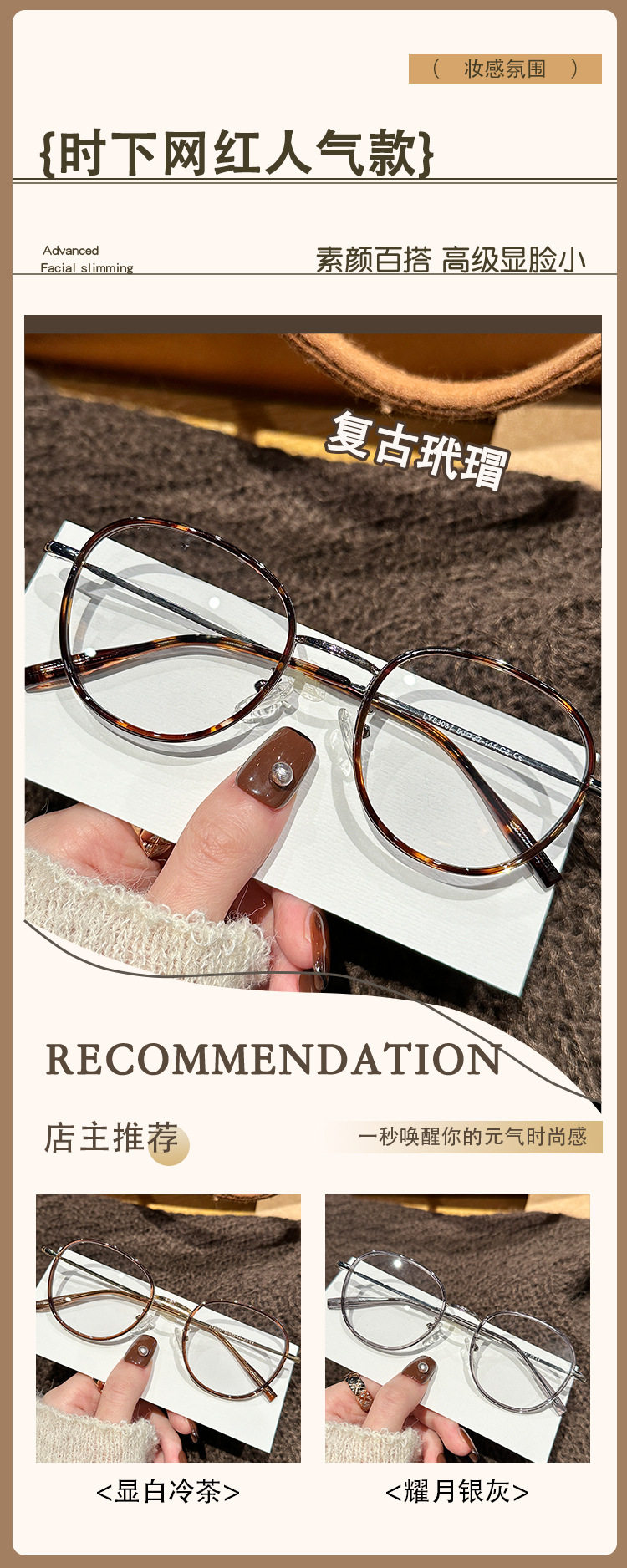LY83037 Art Hepburn Style Small Round Frame Myopia Glasses Women's Multicolor Mixed Batch Fashionable Hawksbill Plain Frame
