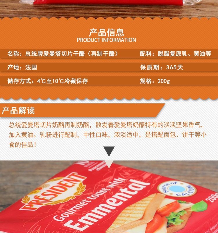 Free Shipping Presidential Aimanta Cheese Slices 200g Hamburger Sandwich Western Breakfast Cheese Slices