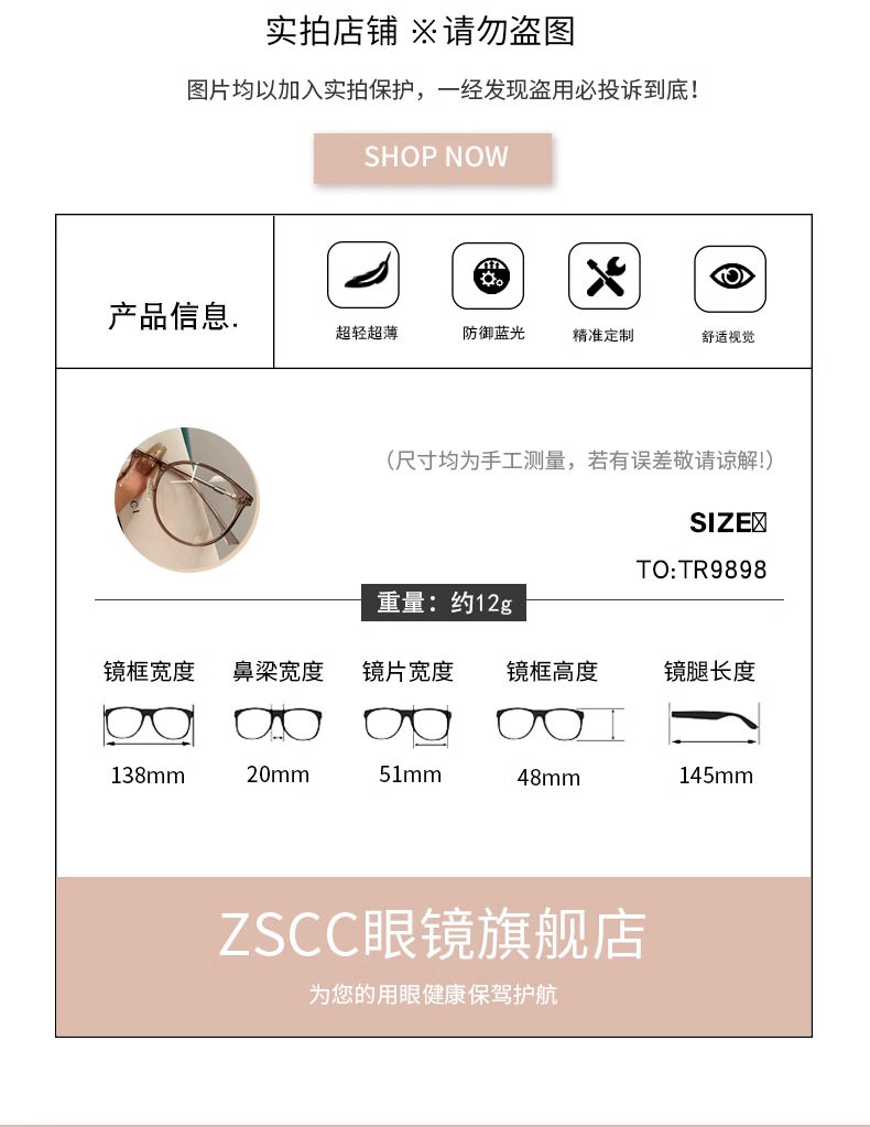| Frame color | [quality tr] warm brown,[quality tr] xizi green,[quality tr] light gray,[quality tr] light purple,[quality tr] bright black,[quality tr] transparent gold,With myopia/astigmatism/discoloration/consult customer service |