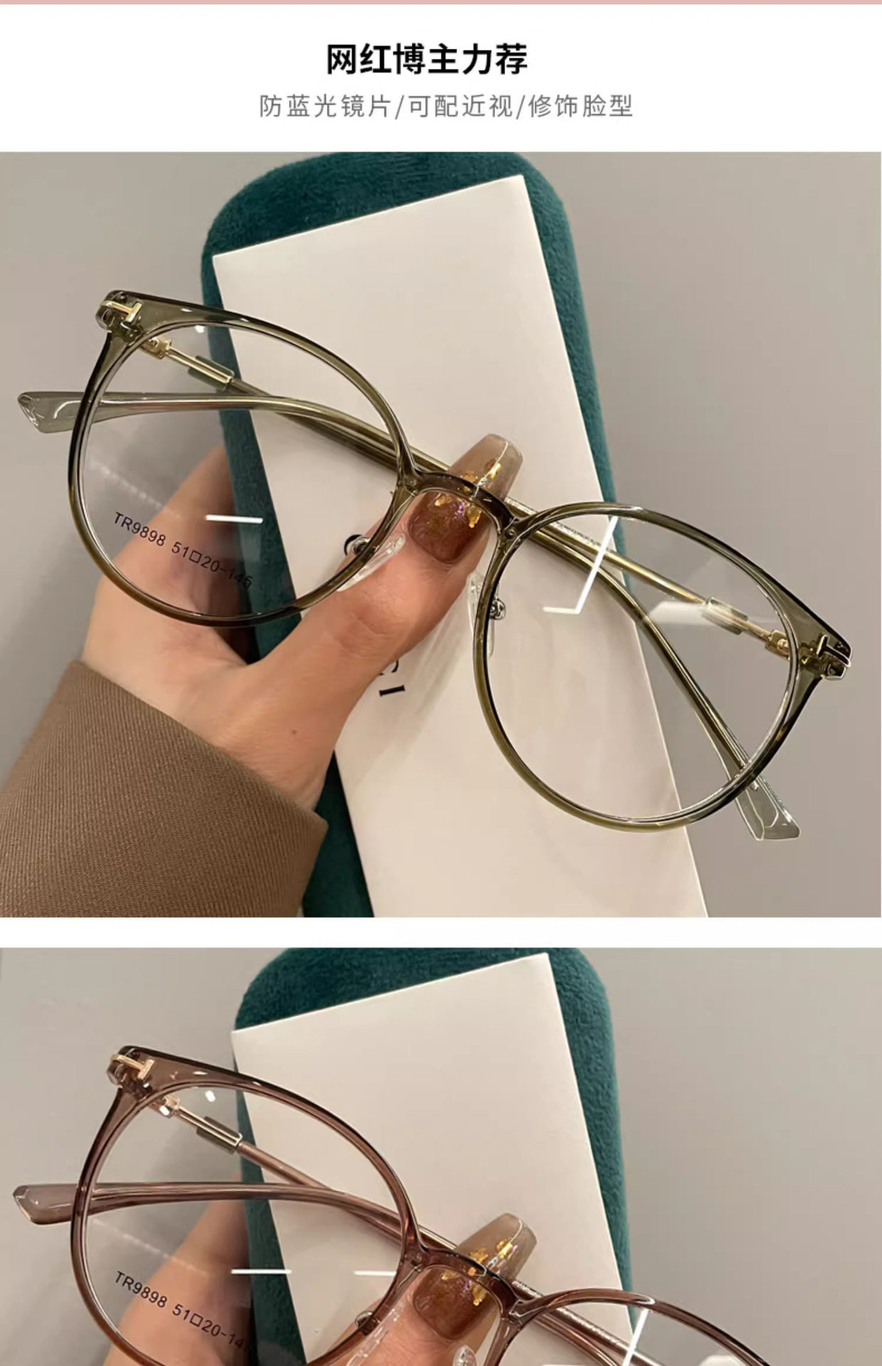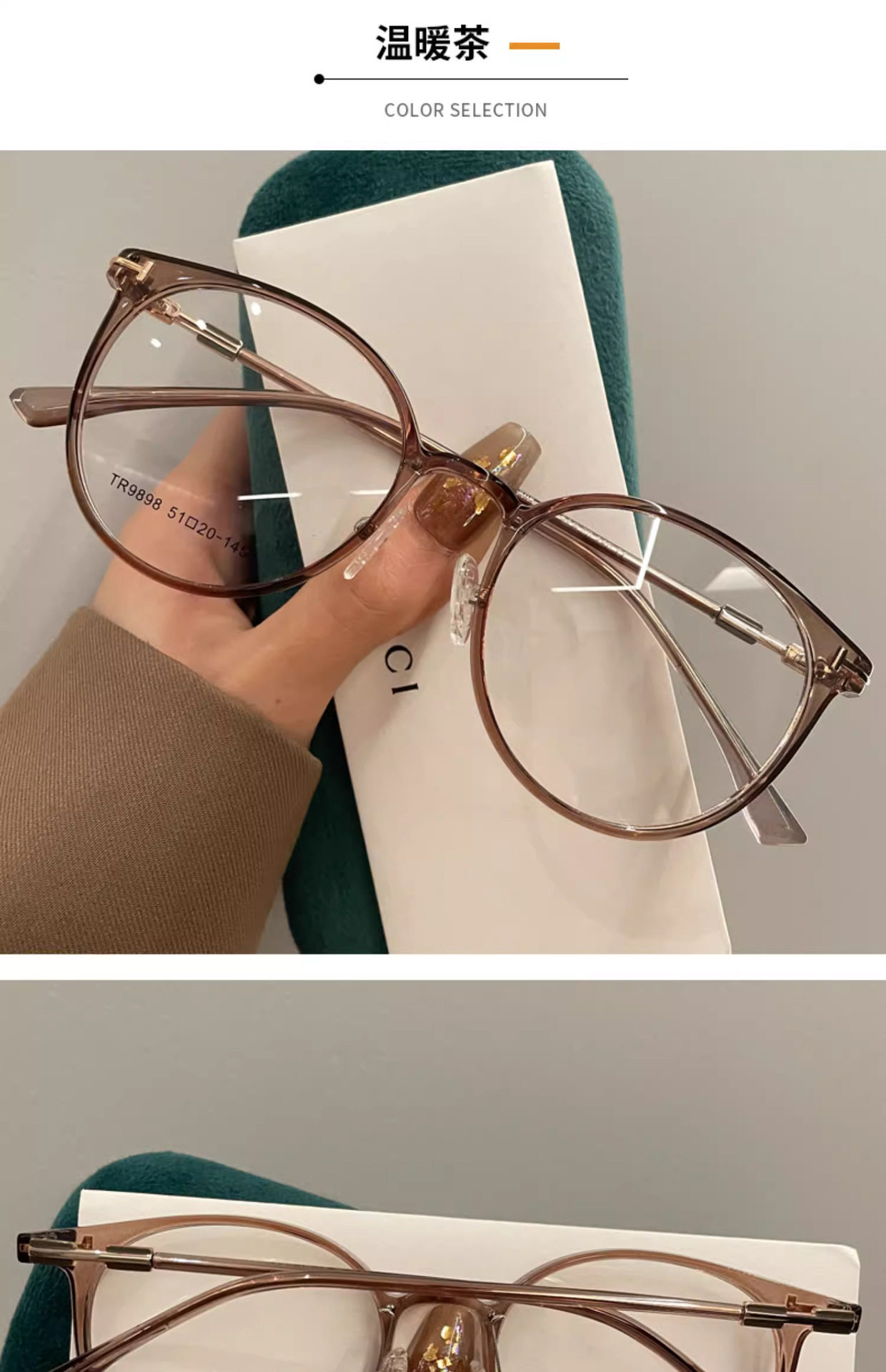 New ultra-light TR90 glasses frame fashion simple cold brown men's and women's round frame flat mirror plain transparent myopia frame