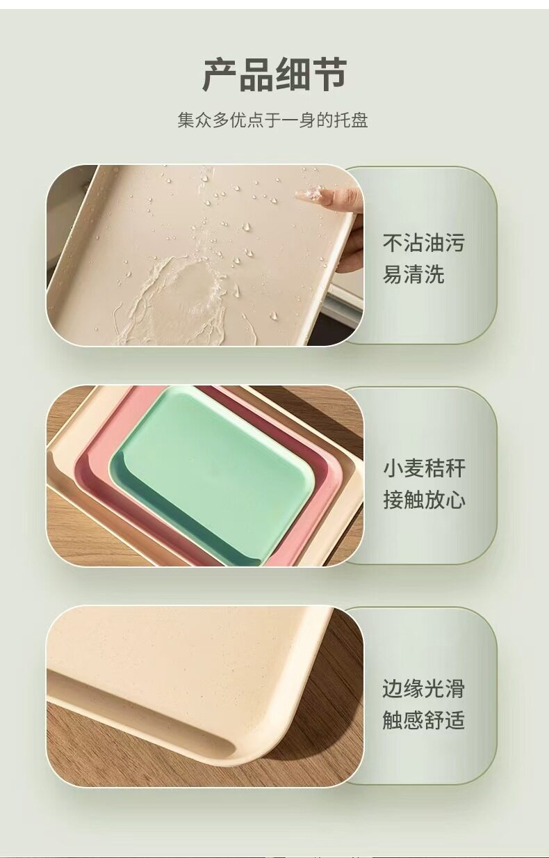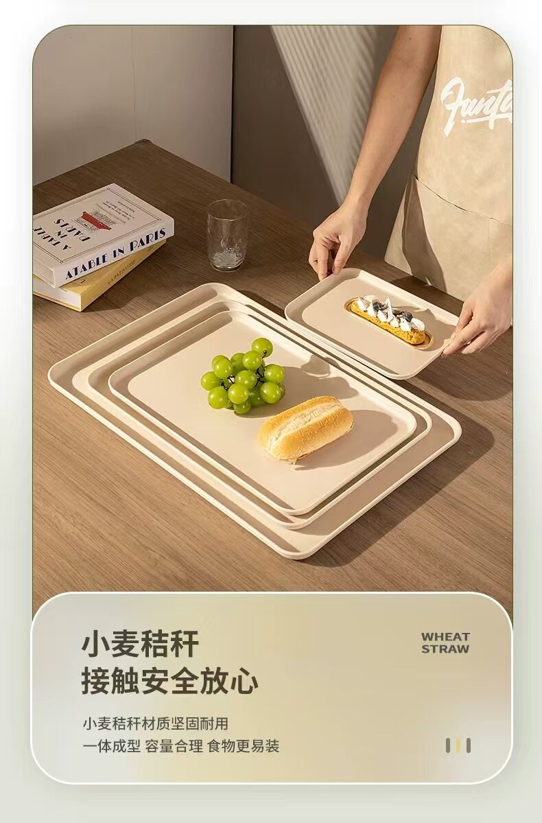 Wheat Straw Tray Rectangular Tray Commercial Restaurant Hotel Serving Tray Kindergarten Canteen Tray Scandinavian Simple
