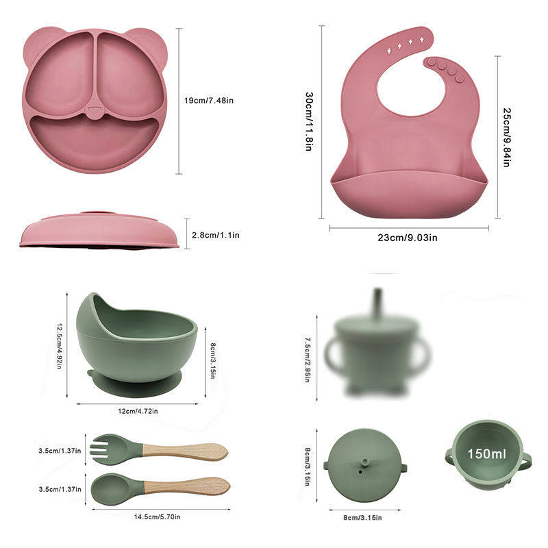 Silicone Baby Tableware Set 6-Piece Set Silicone Dinner Plate Suction Cup Silicone Kidsren's Dinner Plate Suction Cup Bowl Baby Supplies