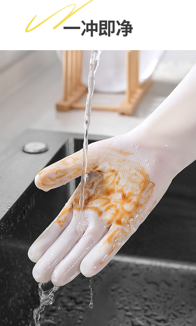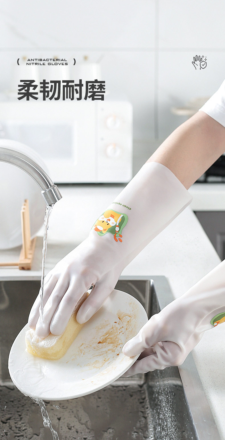 Nitrile Washing Gloves for Women's Kitchen Household Thickened and Durable Summer Rubber Leather Household Cleaning and Washing Clothes Waterproof