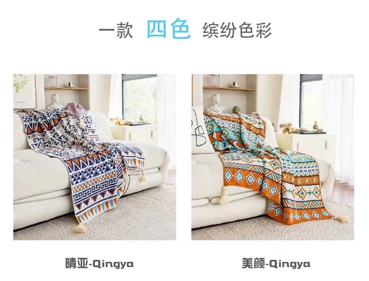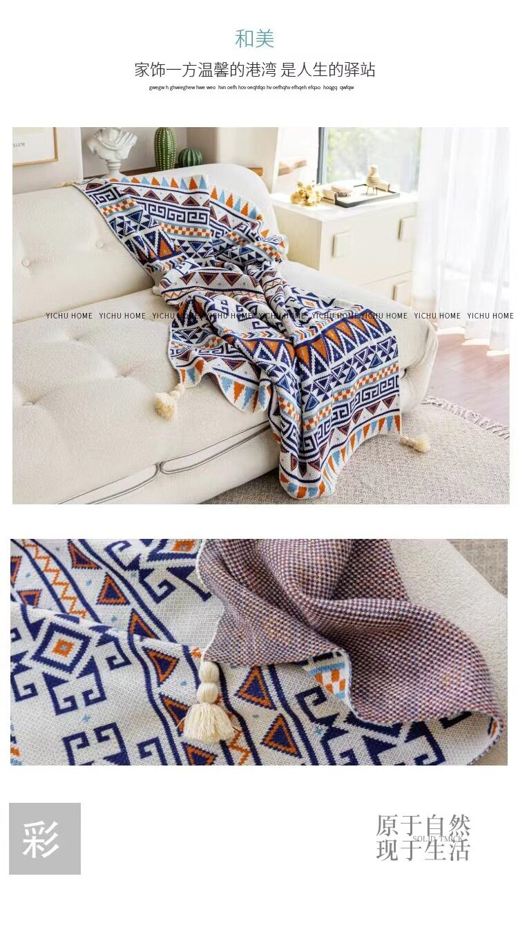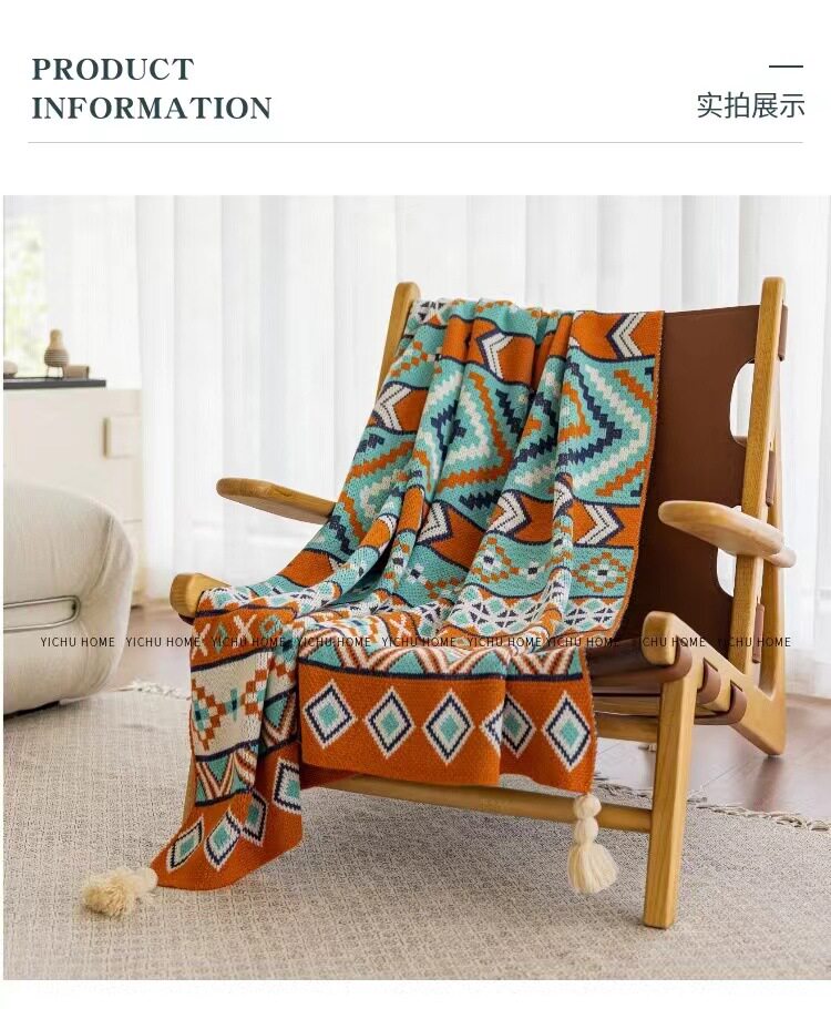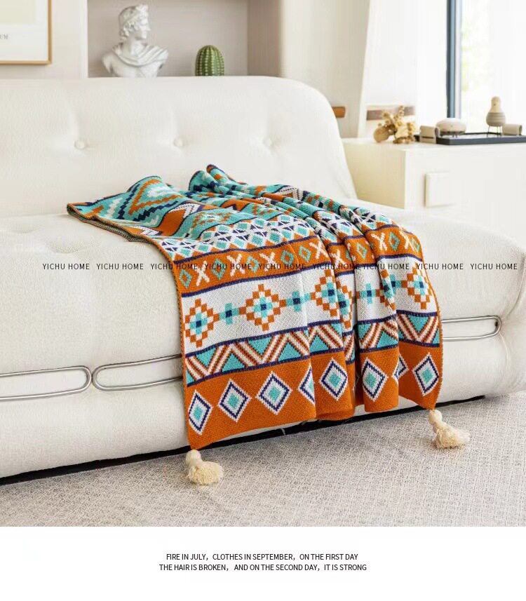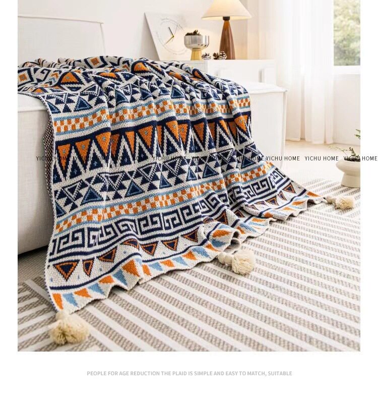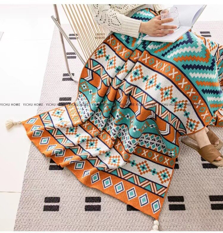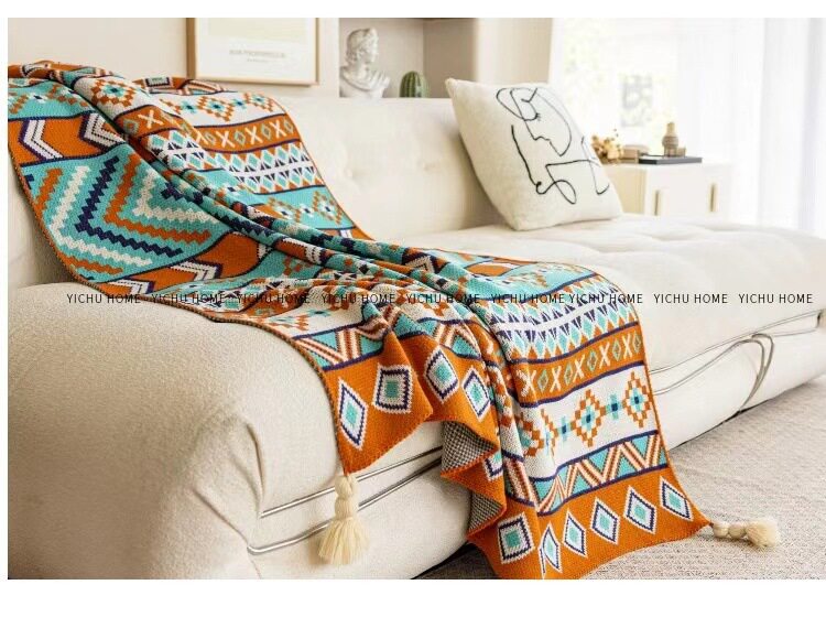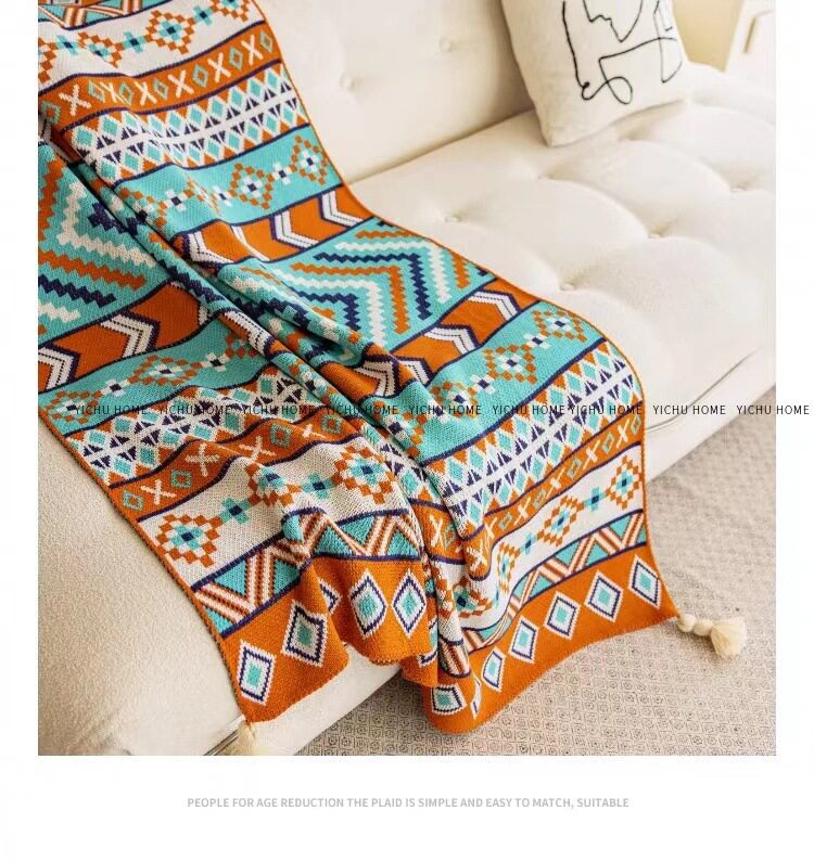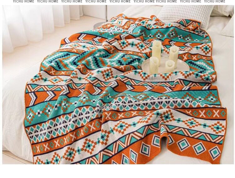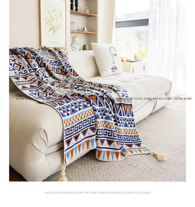 Vintage Bohemian Sofa Blanket Office Nap Thickened Knitted Air Conditioning Blanket Single Shawl Bed Flag Warm