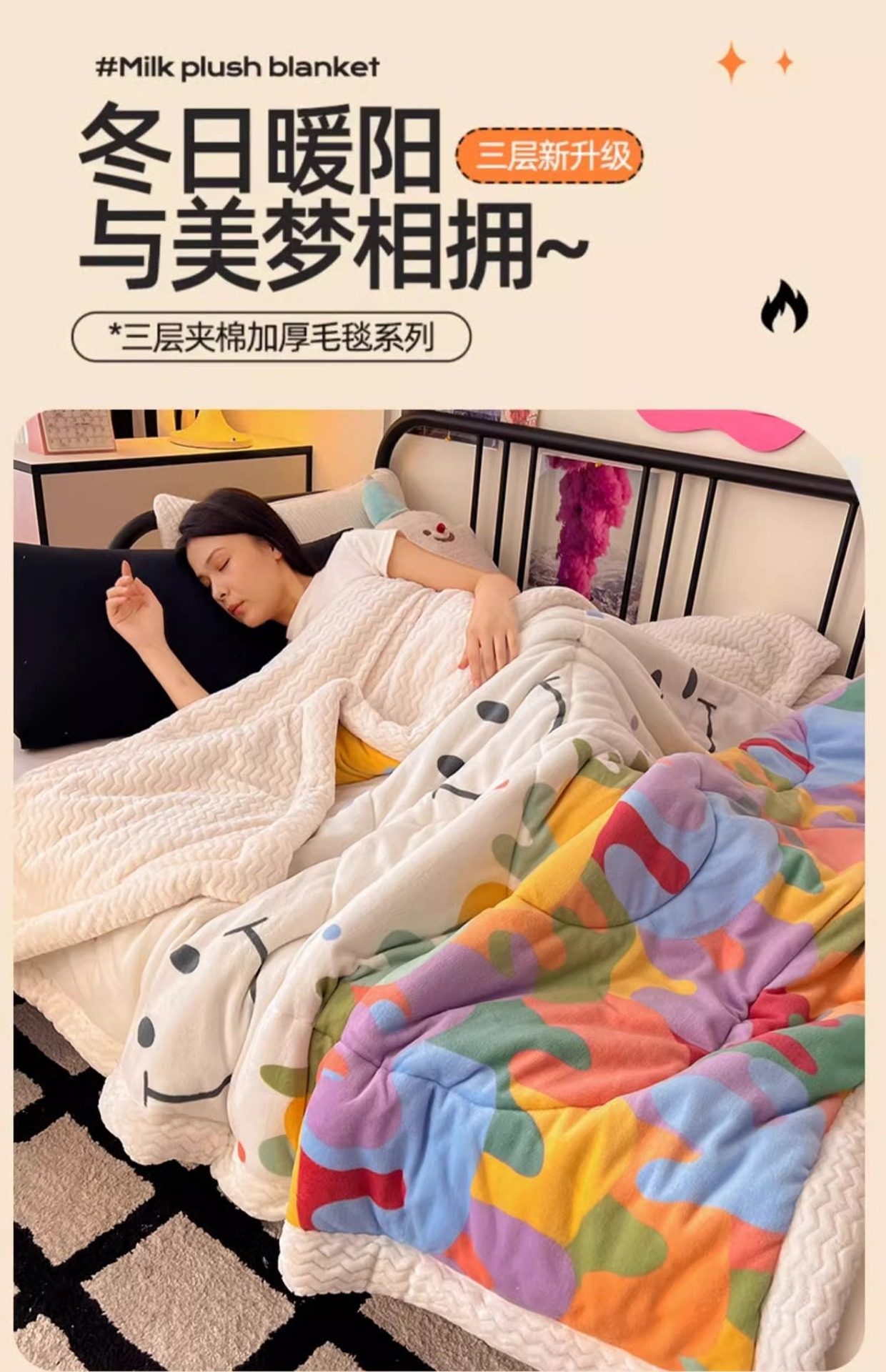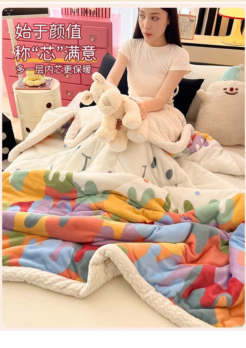 Class a Winter Three-Layer Thickeneded Flannel Blanket Bed Blanket Office Nap Blanket Dormitory Coral Velvet Rug