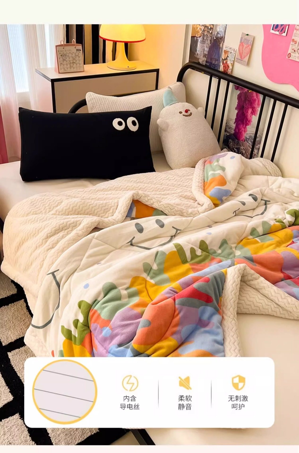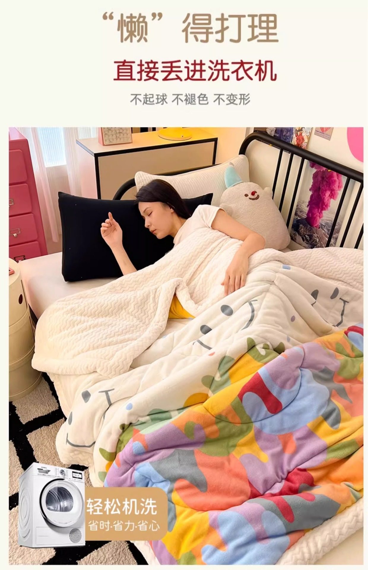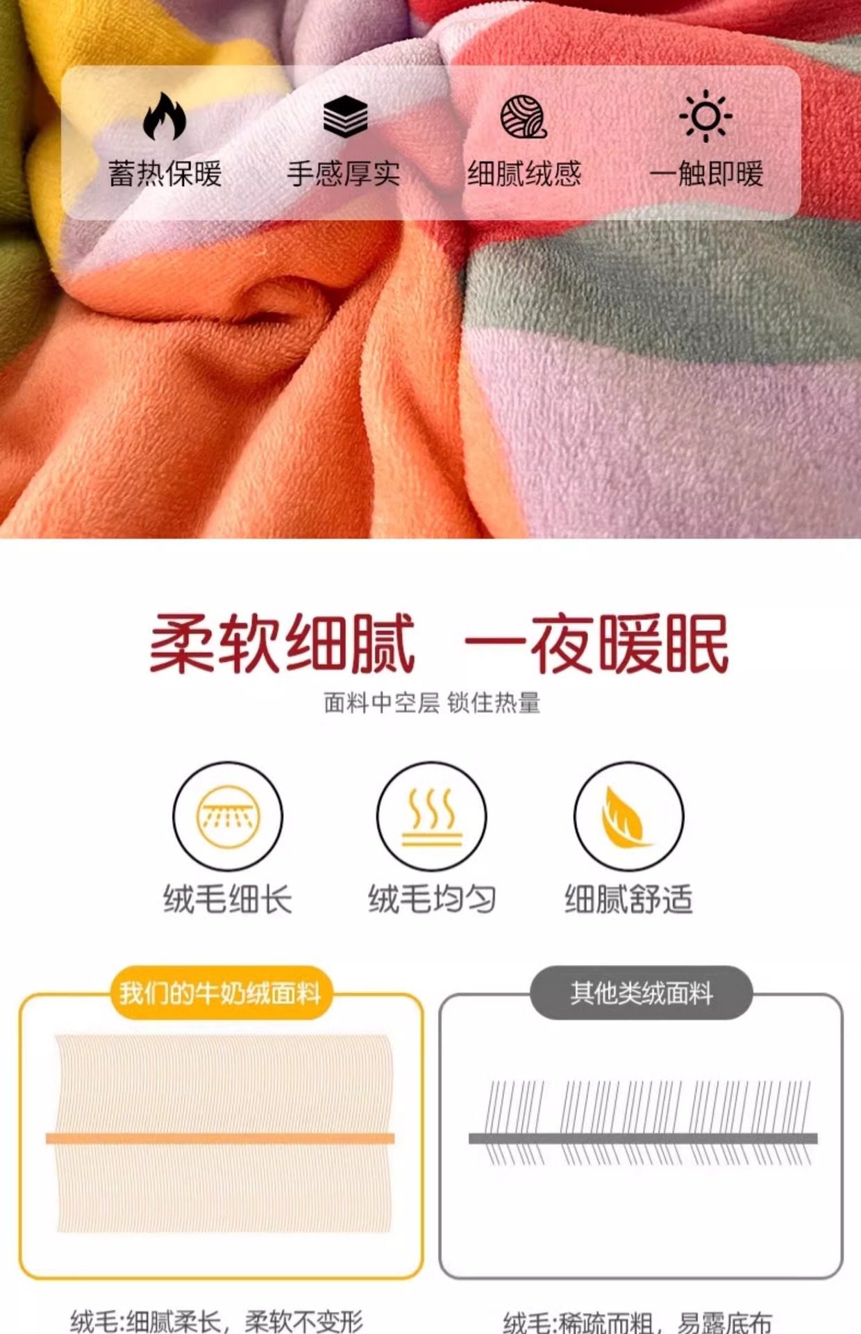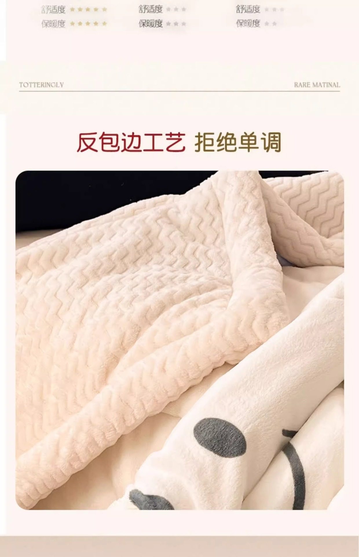 | Size specifications | 100*150 blanket - about 1.0kg [applicable to children's blanket, shawl blanket, leg blanket],150*200 blanket - about 1.8kg [applicable to throw blankets, bed sheets, blankets, sofa blankets],180*220 blanket - about 2.1kg [applicable to throw blankets, bed sheets, blankets, sofa blankets],200*230 blanket - about 2.5kg [applicable to throw blankets, bed sheets, blankets, double blankets],A pair of pillowcases of the same style [48*74cm] |