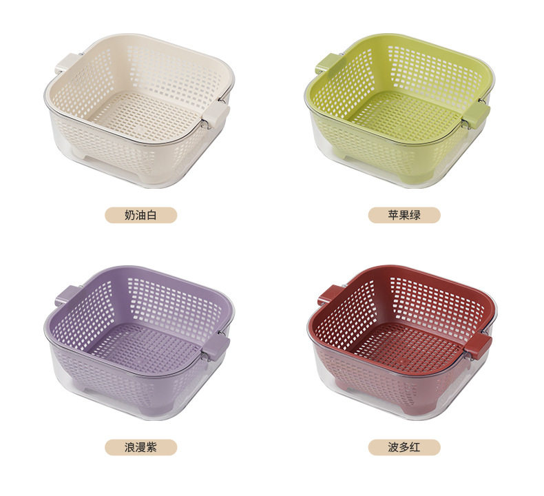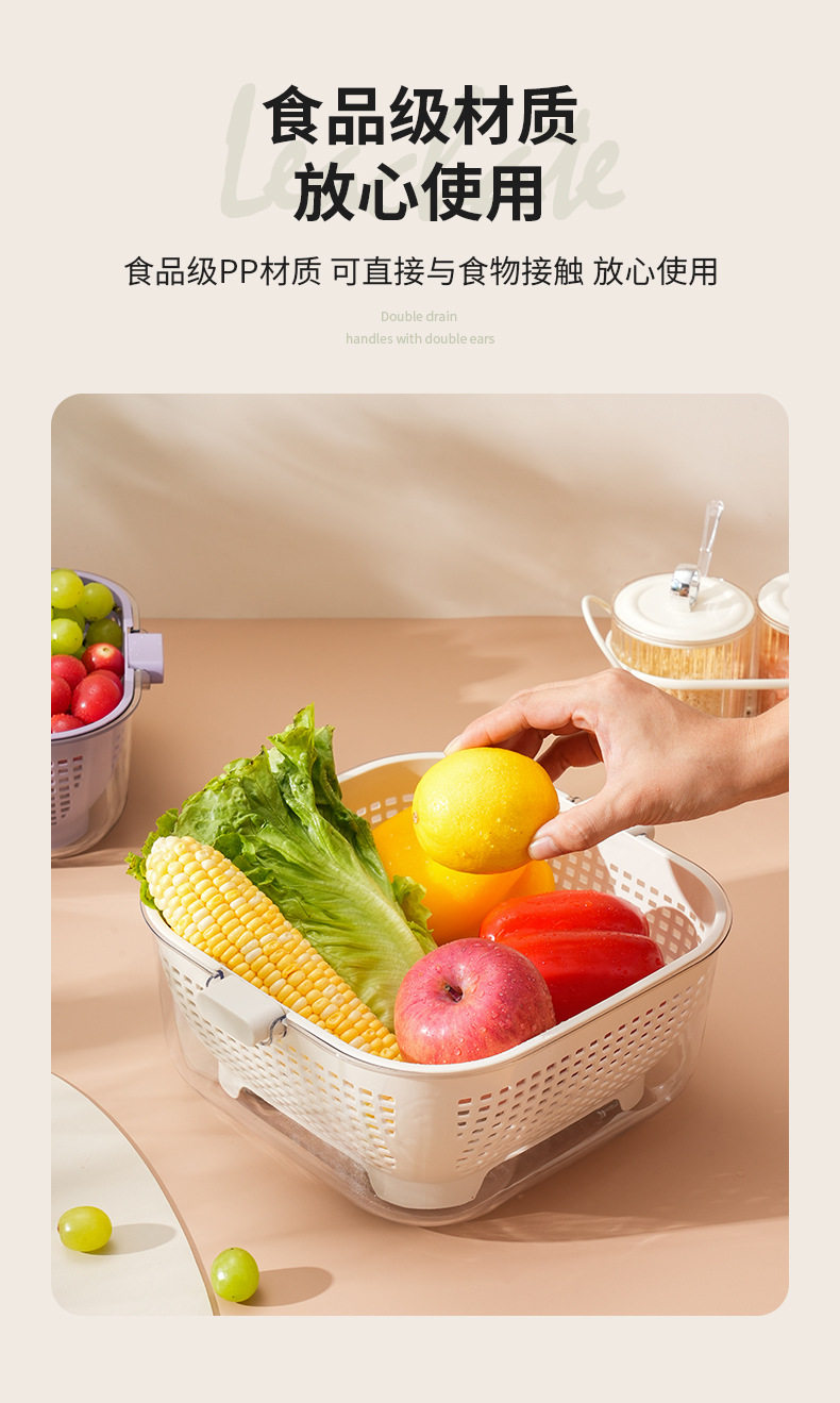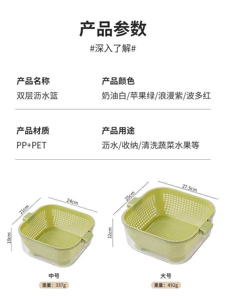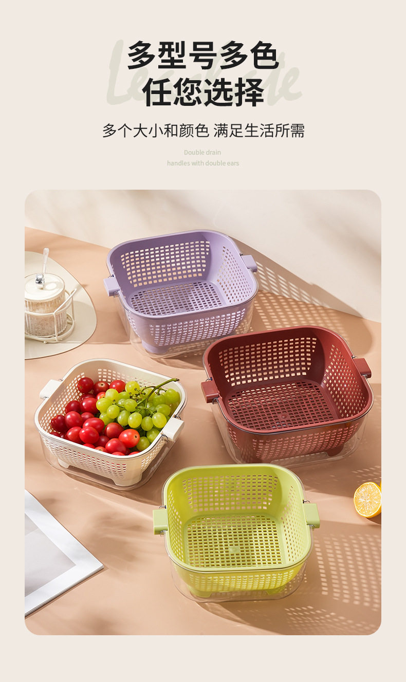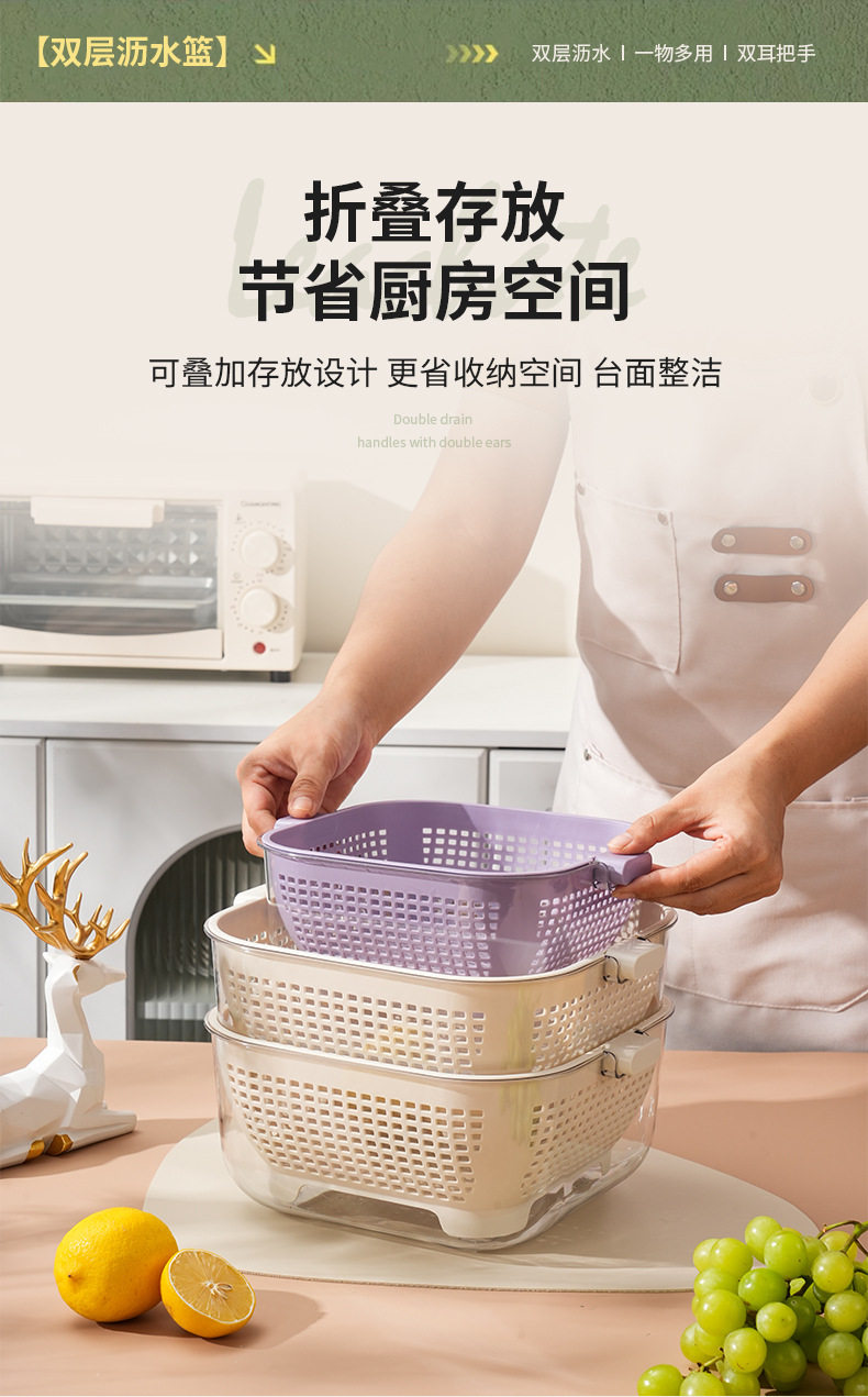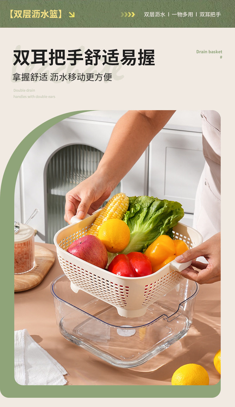 Kitchen Double-layer Draining Basket Vegetable Washing Basket Household Thickened Transparent Draining Basin New Multi-functional Large Capacity Fruit and Vegetable Basin