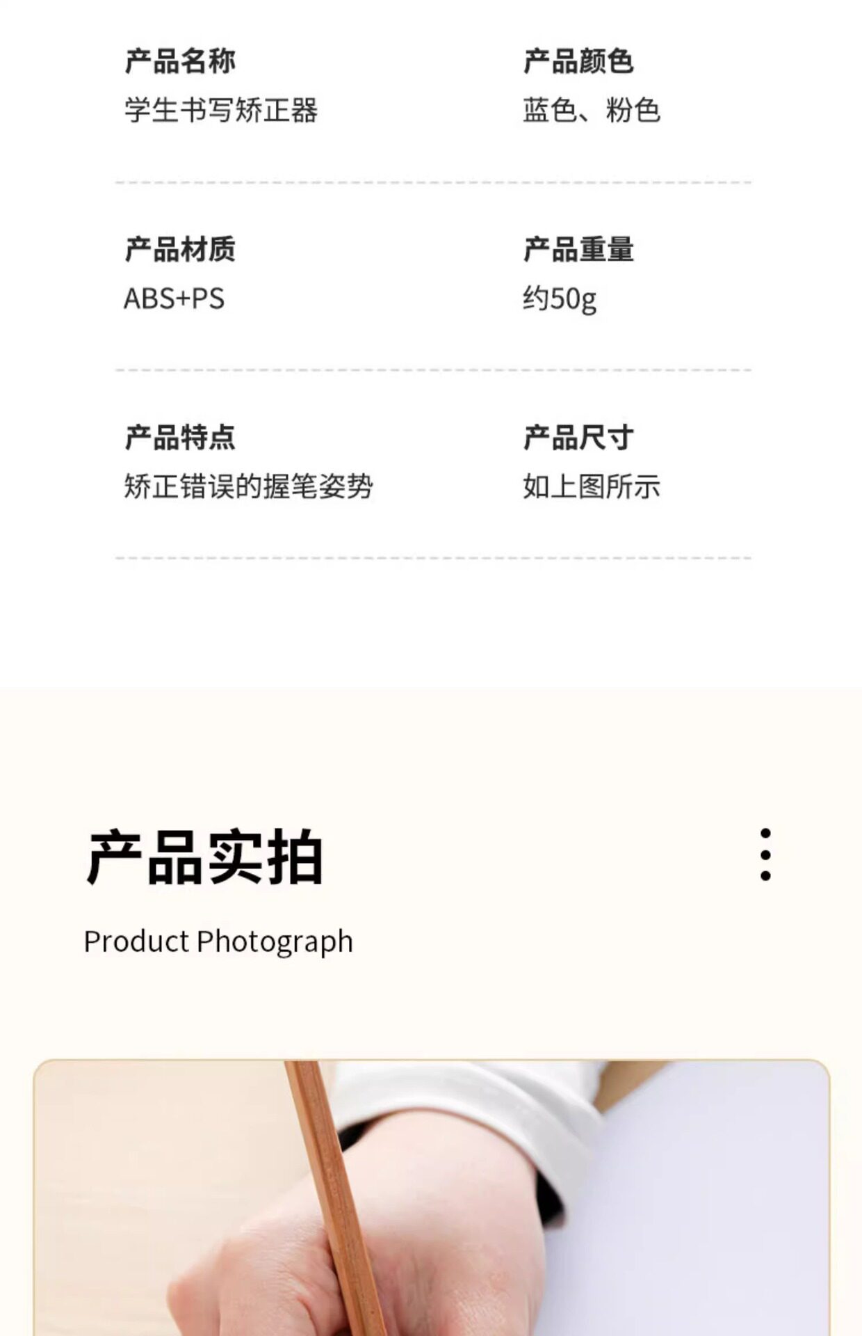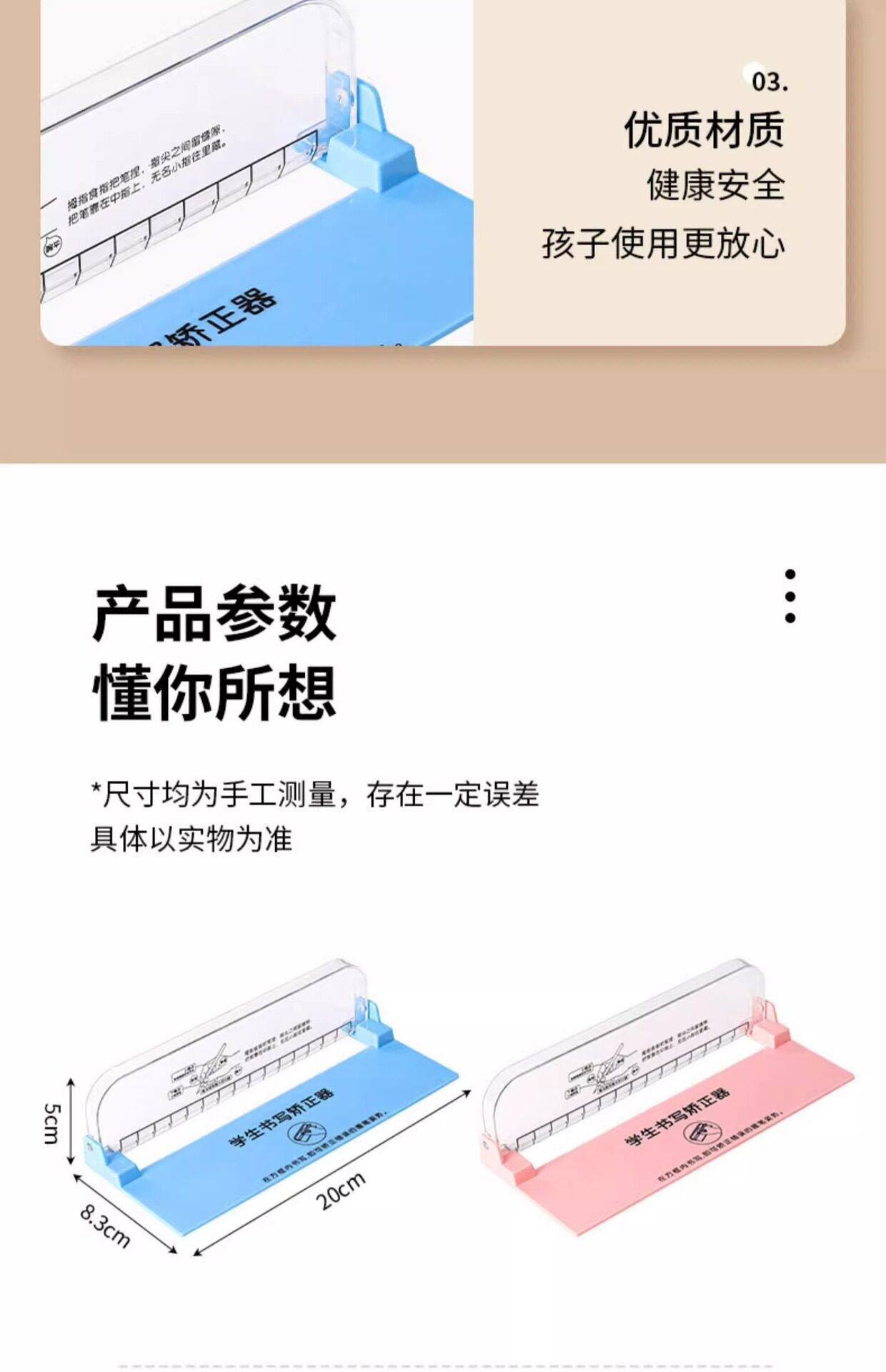 | Color | Non-restrictive pen grip corrector pink,Non-restrictive pen grip corrector blue,[pink combination recommendation] pen holding corrector + anti-lowhead front tilt (adjustable),[blue combination recommendation] pen holding corrector + anti-lowhead front tilt (adjustable),[deli antibacterial advanced style·powder] 4 pack,[deli antibacterial advanced model·blue] 4 pack,[deli antibacterial three finger style·pink] 3 pack,[deli antibacterial three finger model·blue] 3 pack,[pink combination] sitting corrector + desktop reading bookshelf,[blue combination] sitting corrector + desktop reading bookshelf,4 handles (suitable for 4-5 years old),Beginner advanced pack (4 pack) |