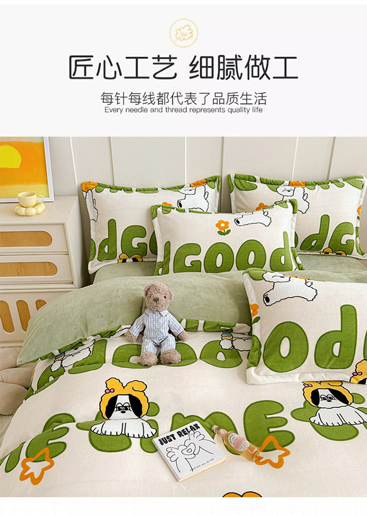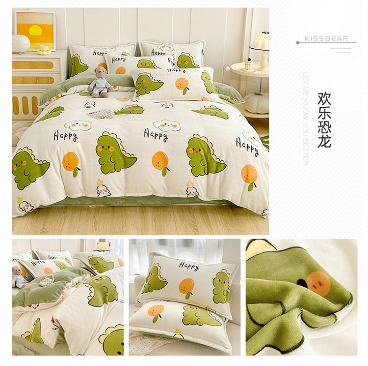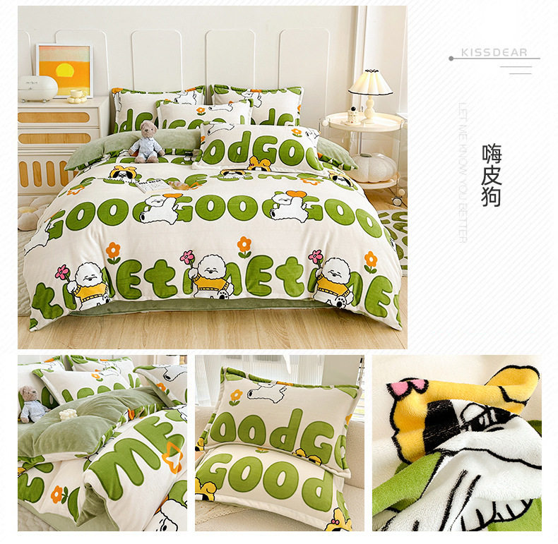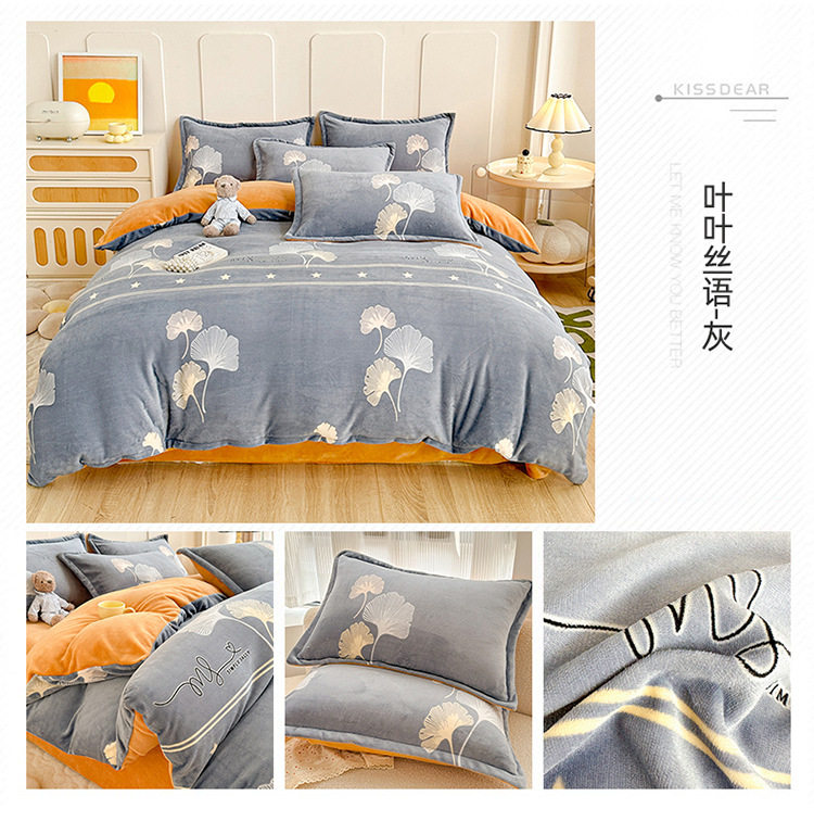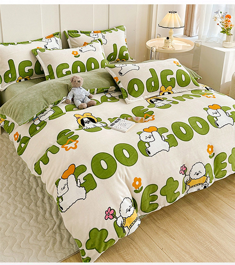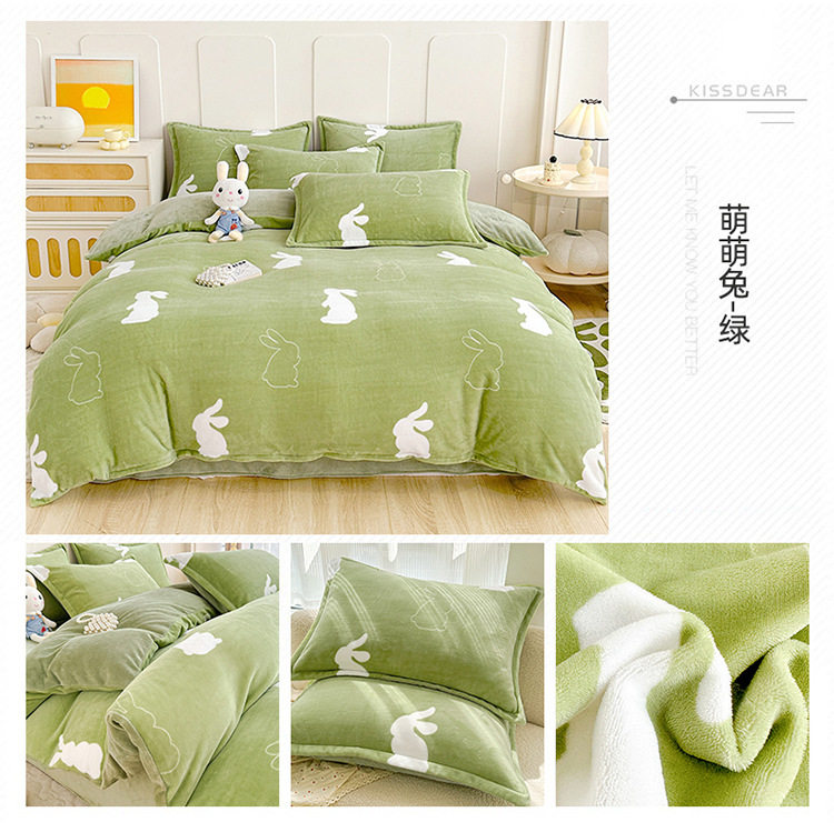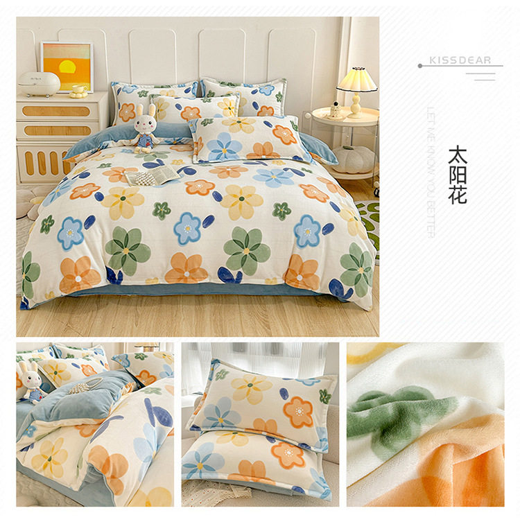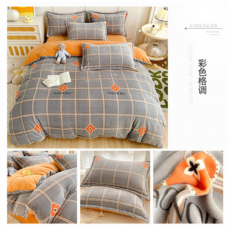 Class a Milk Velvet Four-Piece Set Thickeneded Fleece-Lined French Velvet Three-Piece Bed Bed Sheets Quilt Cover Autumn and Winter Double-Sided Coral Velvet