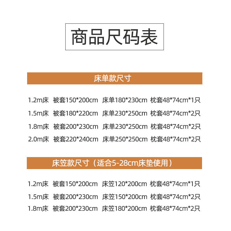 | Dimensions | 1.2m bed sheet three-piece set [quilt cover 150*200 sheets 180*230 pillowcase 48*74*1],1.5m bed sheet four-piece set (duvet cover 180*220 sheets 230*250 pillowcases two),1.5m bed sheet four-piece set (duvet cover 200*230 sheets 230*250 pillowcases two),1.8m bed sheet four-piece set (duvet cover 200*230 sheets 230*250 pillowcases two),2.0m bed sheet four-piece set (duvet cover 220*240 sheets 250*250 pillowcases two),1.2m fitted sheet three-piece set [quilt cover 150*200 fitted sheet 120*200 pillowcase 48*74*1],1.5m fitted sheet set of four [quilt cover 200*230 fitted sheet 150*200 pillowcase 48*74*2],1.8m fitted sheet set of four [quilt cover 200*230 fitted sheet 180*200 pillowcase 48*74*2],150*200cm same style single quilt cover,200*230cm same style single quilt cover,A pair of pillowcases of the same style shipped randomly |