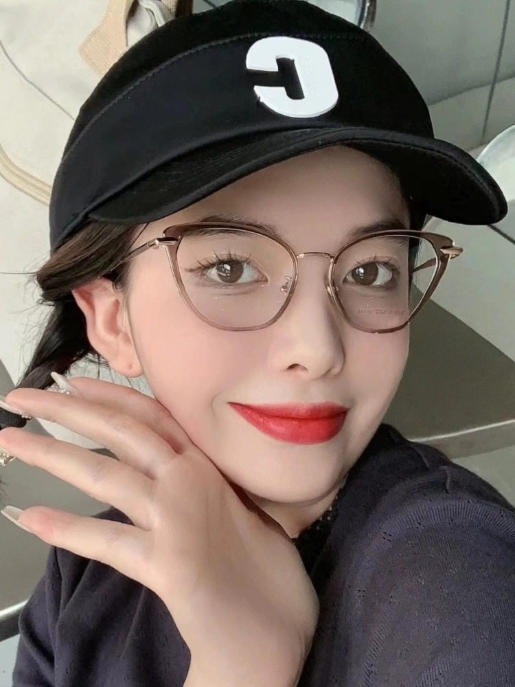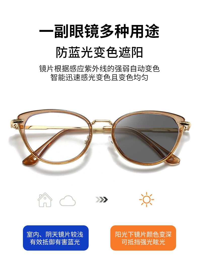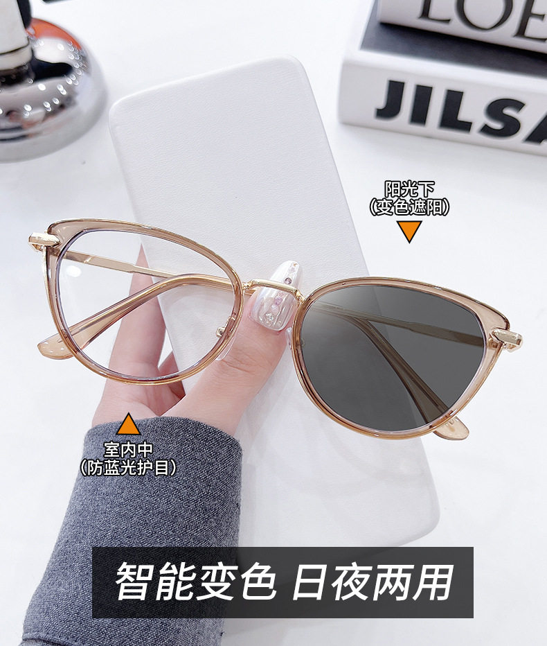Retro photosensitive color-changing cat's eye glasses frame women's myopia adjustable degree anti-blue light plain all-match eye protection flat mirror