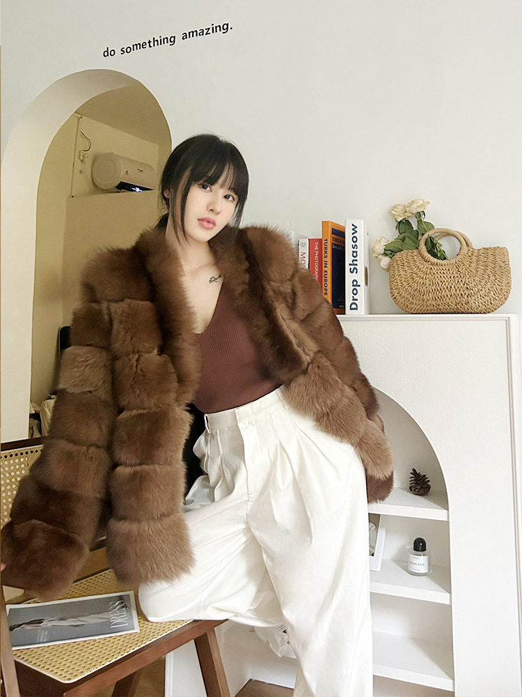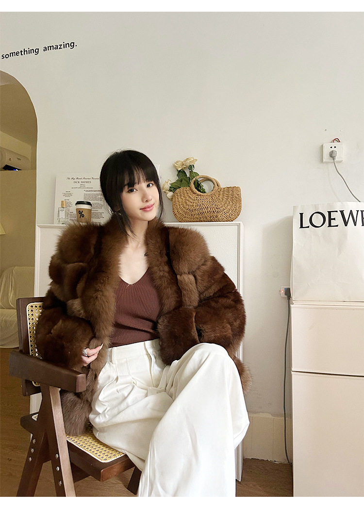 "Lazy Time" Imported Fox Fur 2024 Winter Haining Fur Coat Women's Fur One-piece Fur Coat