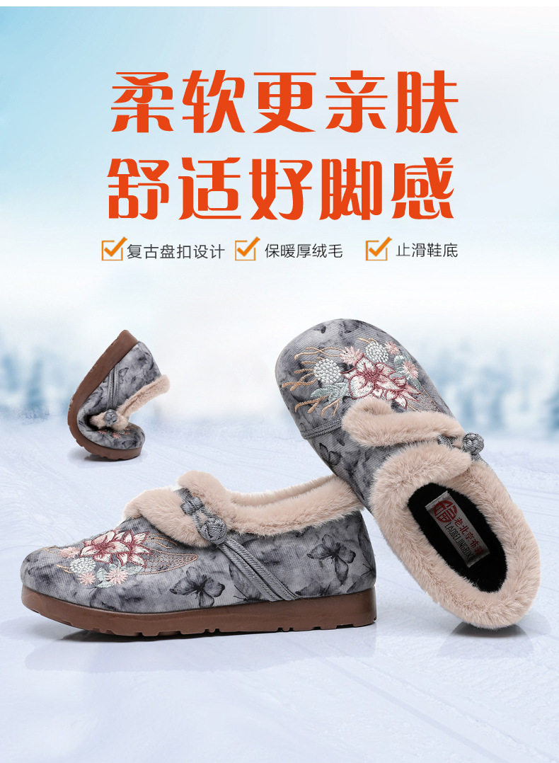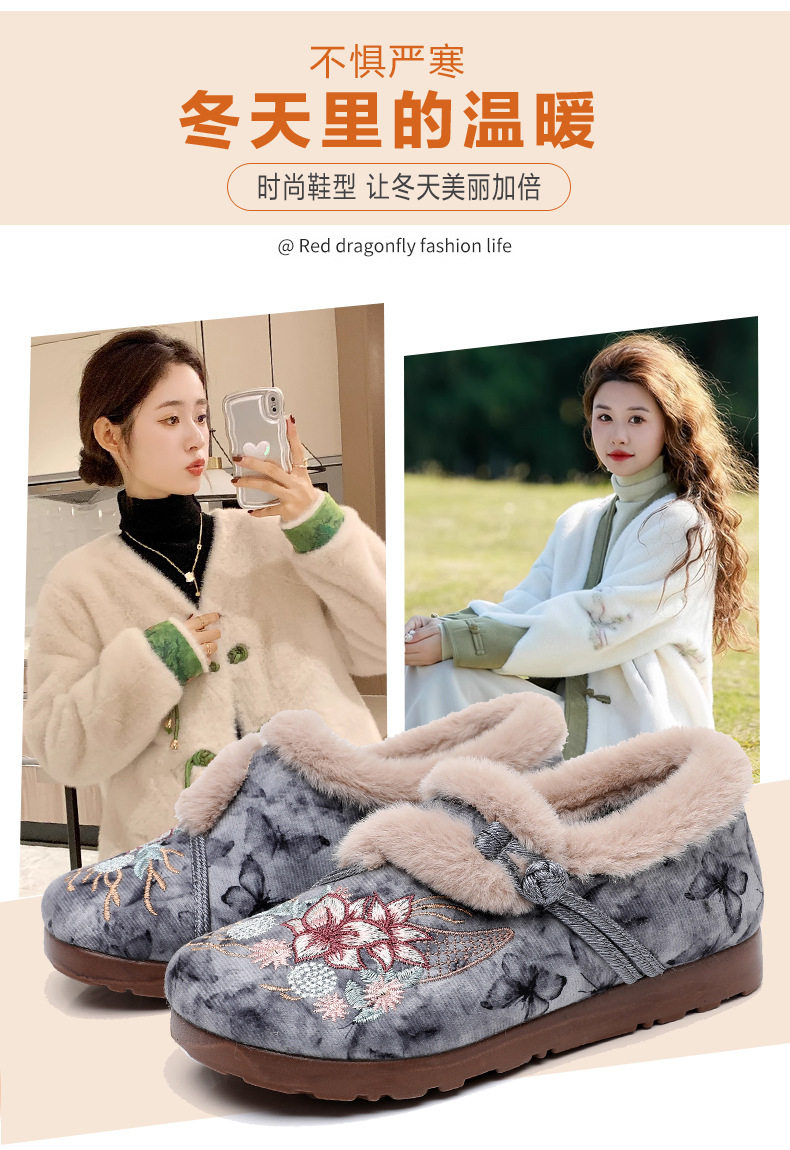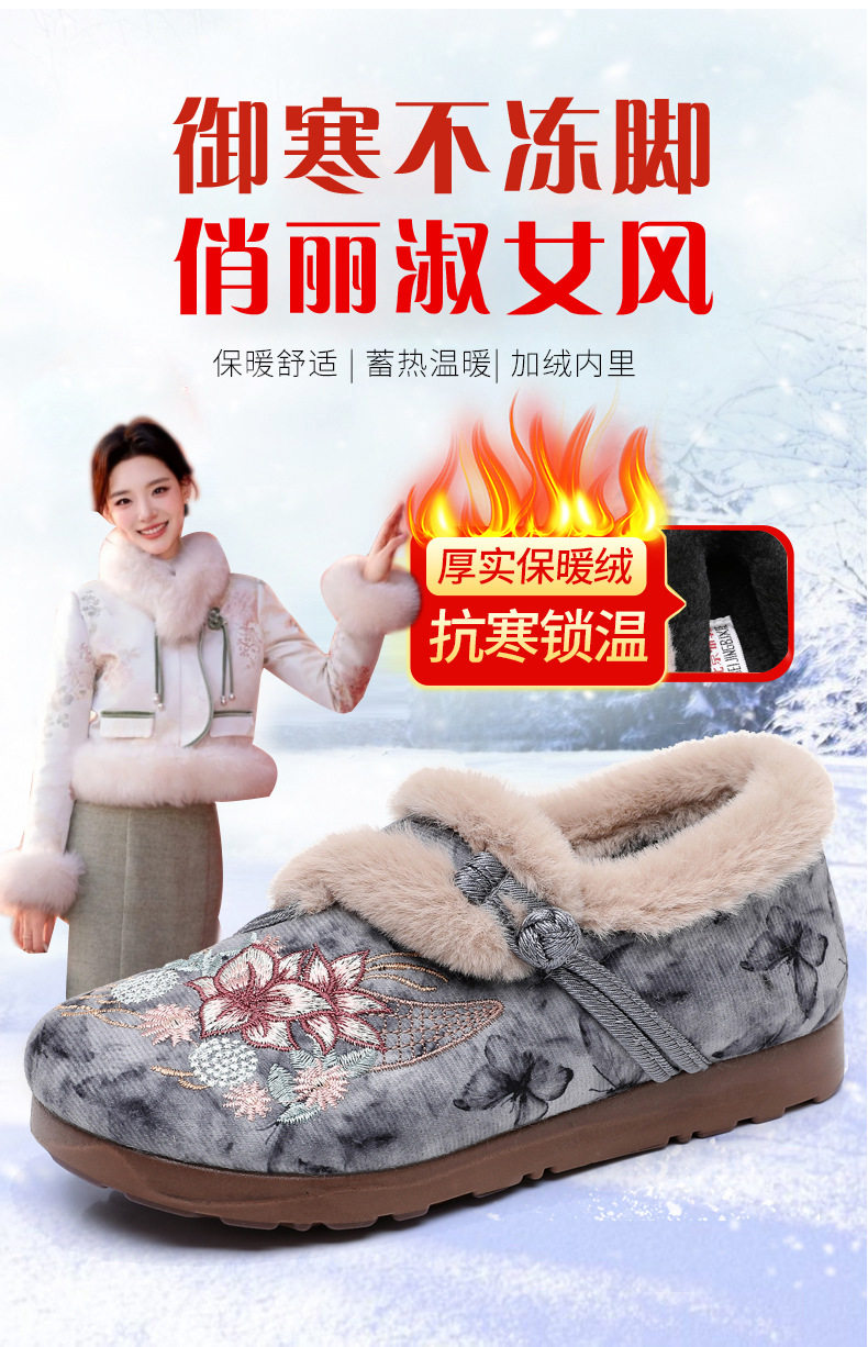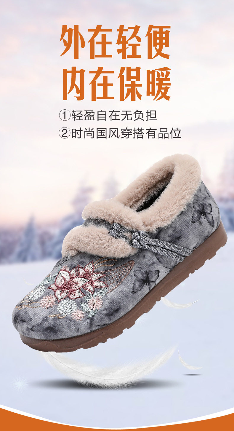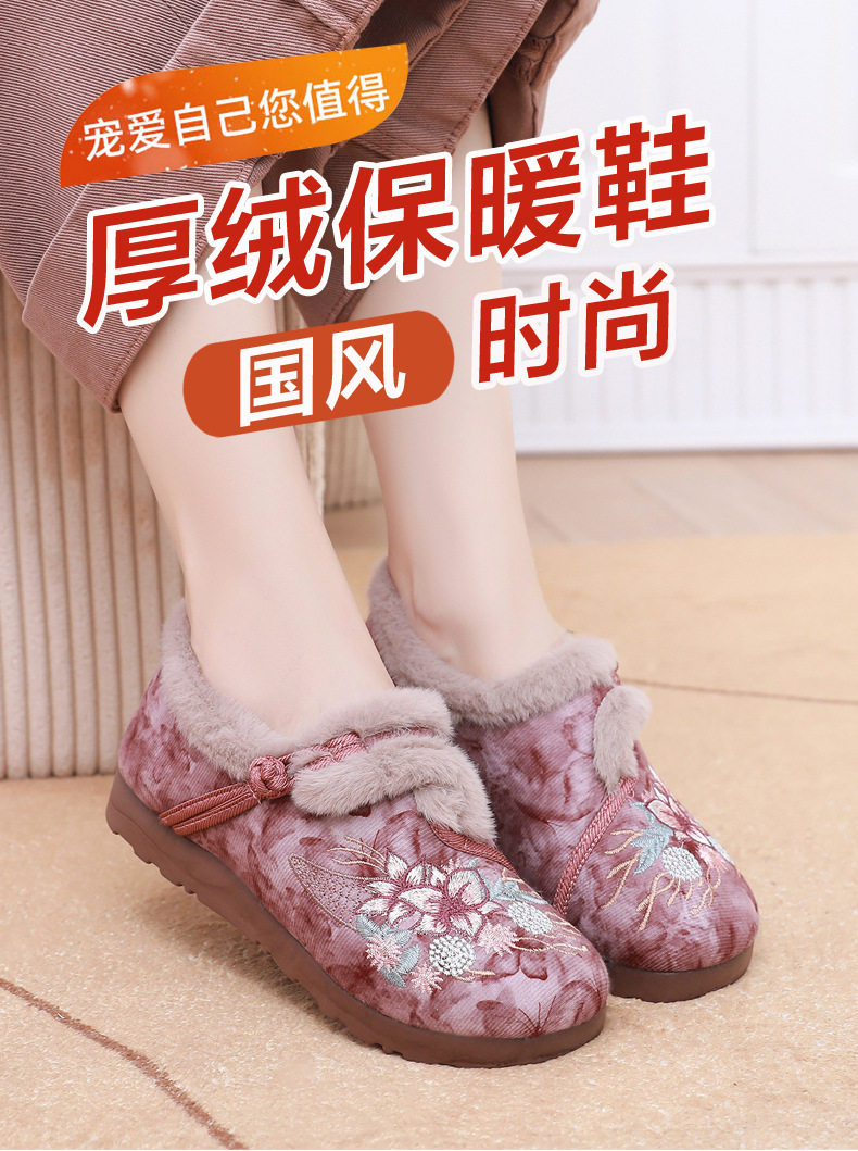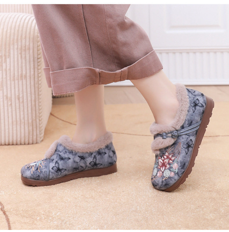 Women's Winter Hanfu Ethnic Cotton Shoes with Soft Soles, Old Beijing Cloth Shoes, Lightweight, Fleece-Lined for Warmth, Thickened for Warmth